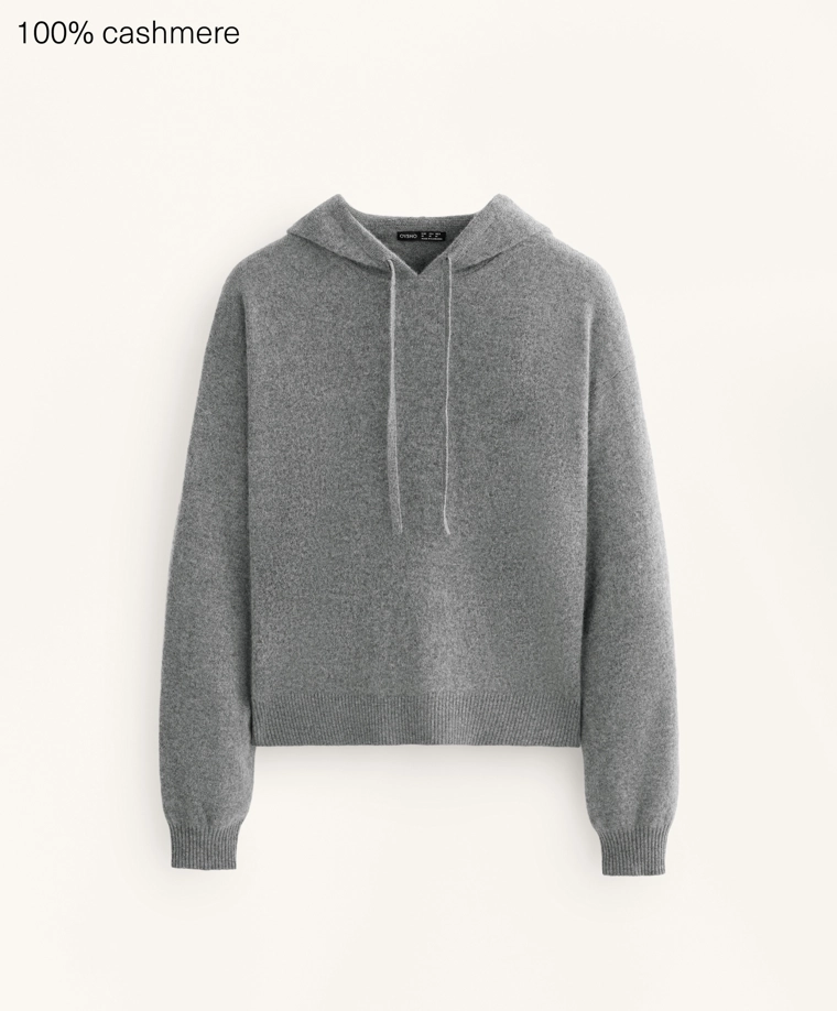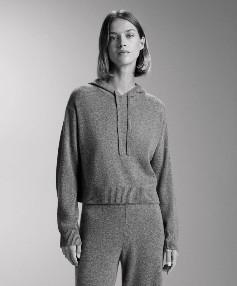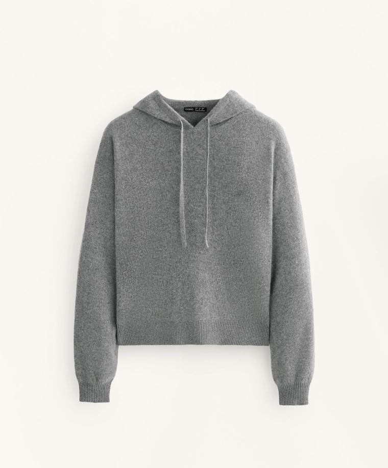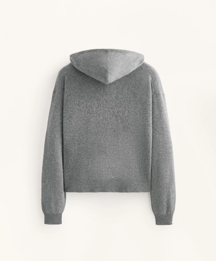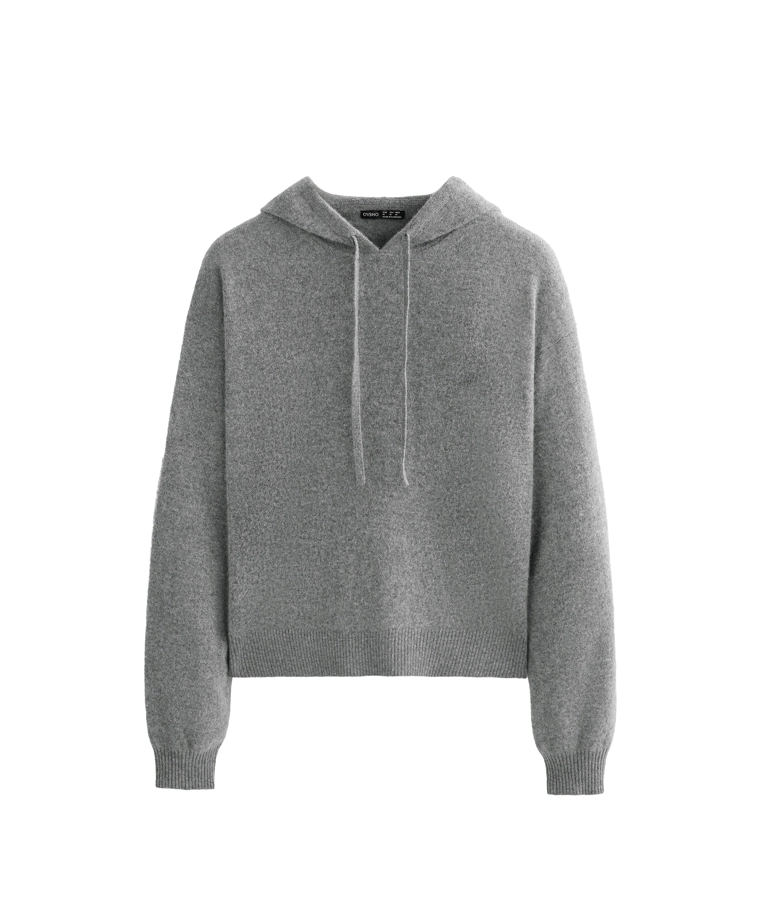 100% cashmere knit hoodie sweatshirt GREY MELANGE|3791/631