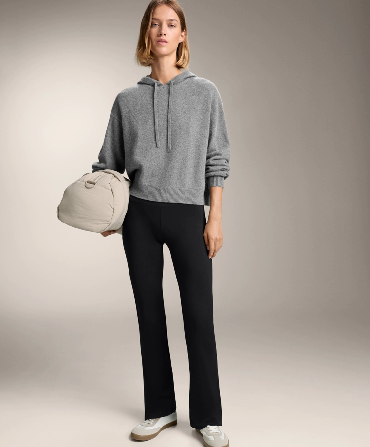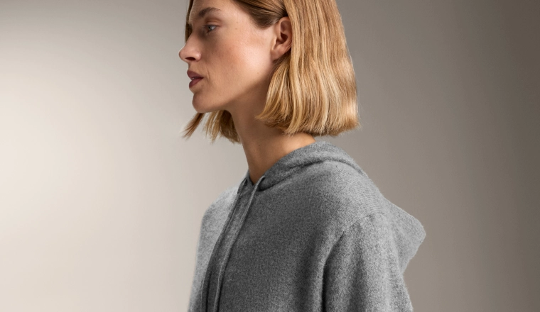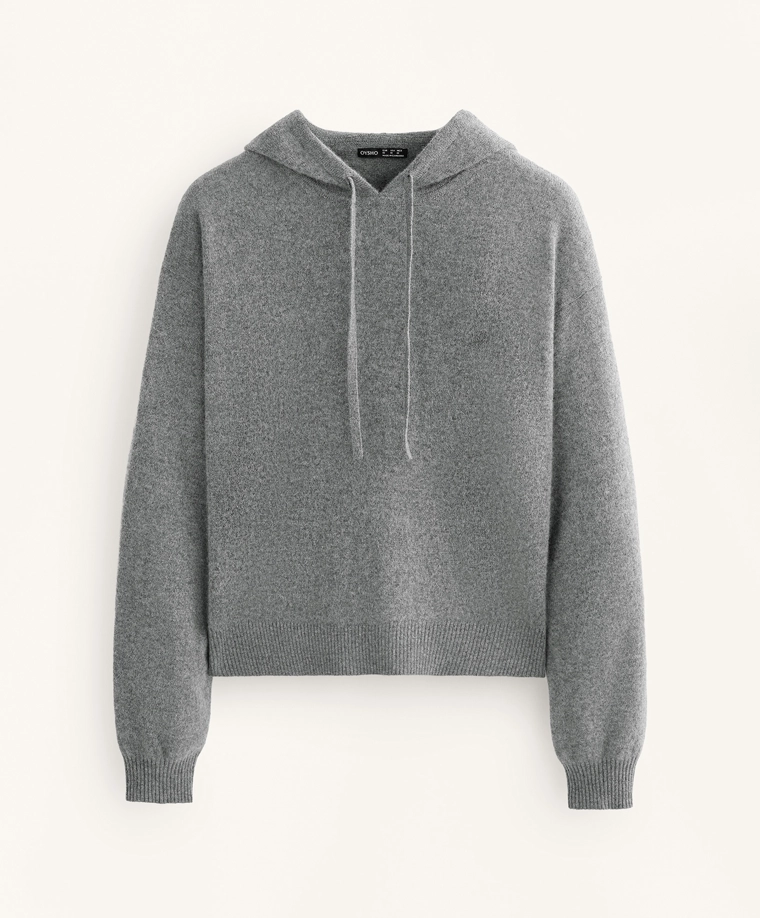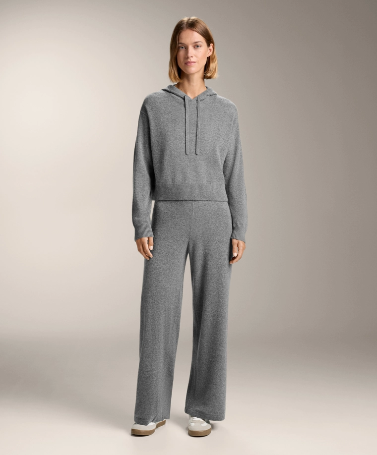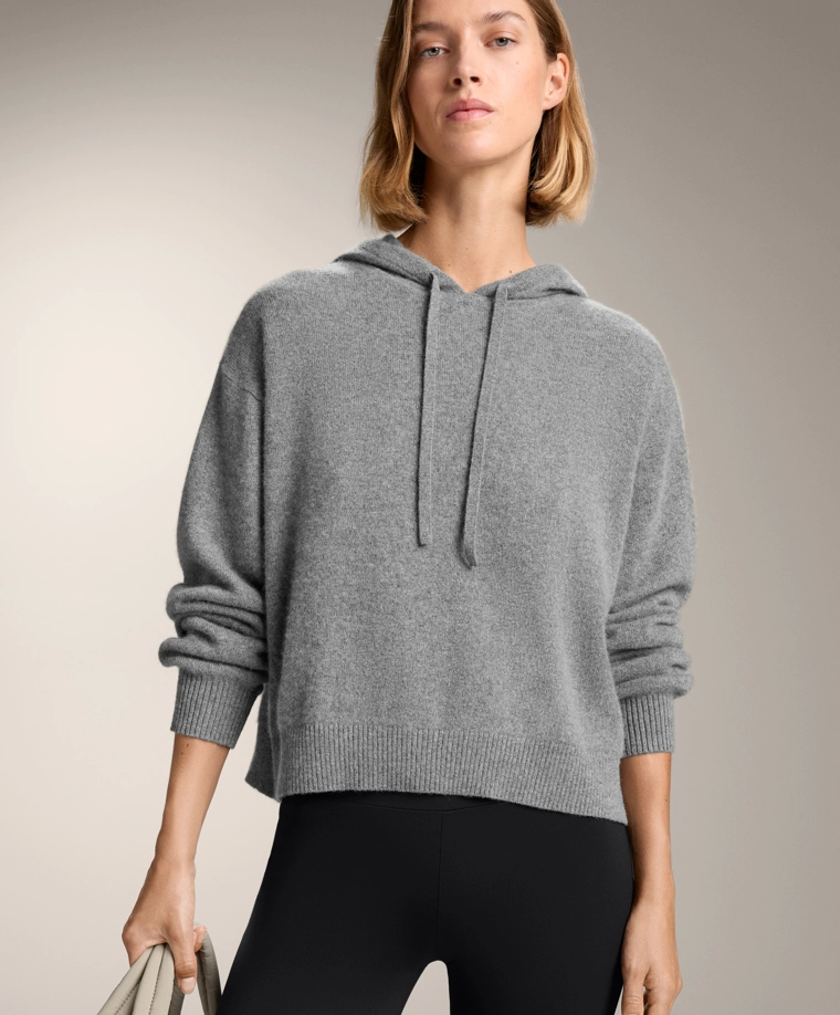 100% cashmere knit hoodie sweatshirt GREY MELANGE|3791/631