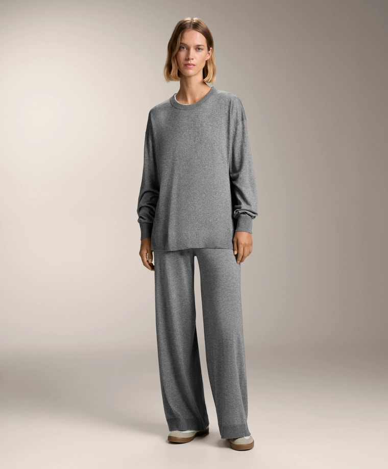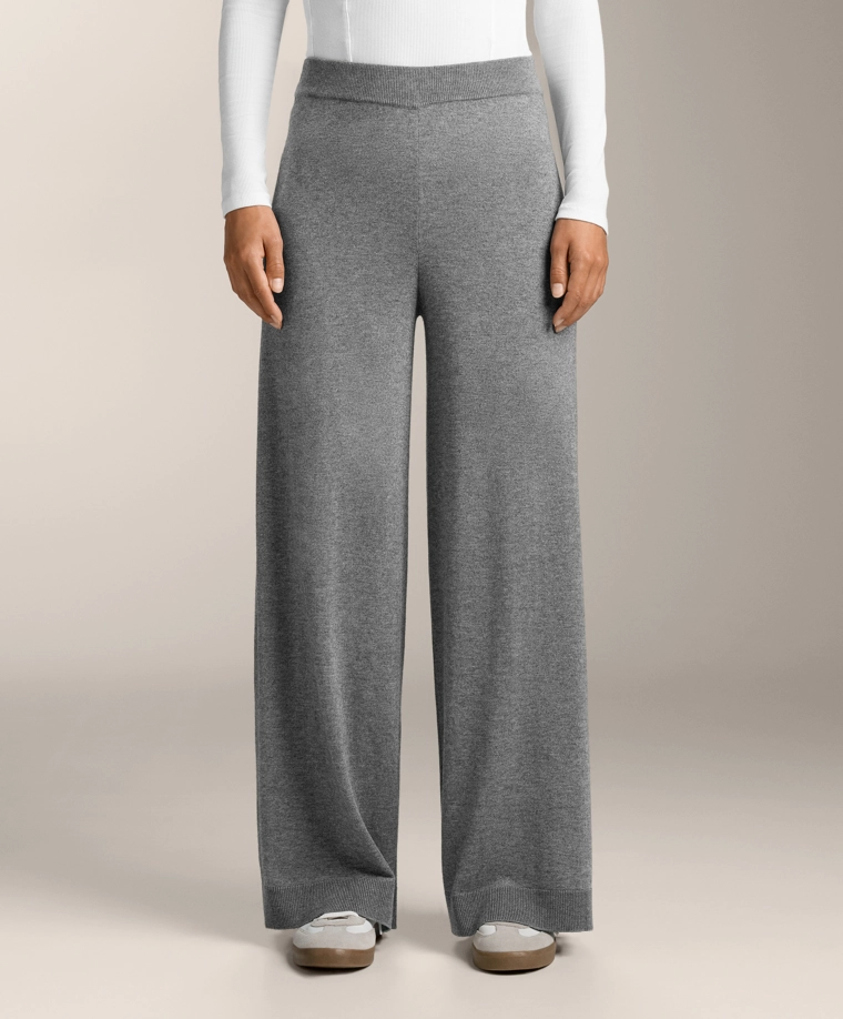 10% cashmere straight knit trousers GREY MELANGE|3392/771