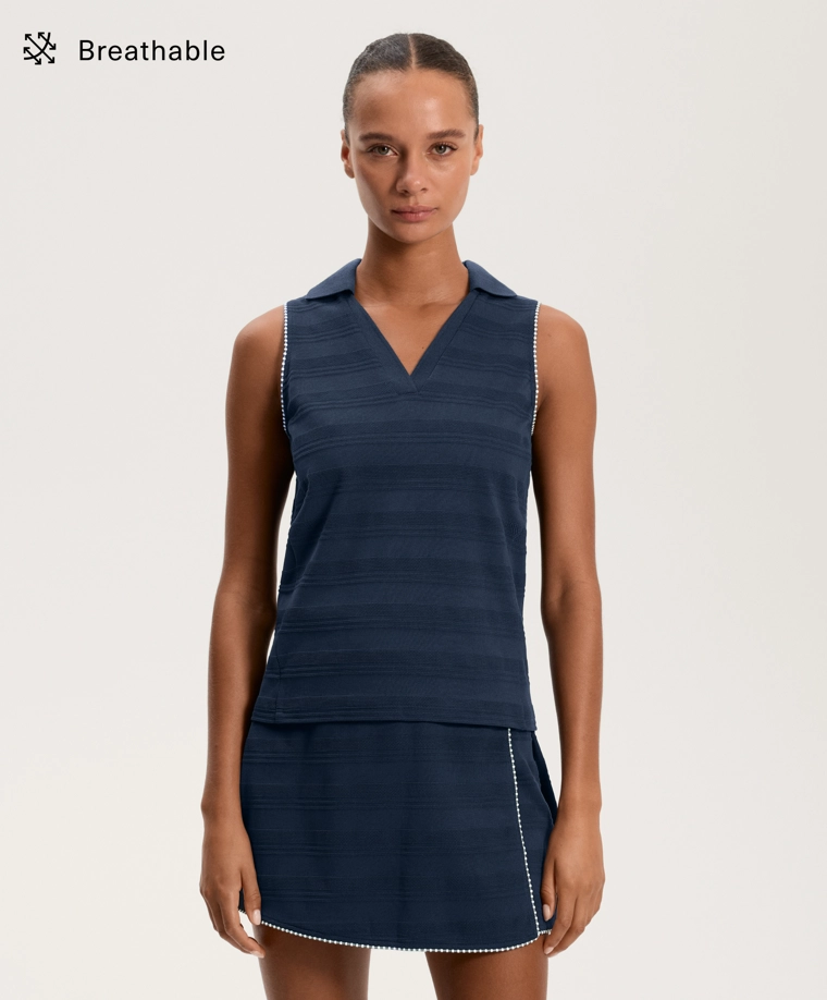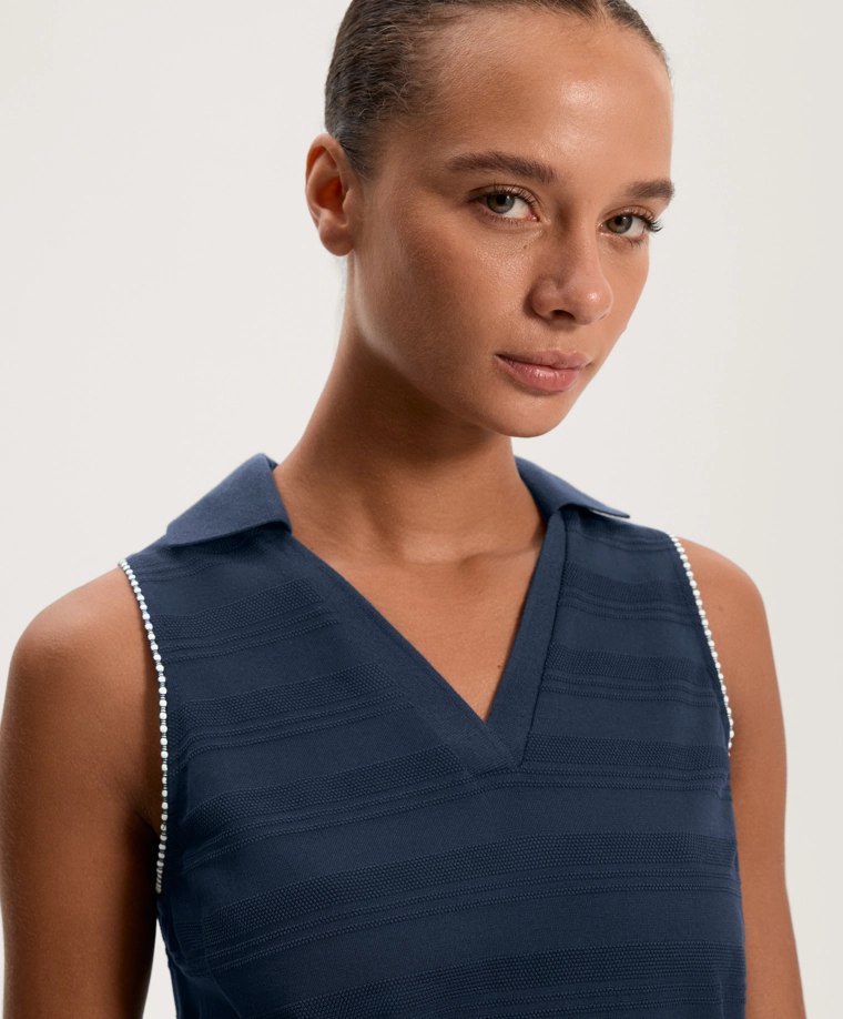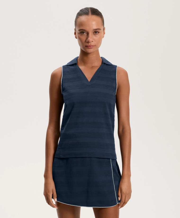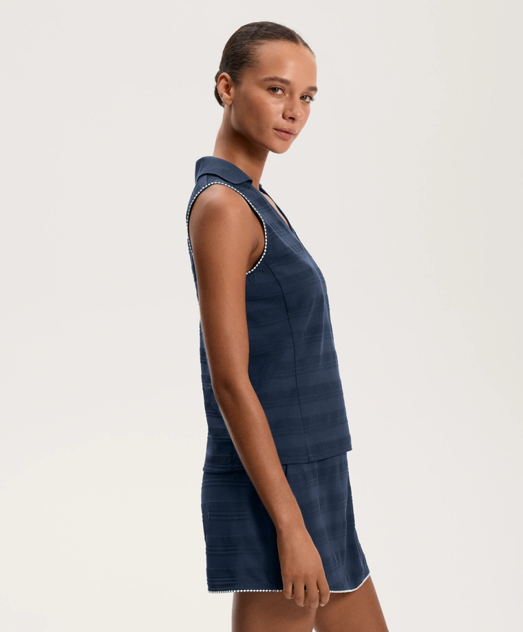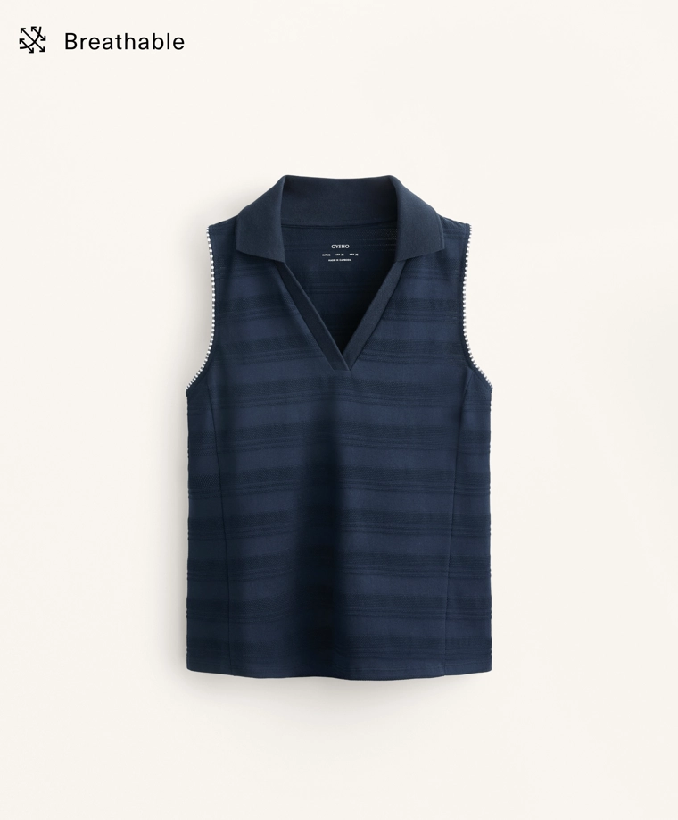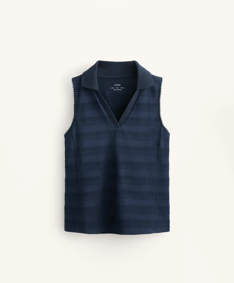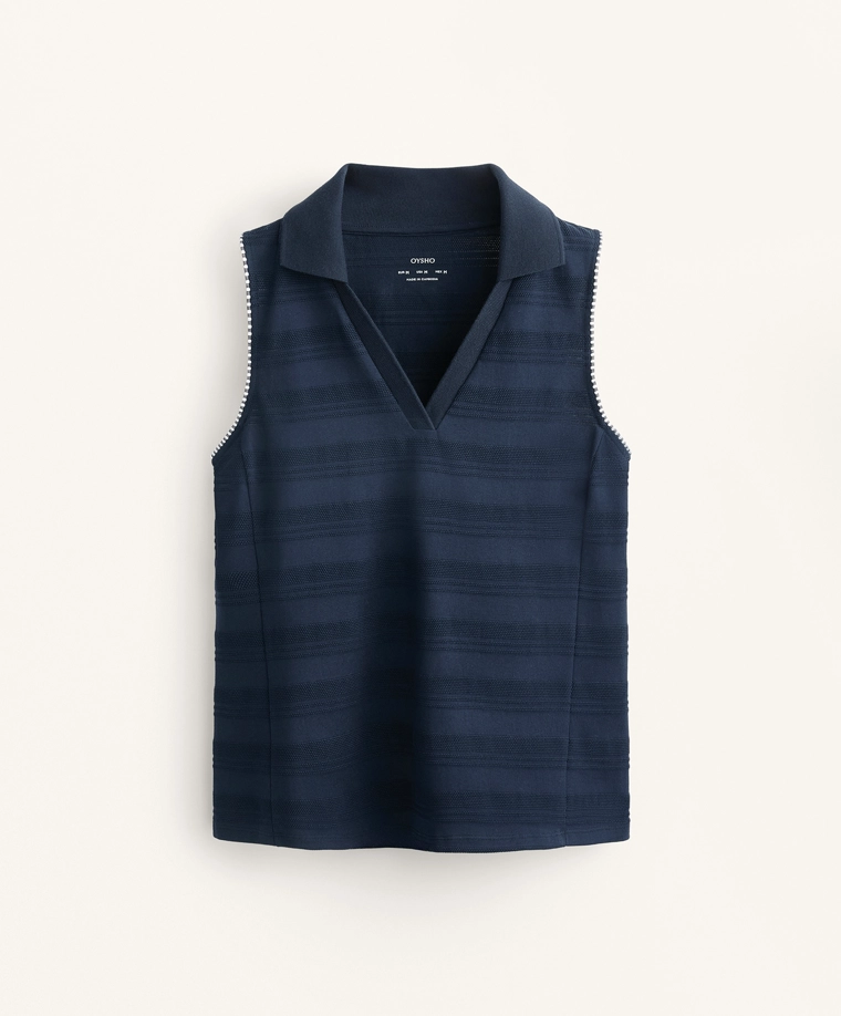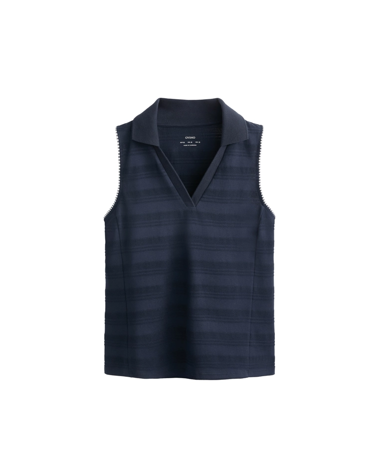 100% cotton sleeveless jacquard polo shirt NAVY|3106/731
