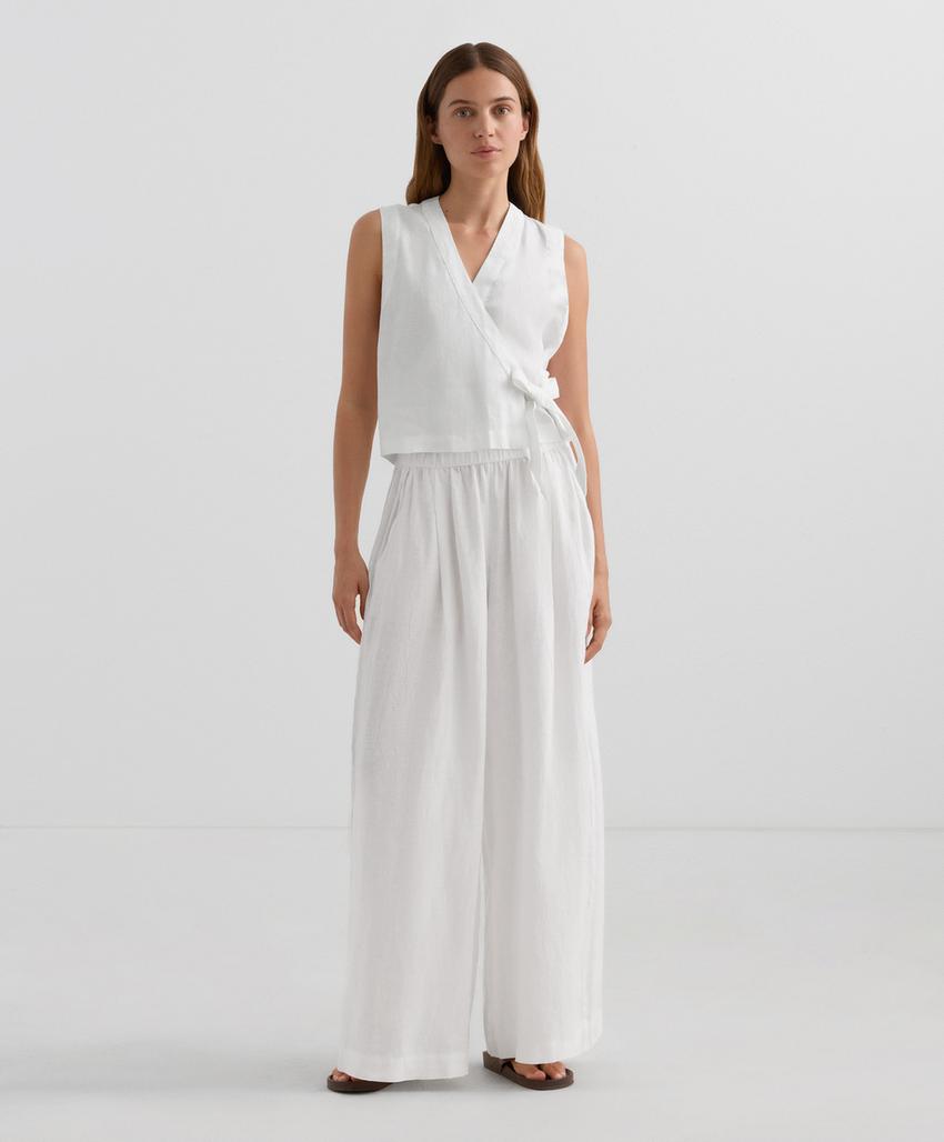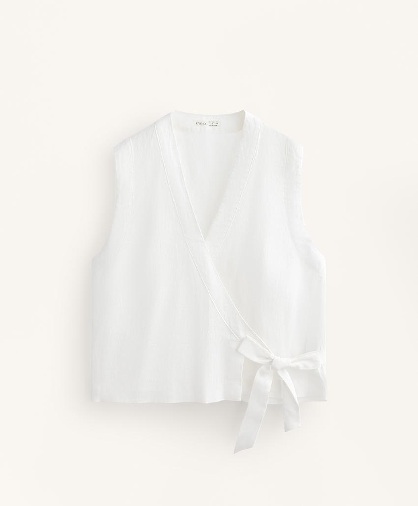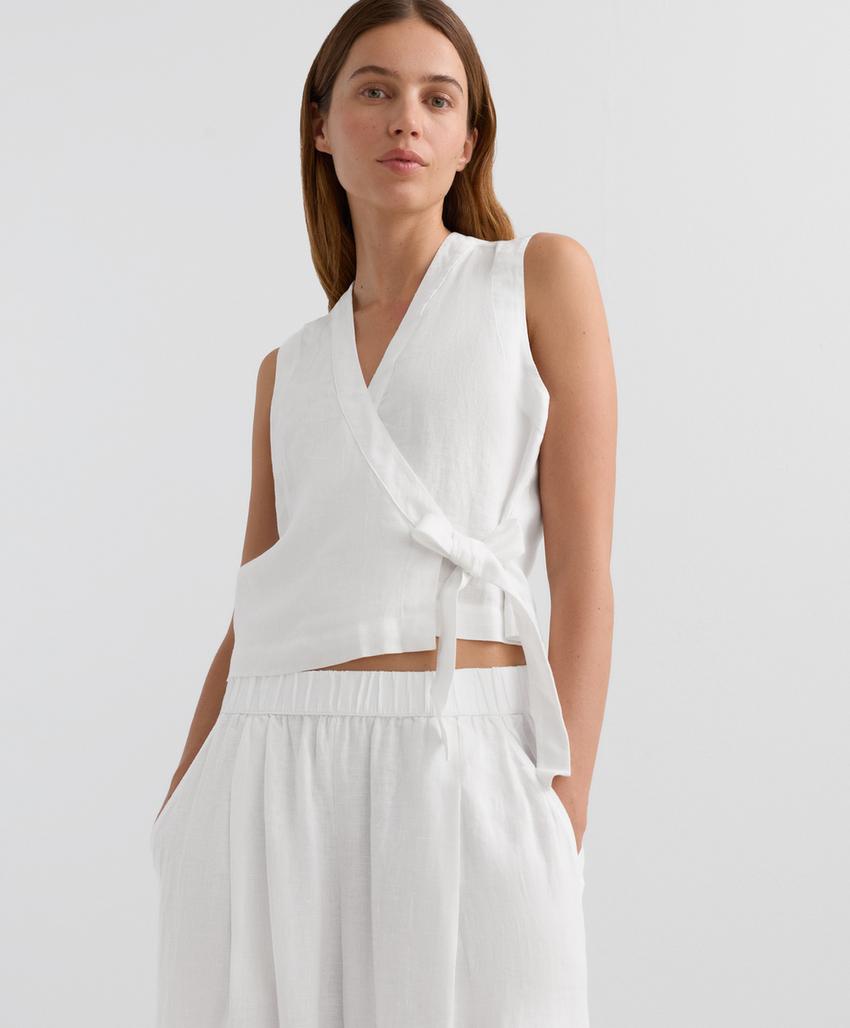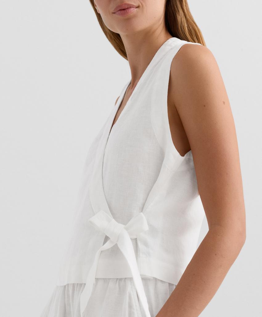 100% linen crossover top with tie fastening WHITE | 3436/850/251