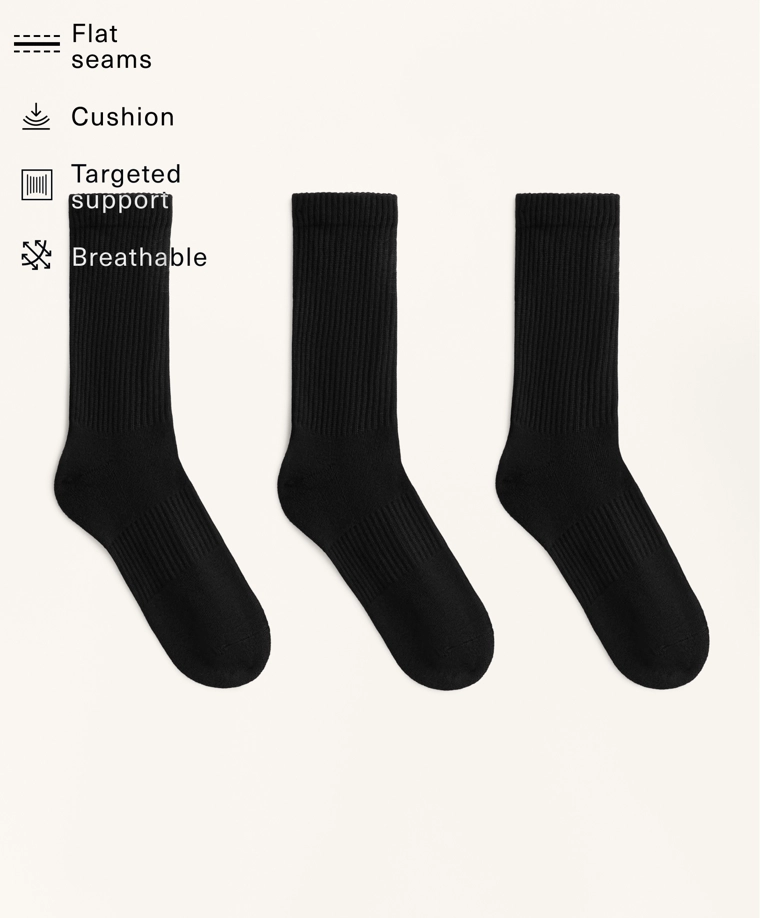 3 pairs of classic cotton blend sports socks BLACK|3631/490