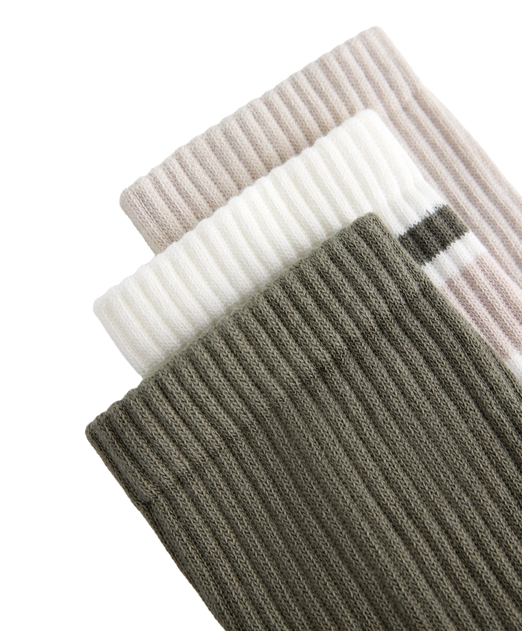 3 pairs of classic cotton blend sports socks MID KHAKI|3616/490