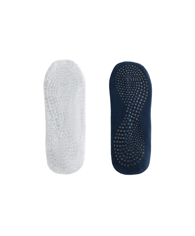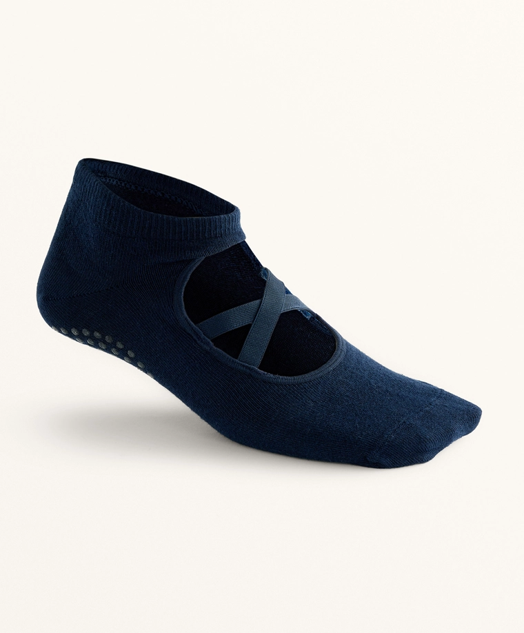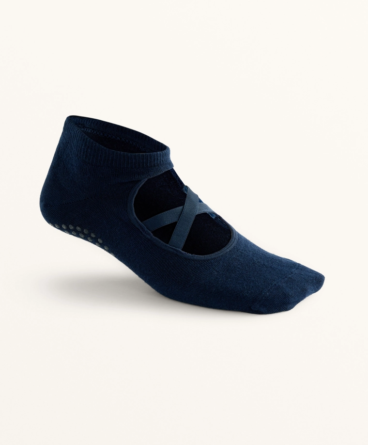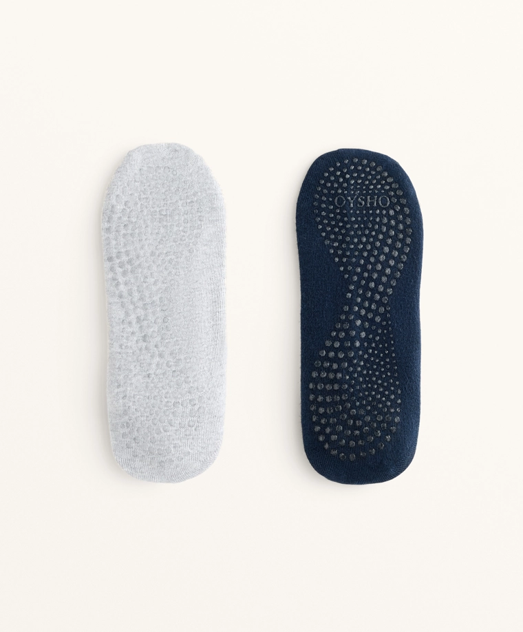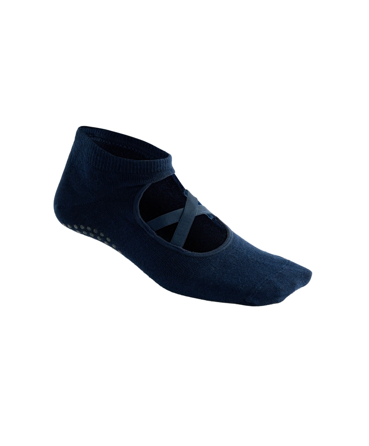 2 pairs of cotton blend yoga and Pilates socks with crossover straps BLUE|2531/490