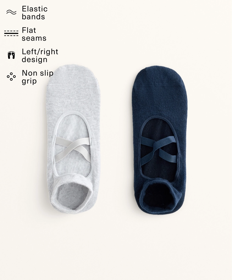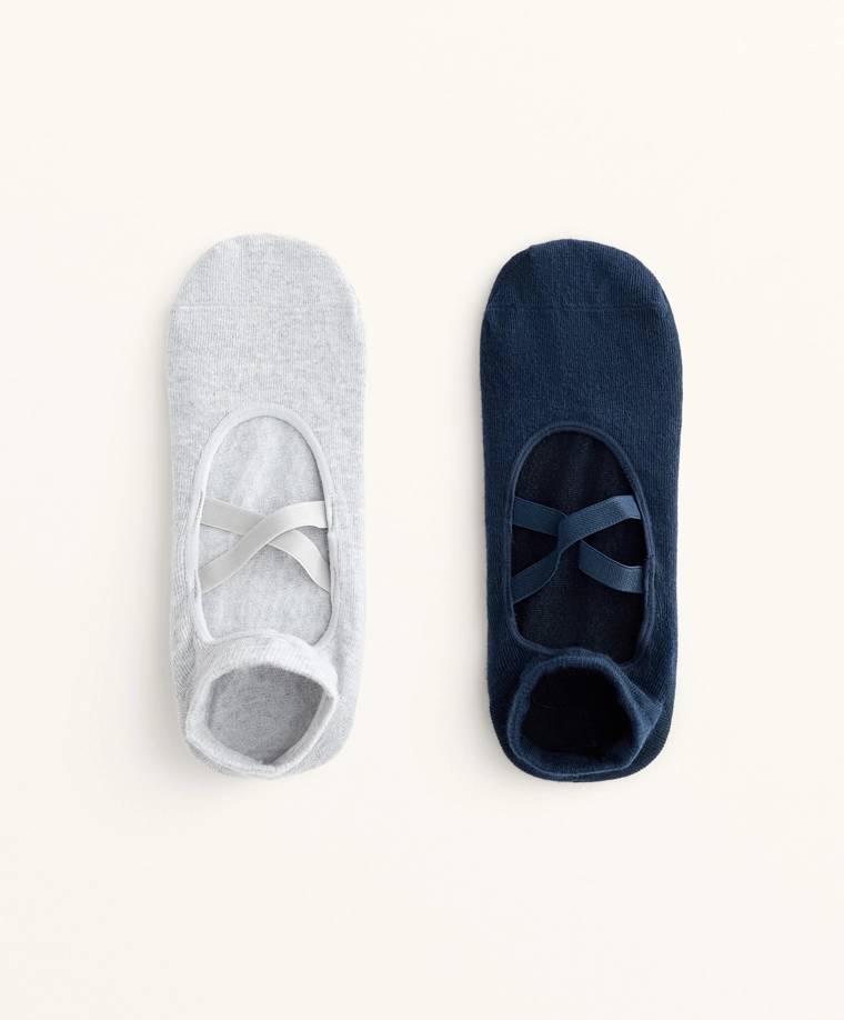 2 pairs of cotton blend yoga and Pilates socks with crossover straps