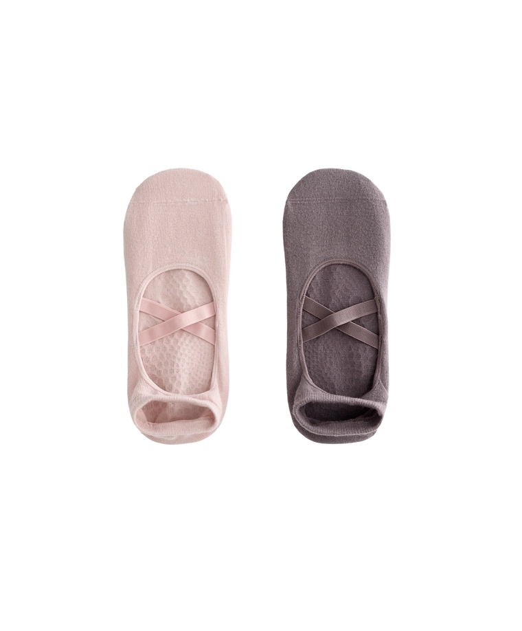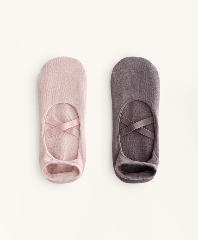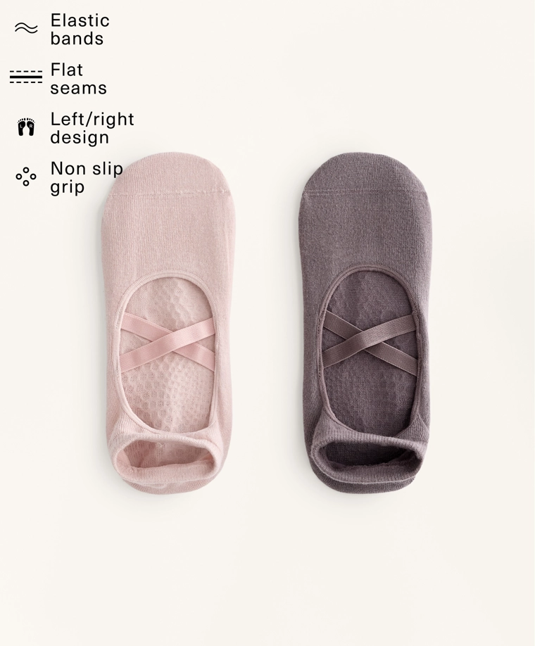 2 pairs of cotton blend yoga and Pilates socks with crossover straps