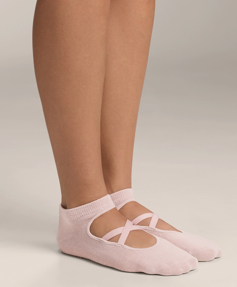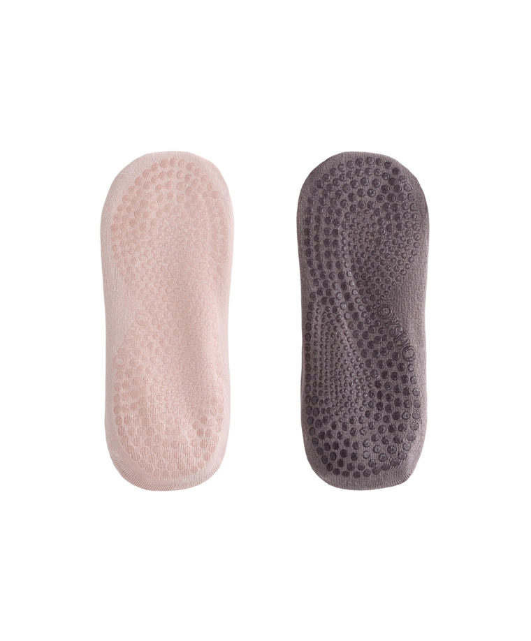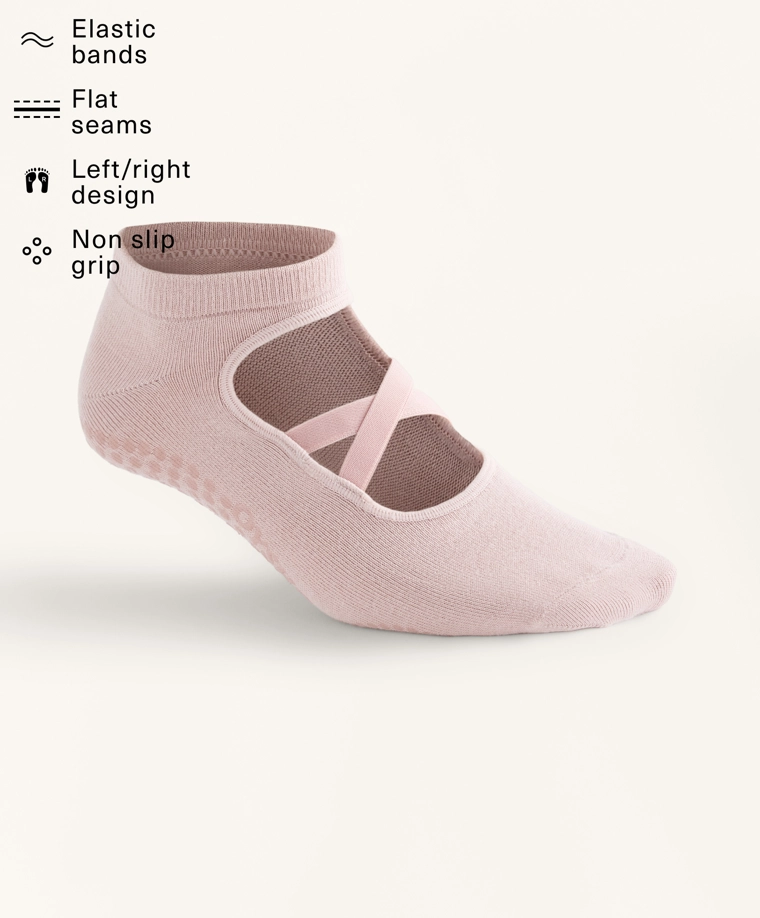 2 pairs of cotton blend yoga and Pilates socks with crossover straps PINK|3641/490