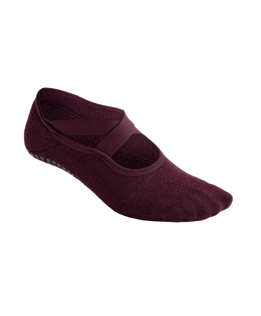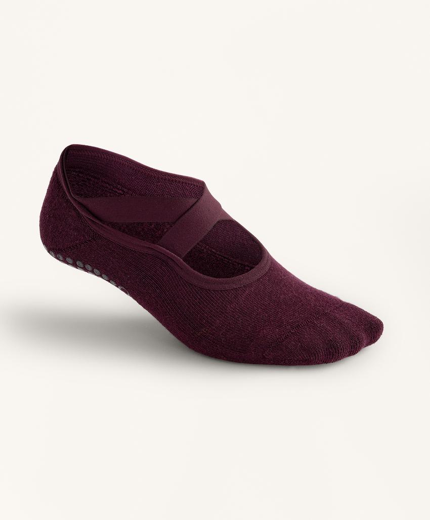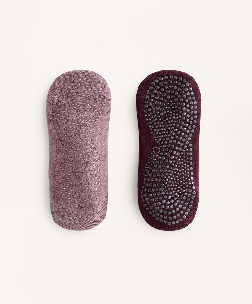 2 pairs of padded cotton blend yoga and Pilates socks with crossover straps DARK MAROON | 3635/490/686