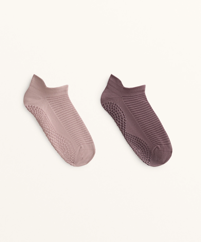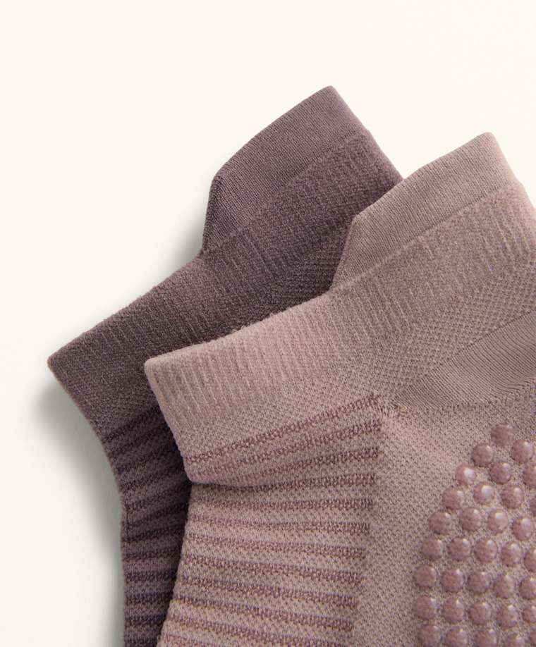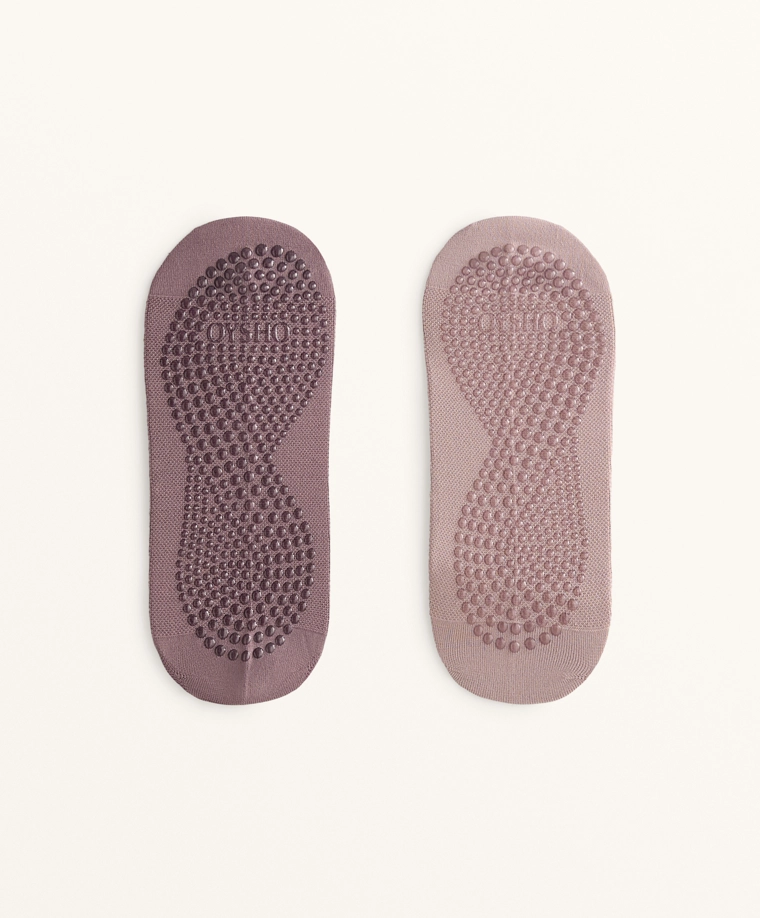 2 pairs of polyamide blend yoga and Pilates sneaker socks MAUVE-TAUPE|2623/490