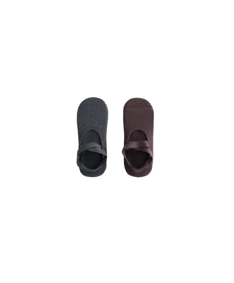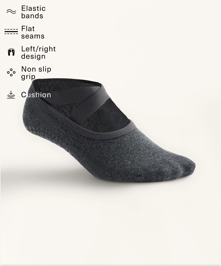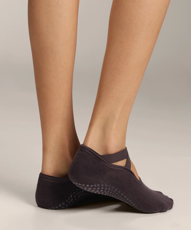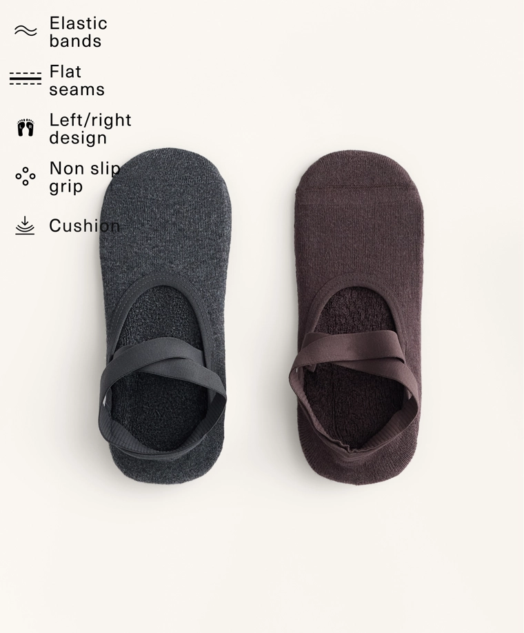2 pairs of yoga and pilates cotton blend socks with crossed straps and cushioning DARK GREY|3625/490