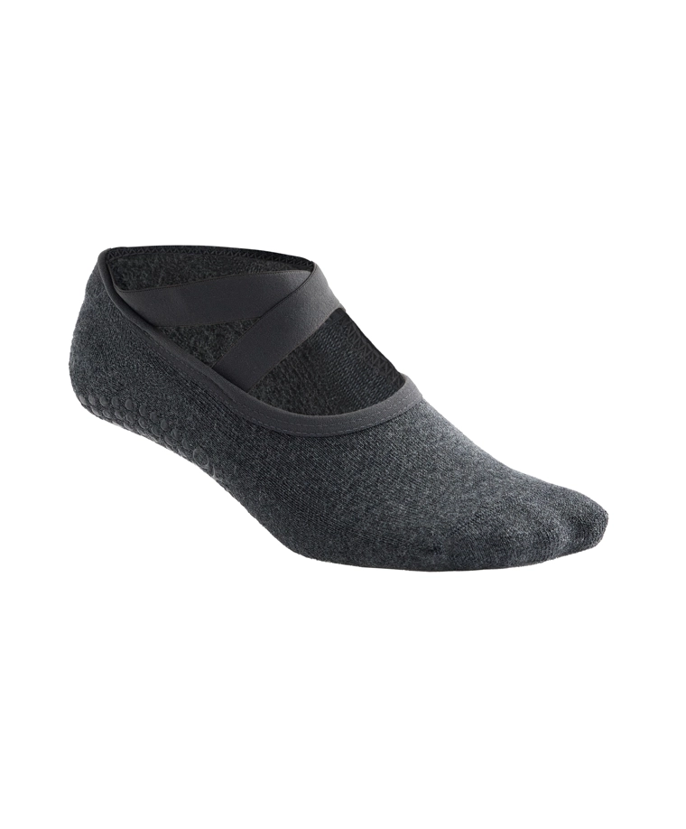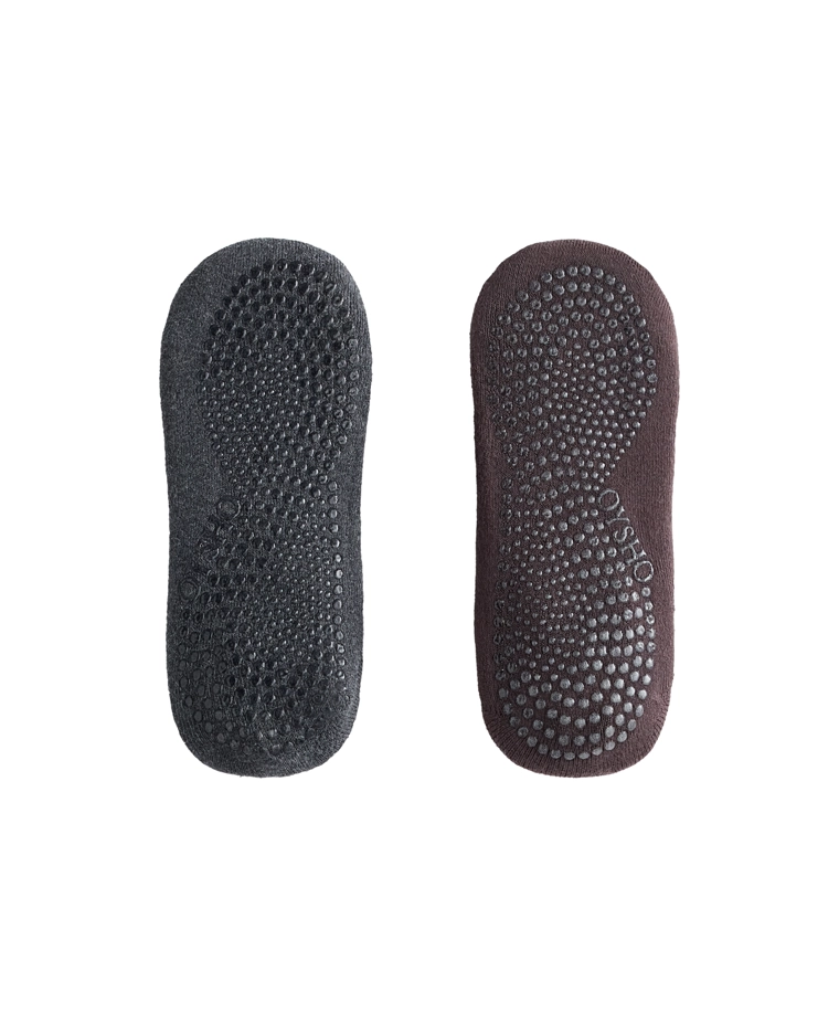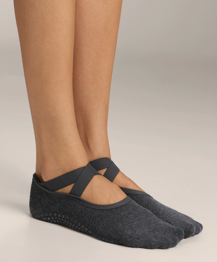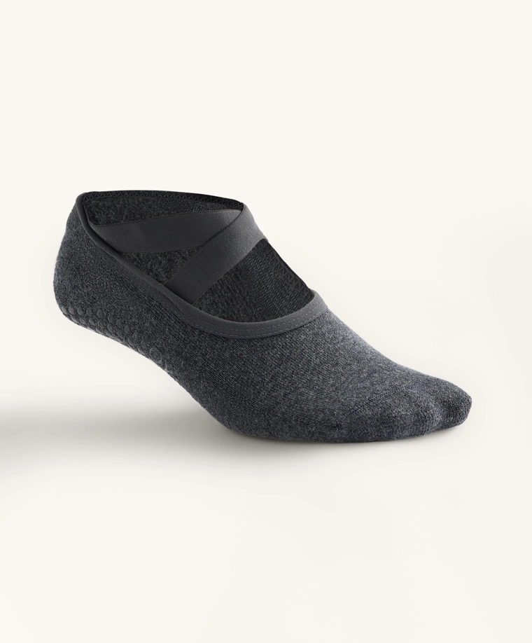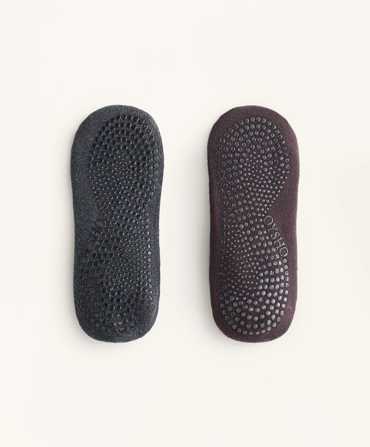 2 pairs of yoga and pilates cotton blend socks with crossed straps and cushioning DARK GREY|3625/490