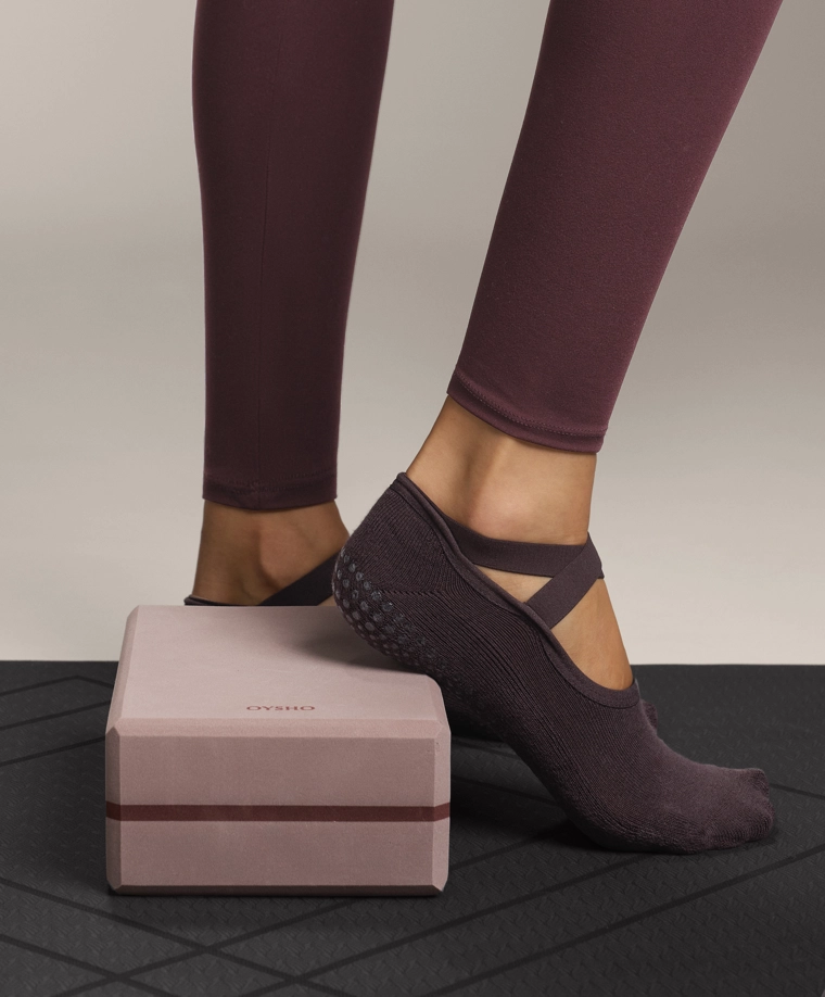 2 pairs of yoga and pilates cotton blend socks with crossed straps and cushioning