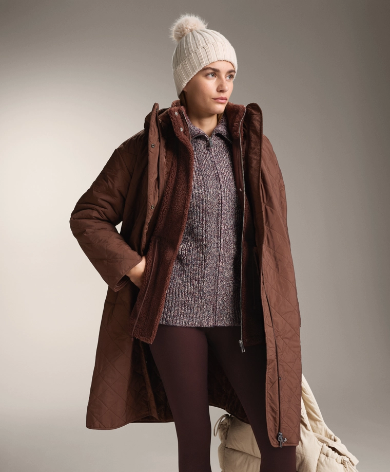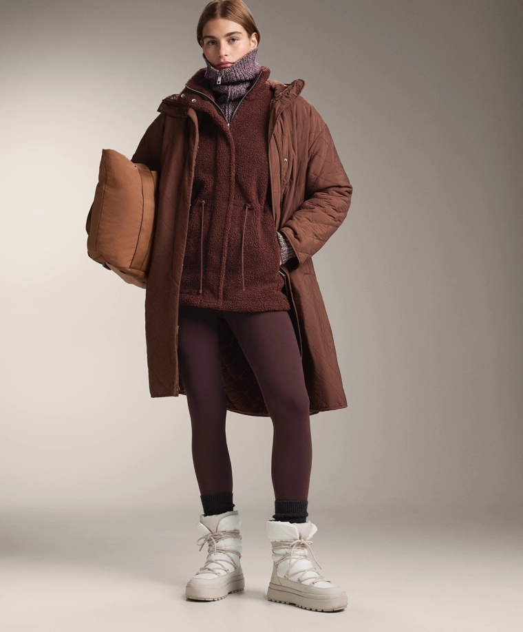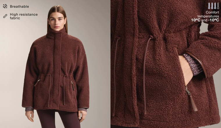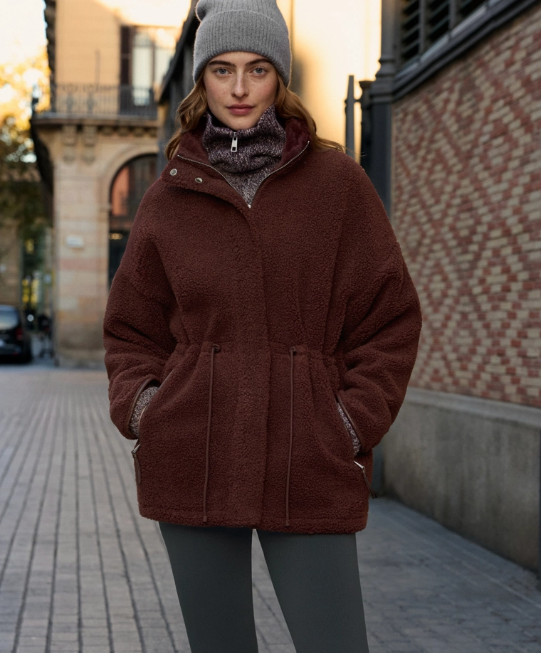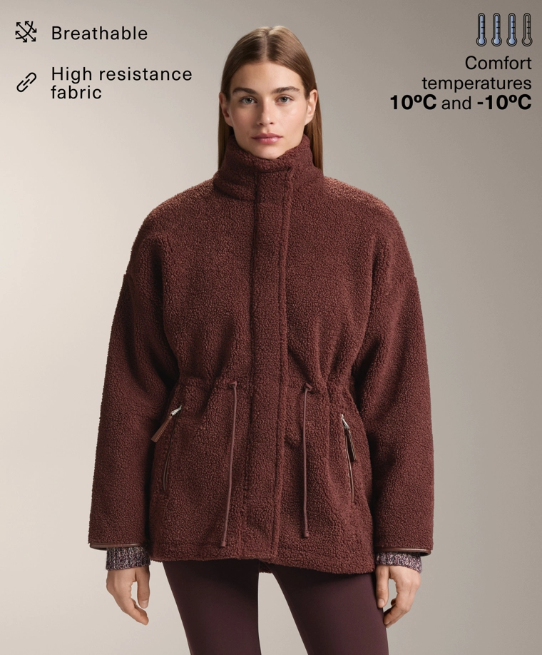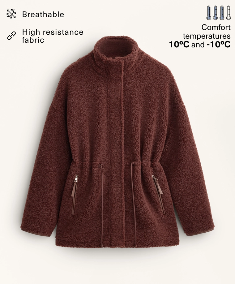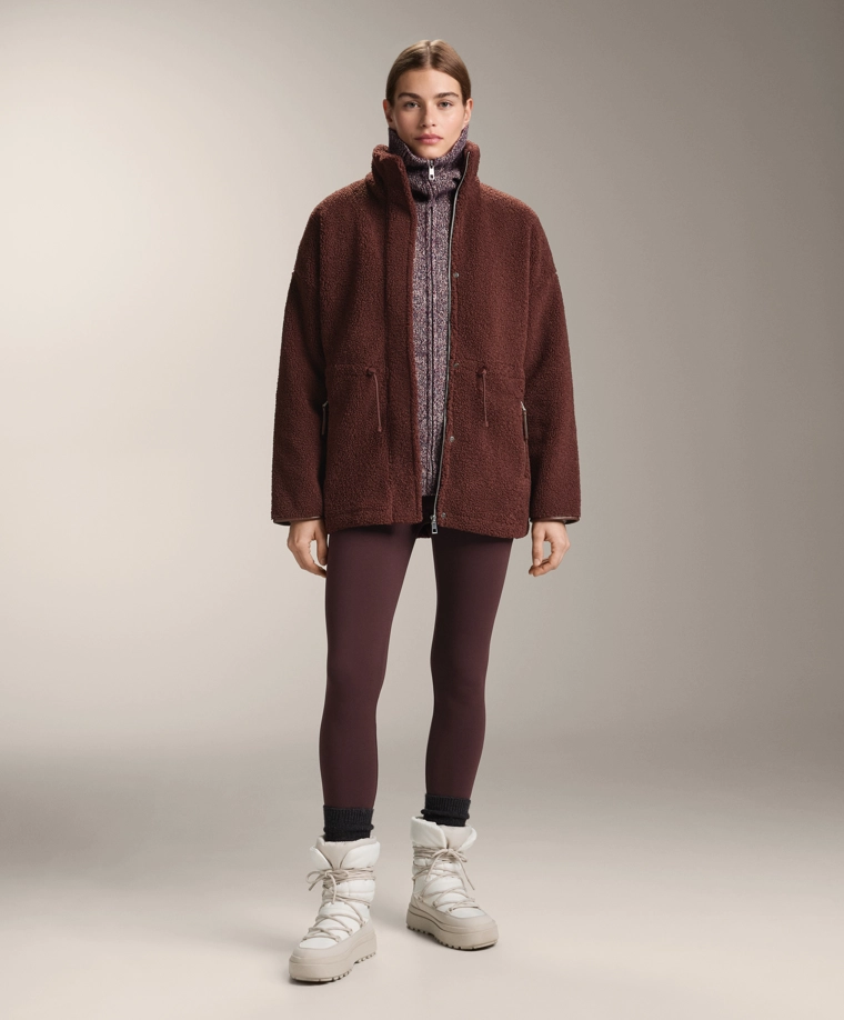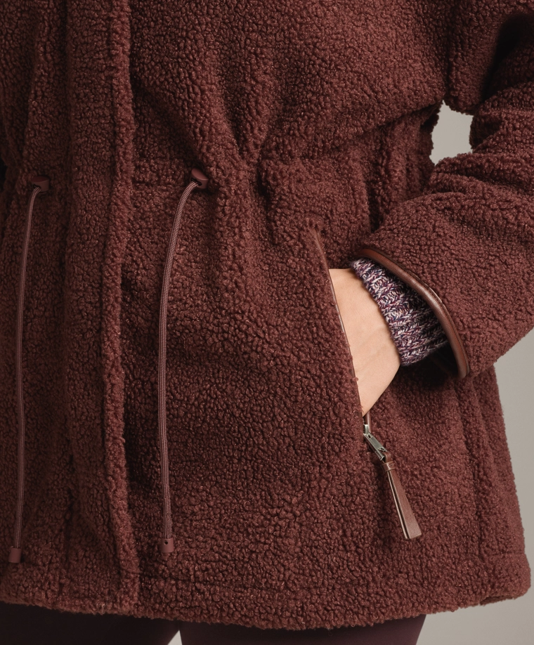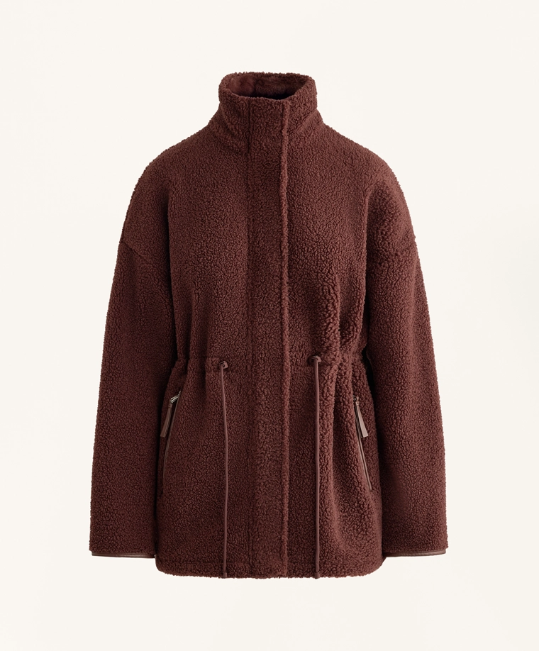 Adjustable waist faux-shearling jacket BURGUNDY|3911/671