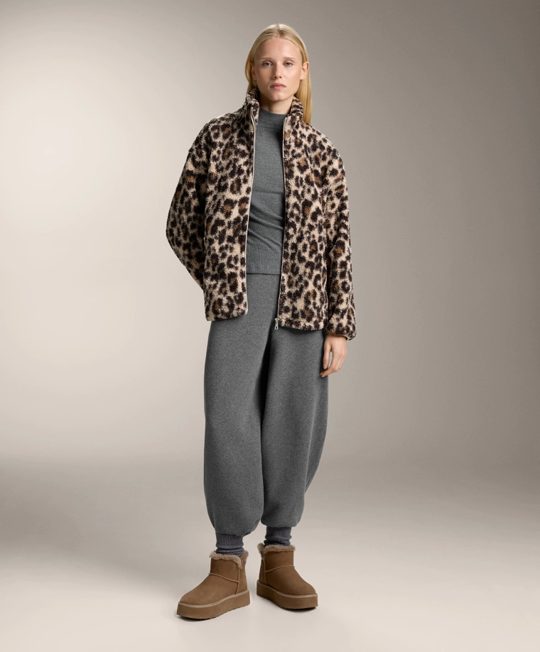 Animal print faux-shearling jacket SAND MELANGE|3908/671