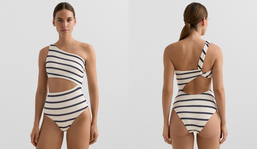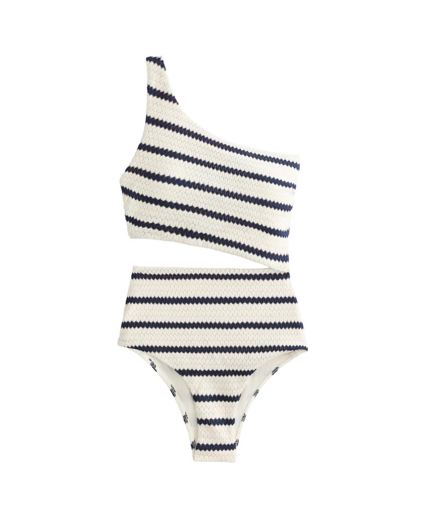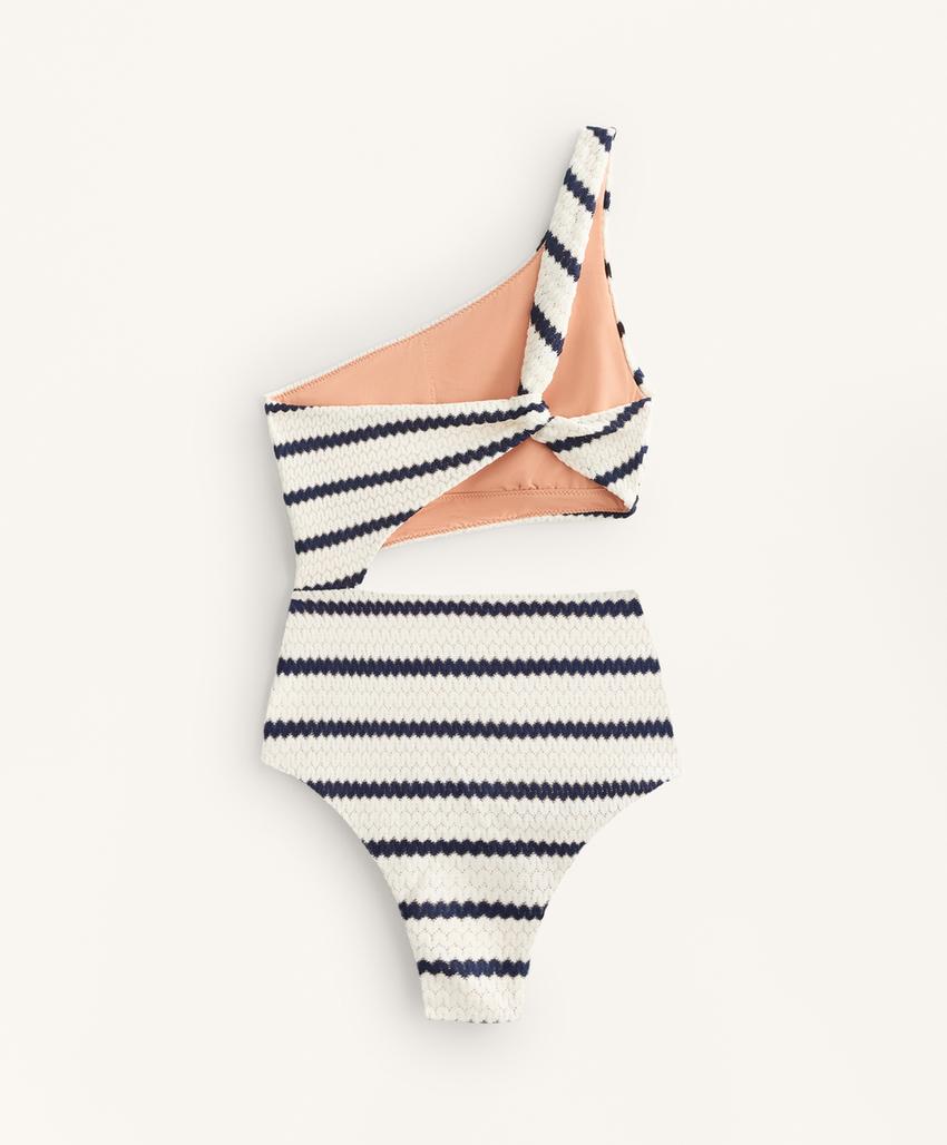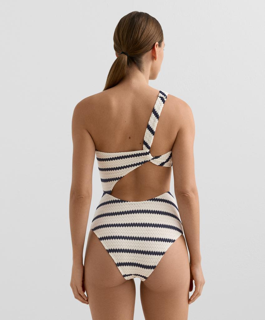 Asymmetric striped crochet trikini PALE ECRU | 0744/223/959