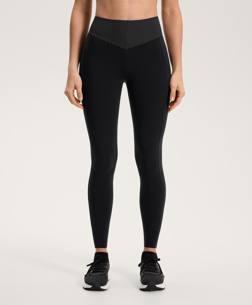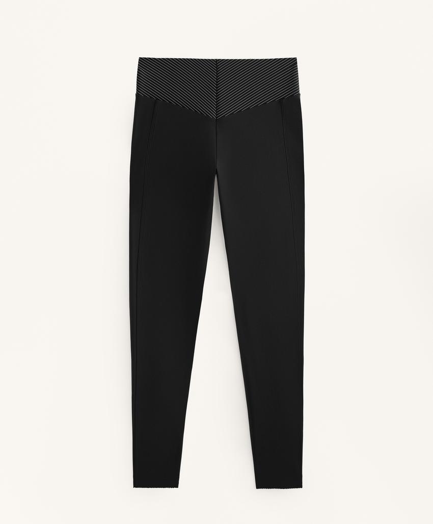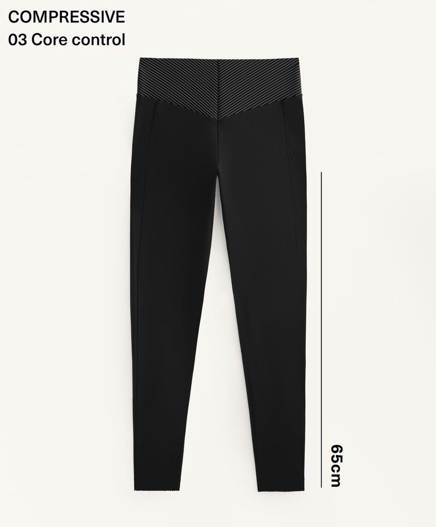 Basic high-rise Compressive striped ankle-length leggings 65 cm BLACK | 3768/254/800