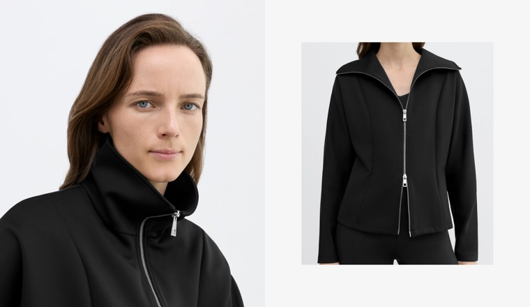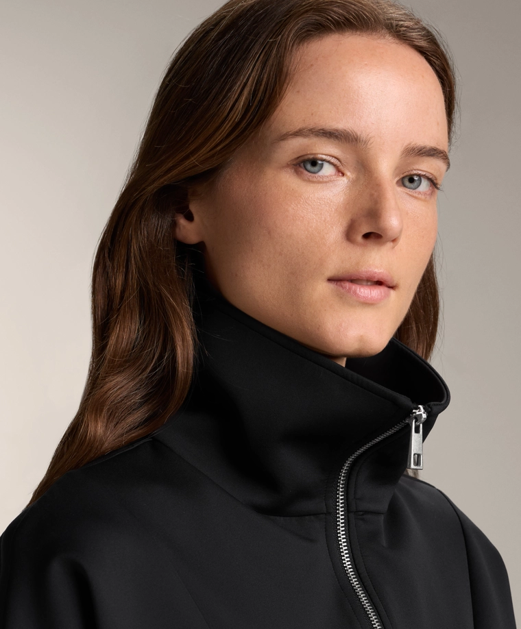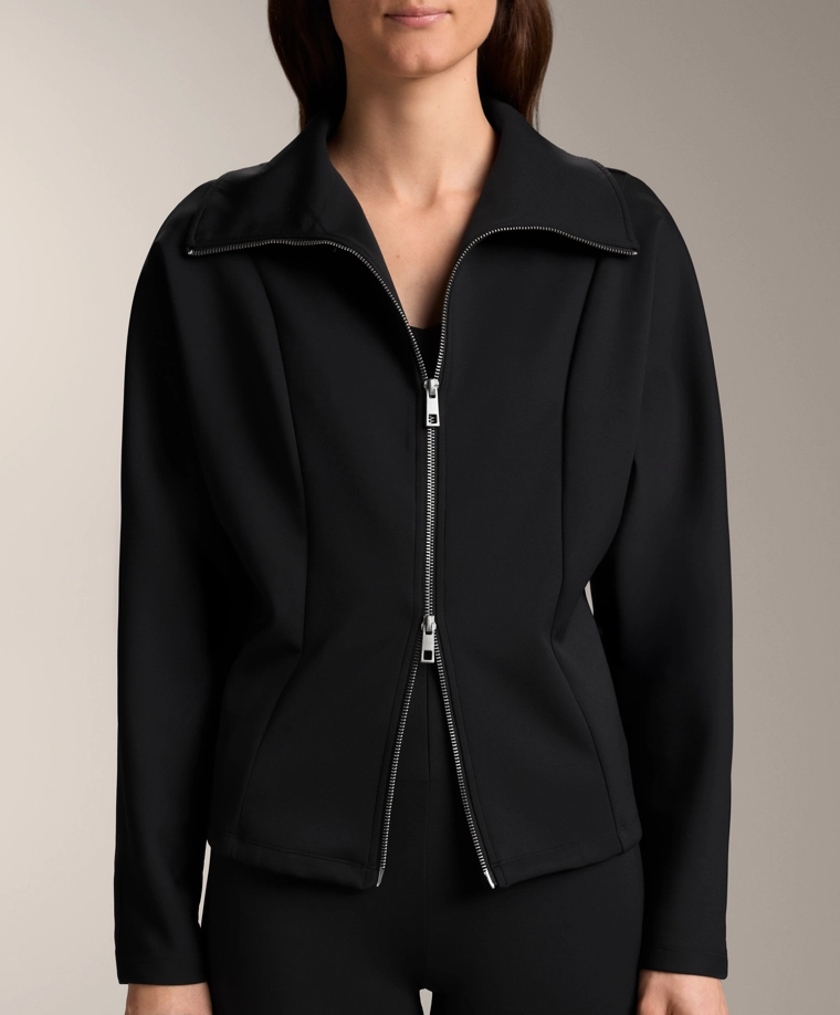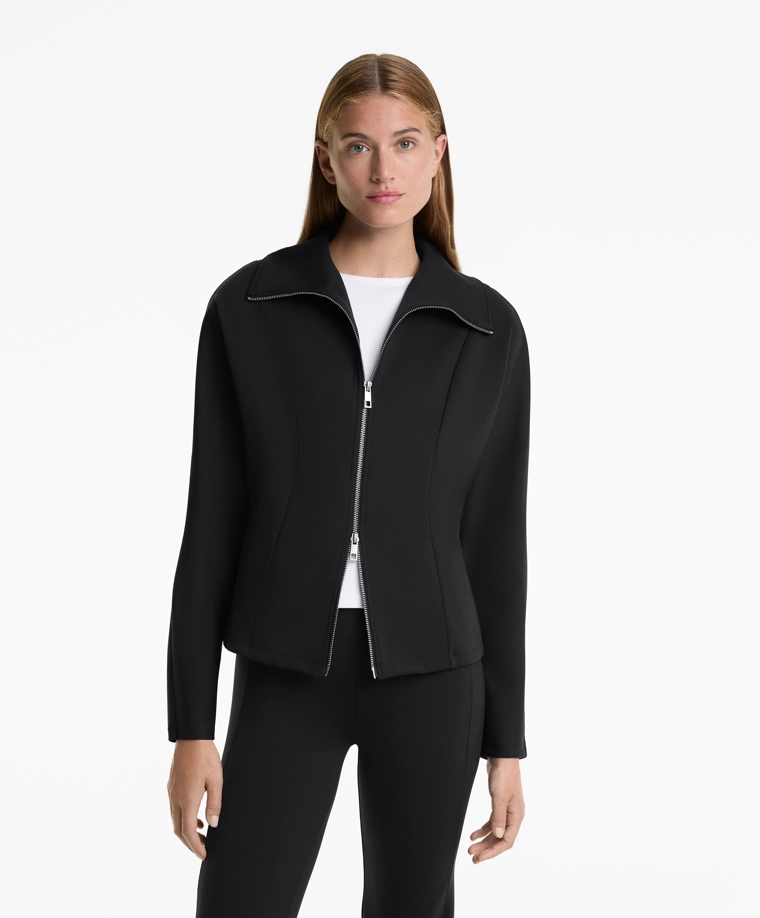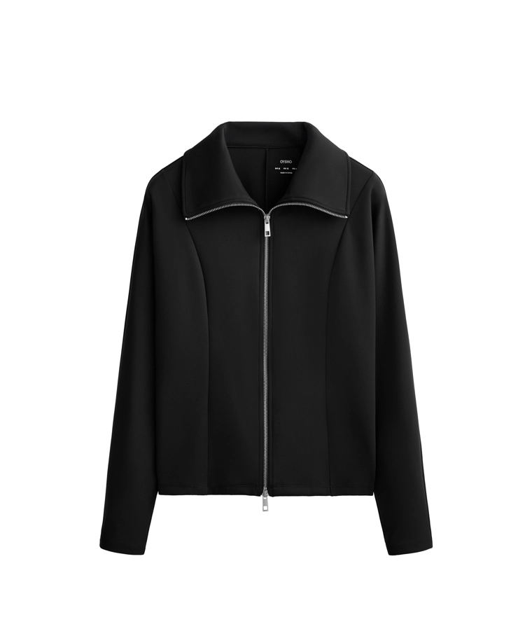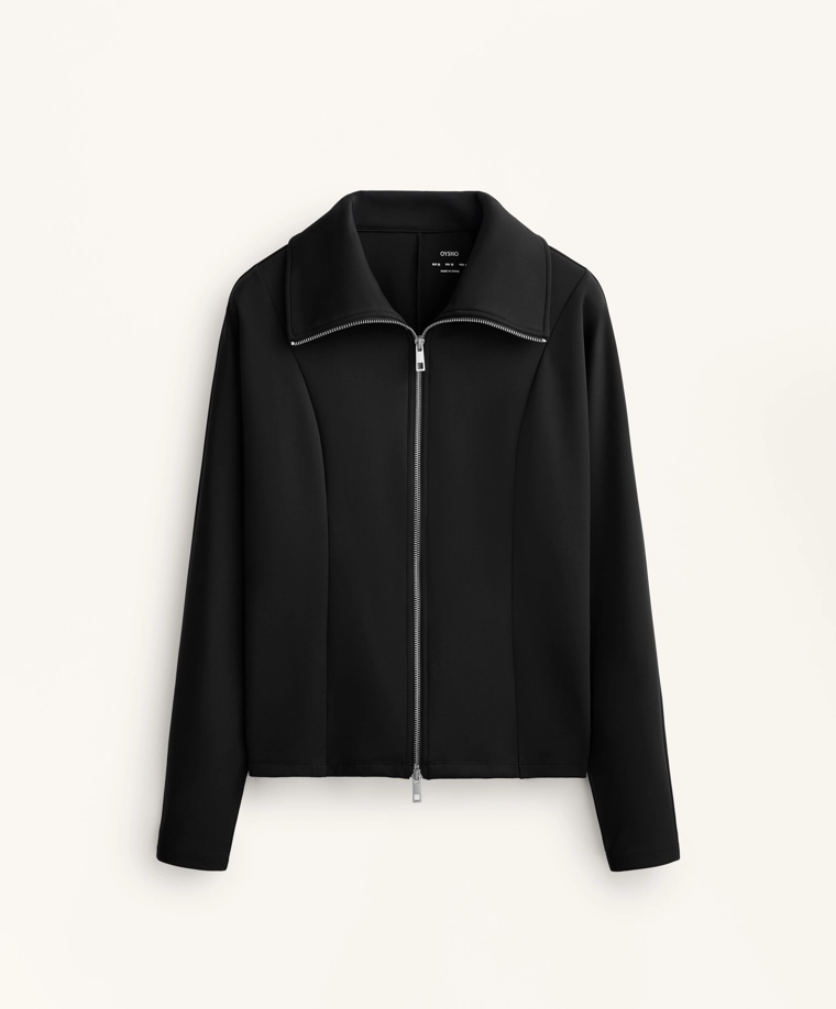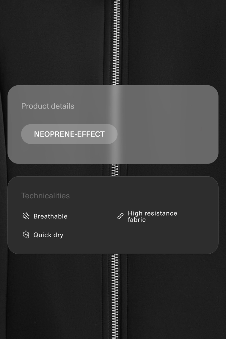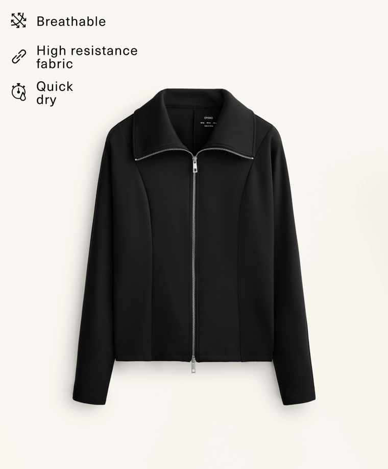 Куртка с эффектом неопрена с двойной застежкой-молнией спереди. Высокий воротник. Дышащая и износостойкая быстросохнущая ткань.