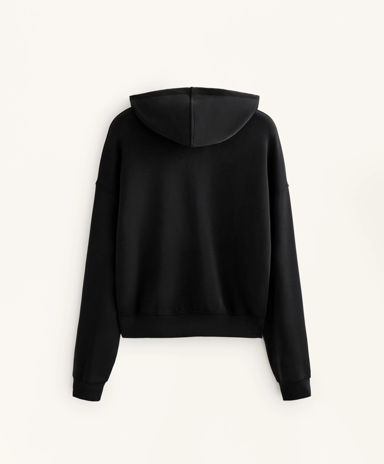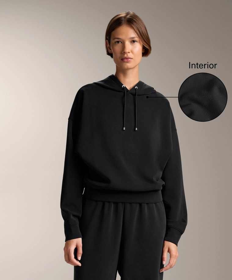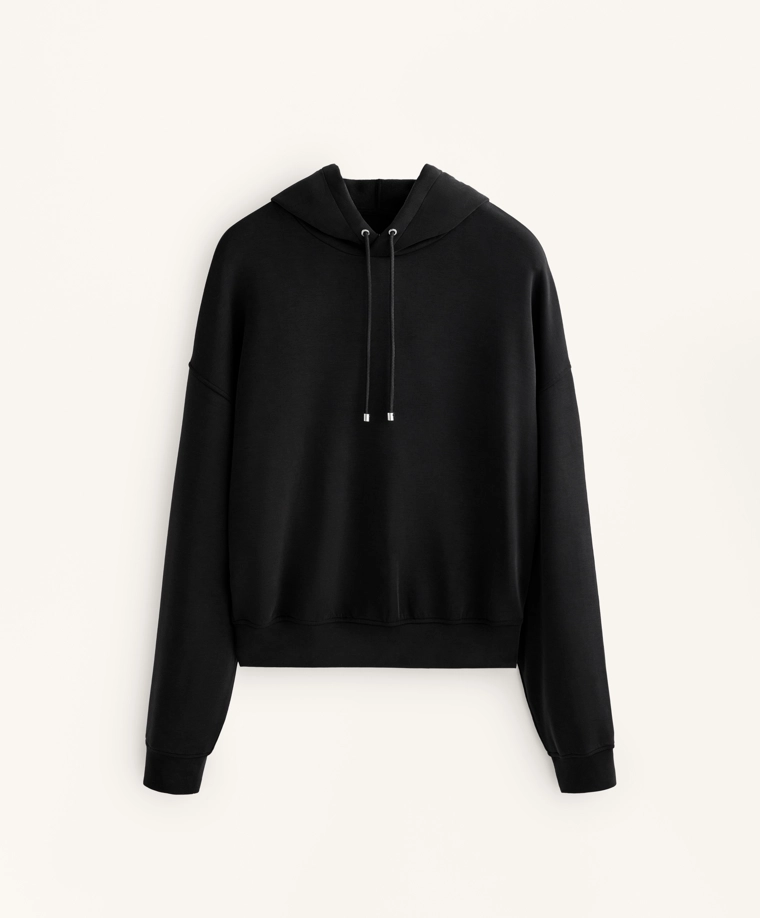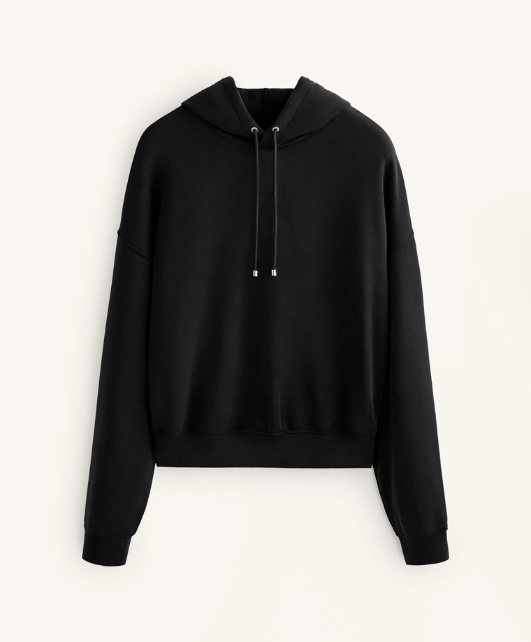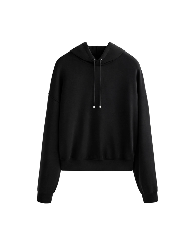Boxy hoodie with brushed modal BLACK|2225/746
