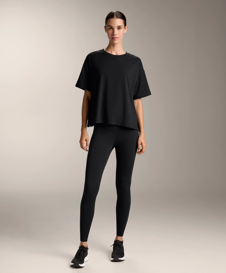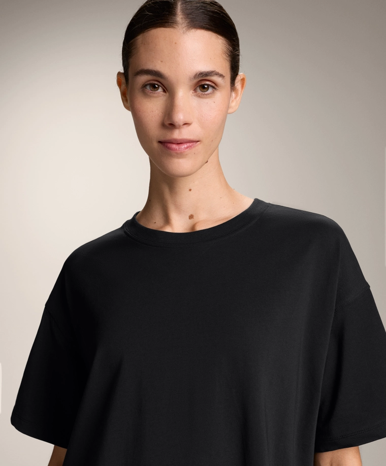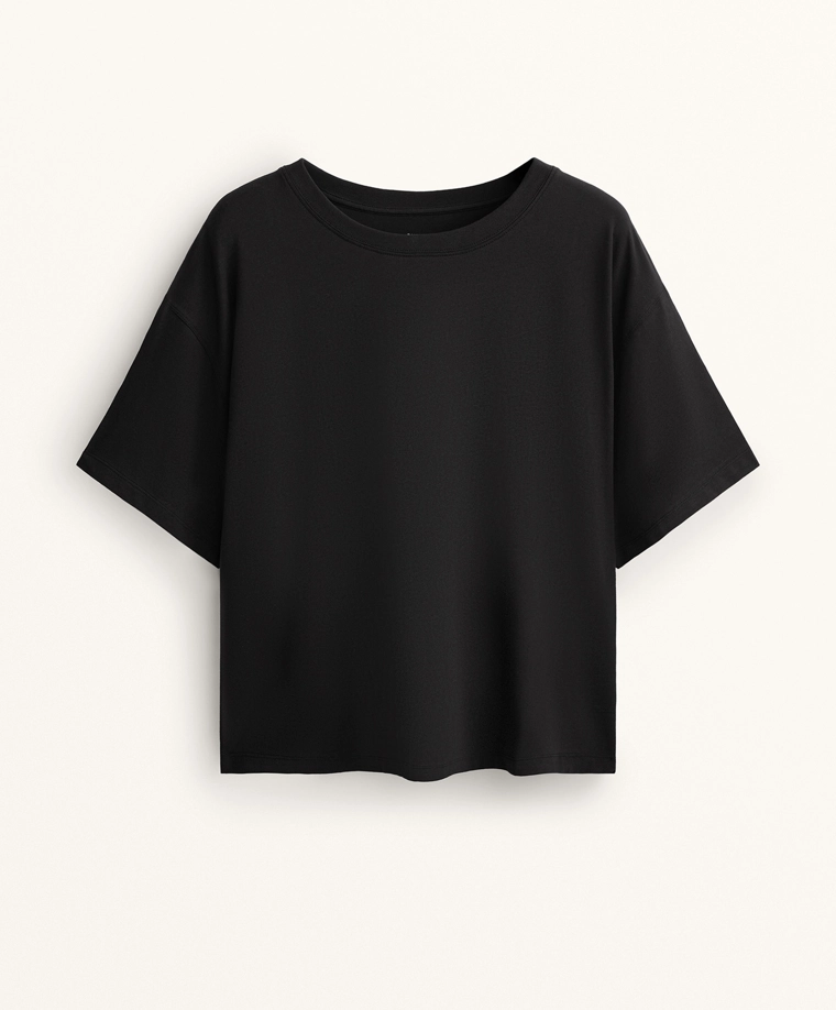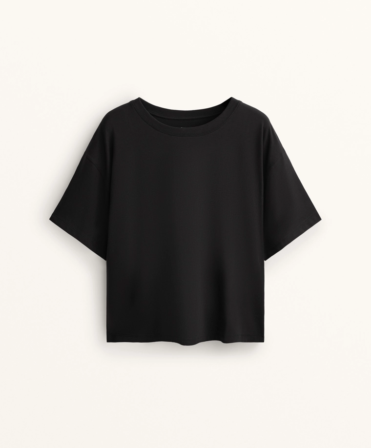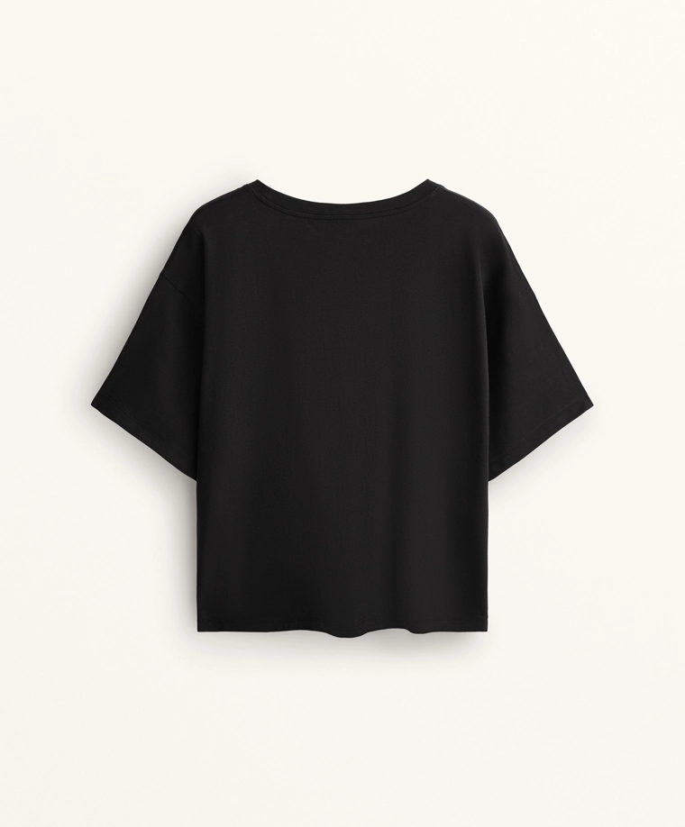 Boxy short-sleeve cotton blend T-shirt BLACK|0257/169