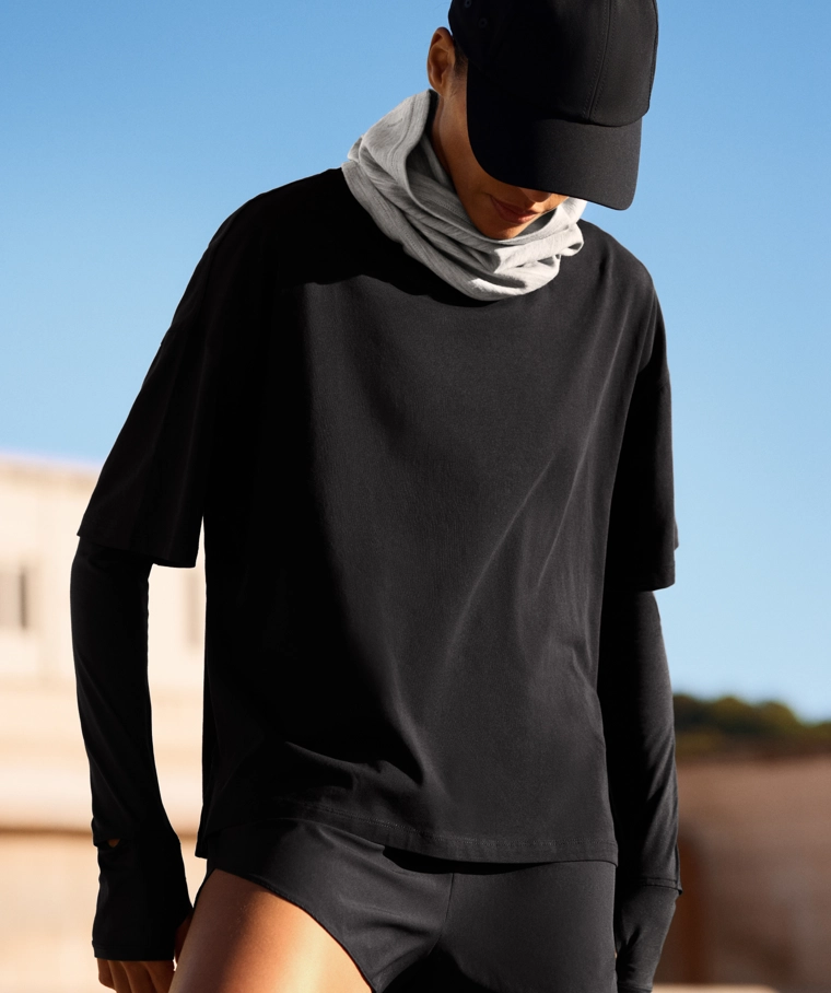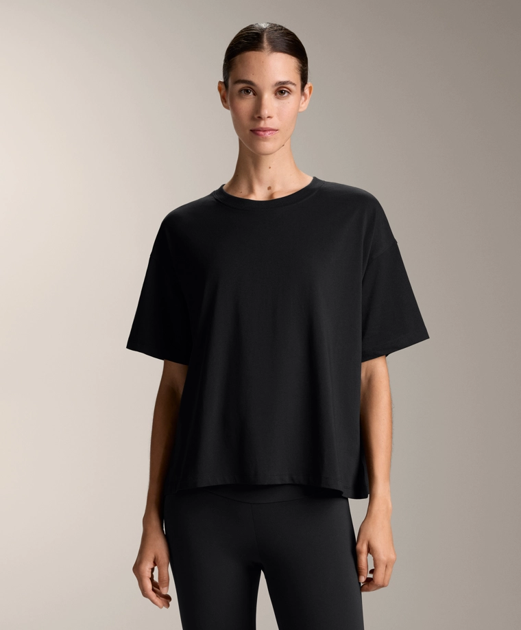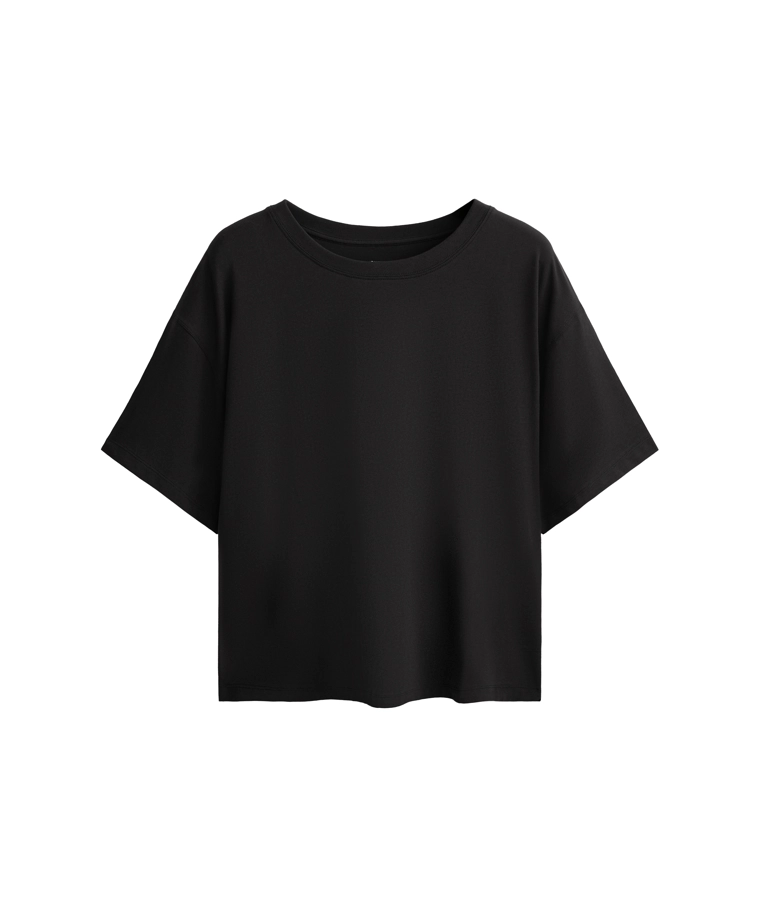 Boxy short-sleeve cotton blend T-shirt BLACK | 0257/169/800