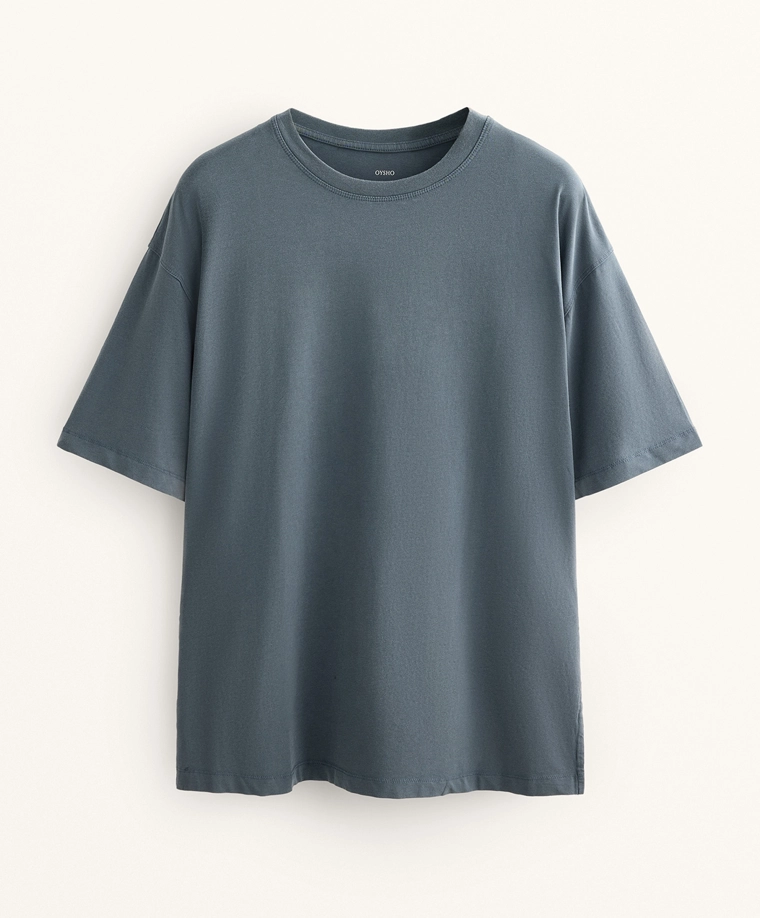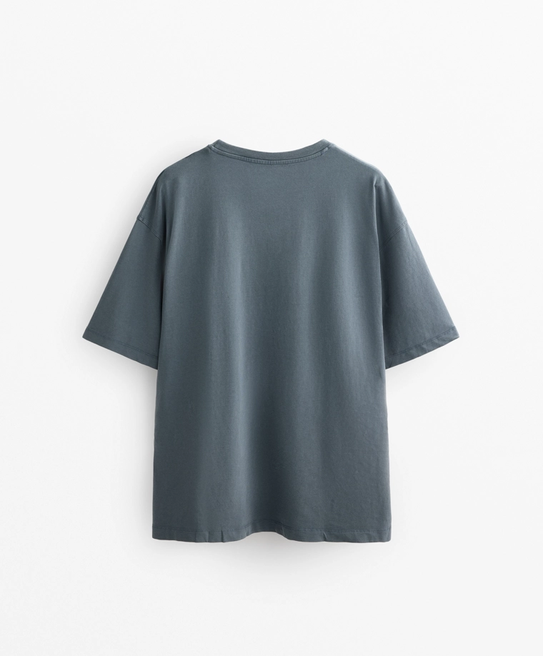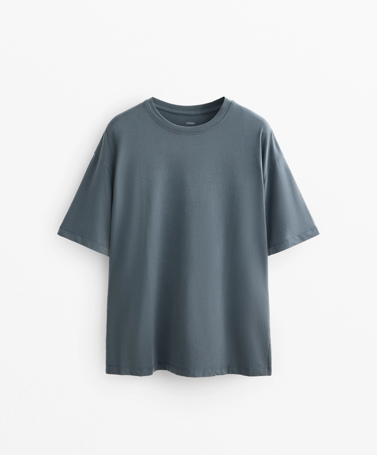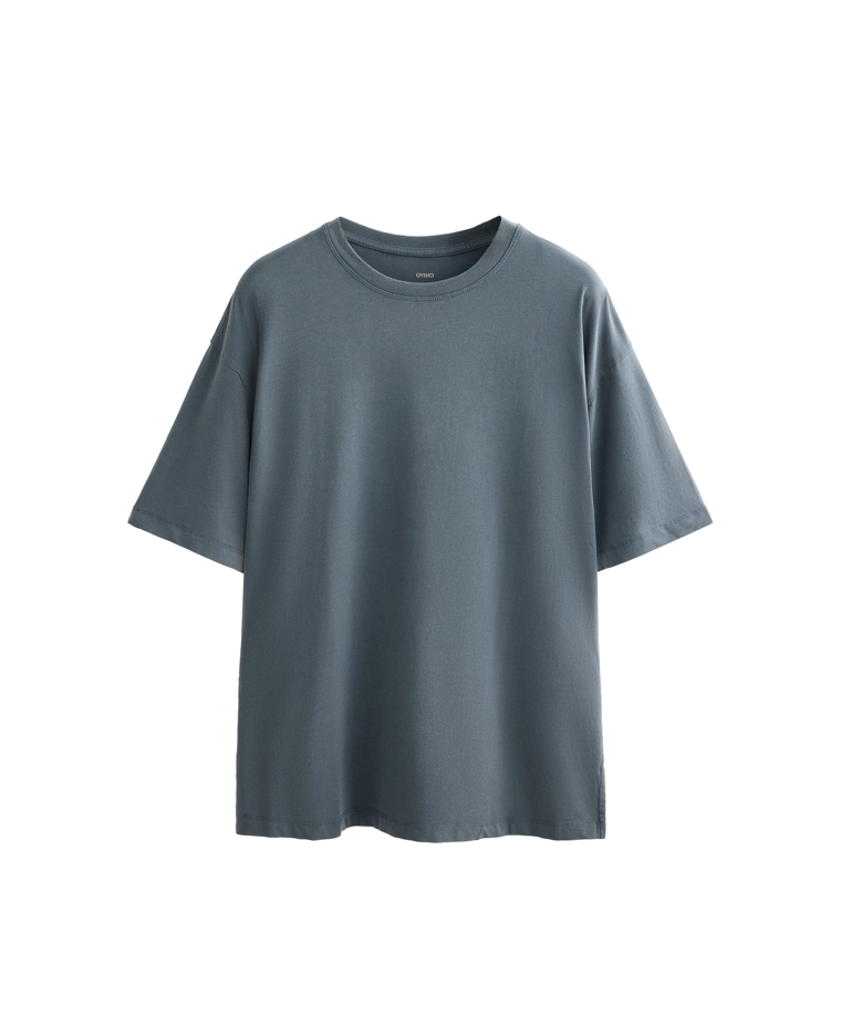 Boxy short-sleeve cotton blend T-shirt STEEL|0257/333