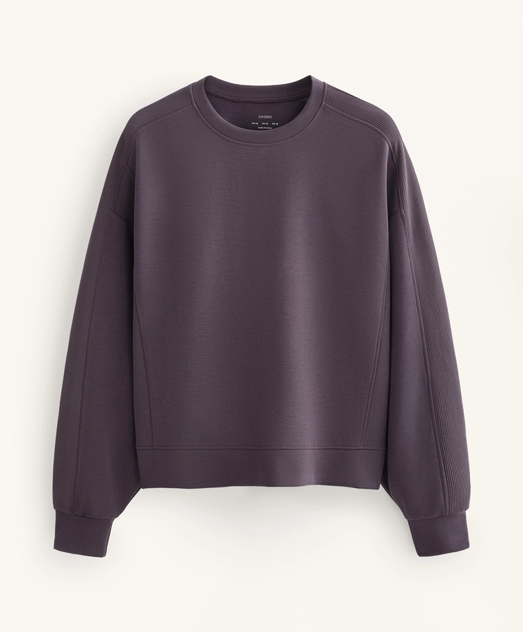 Brushed sweatshirt with rib detail and modal