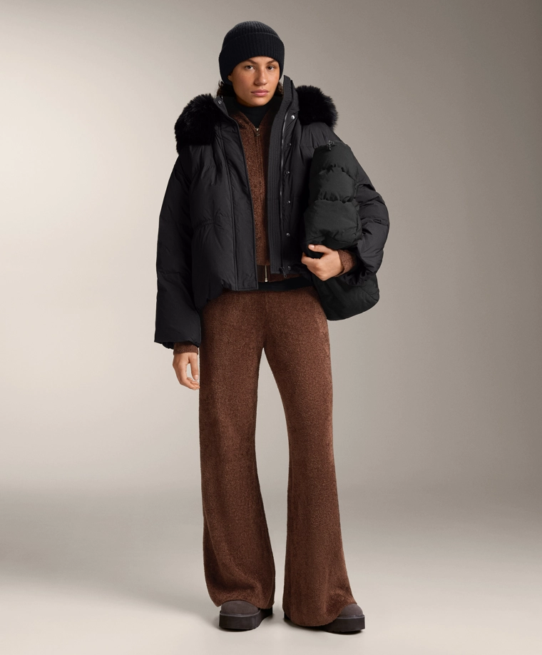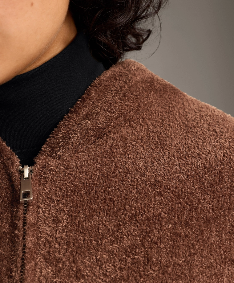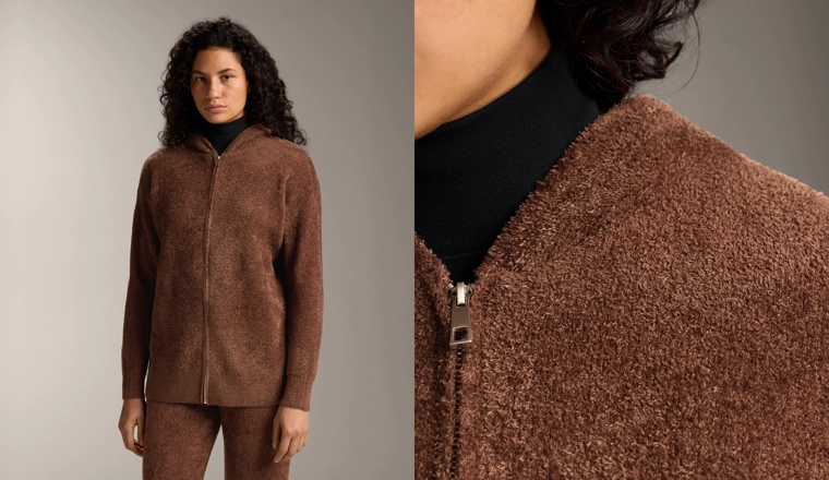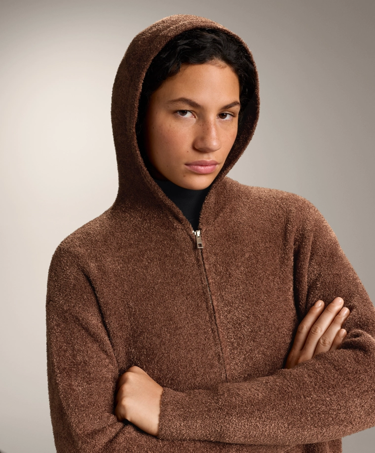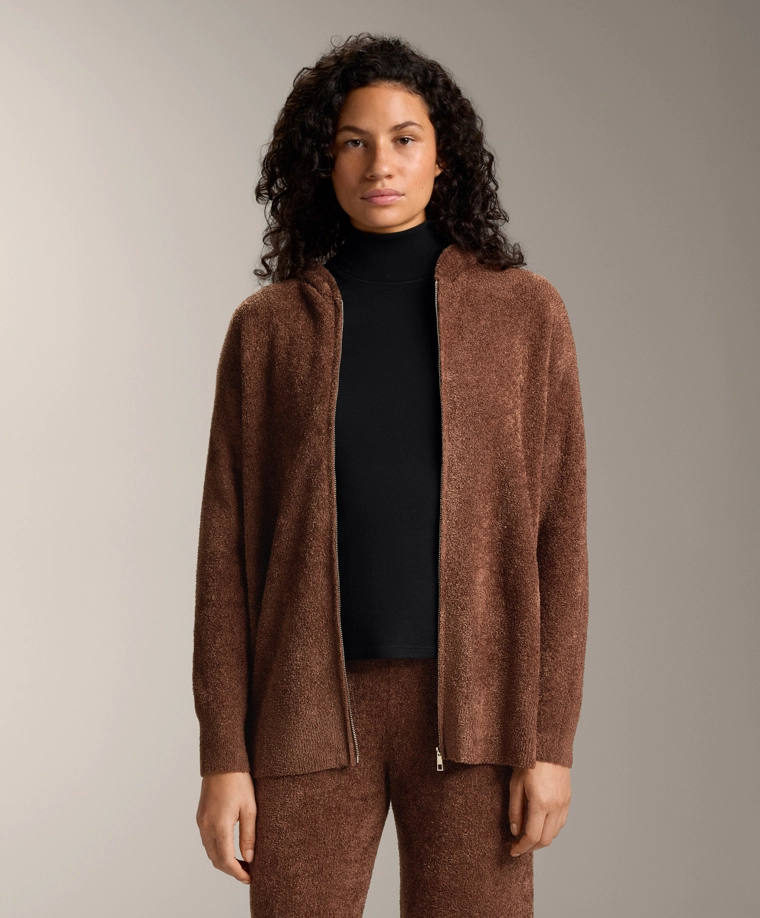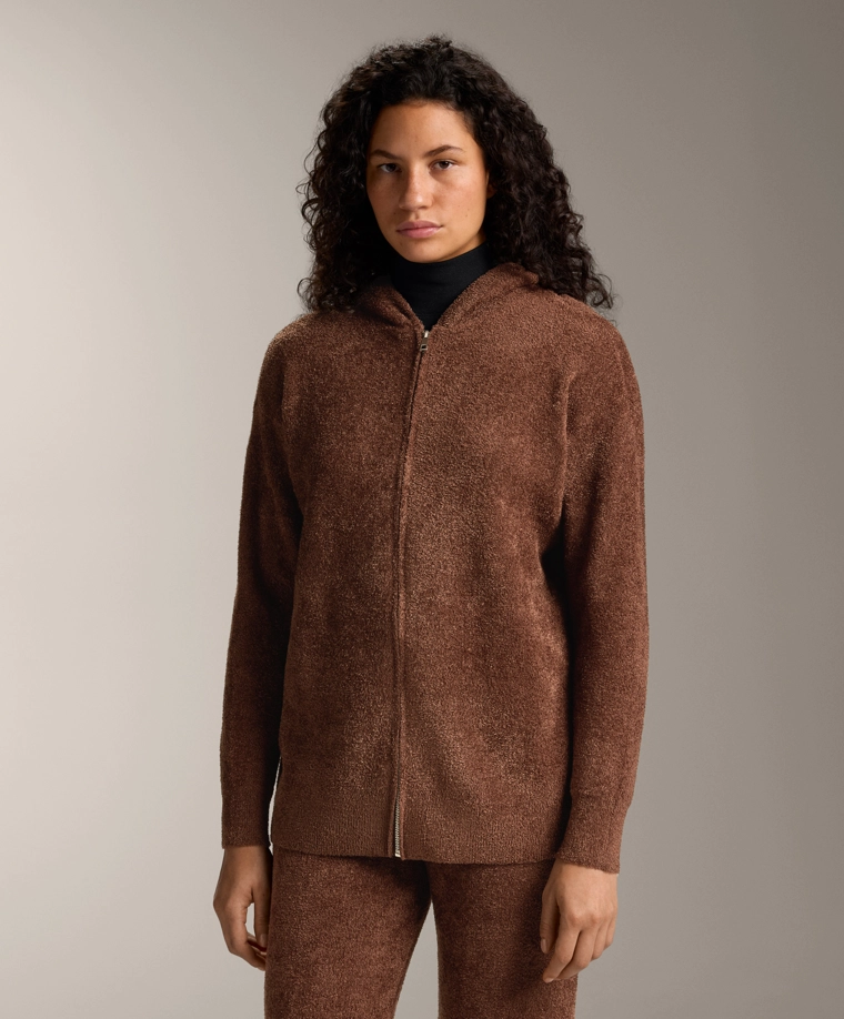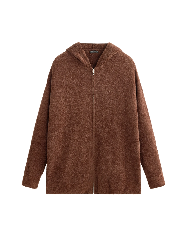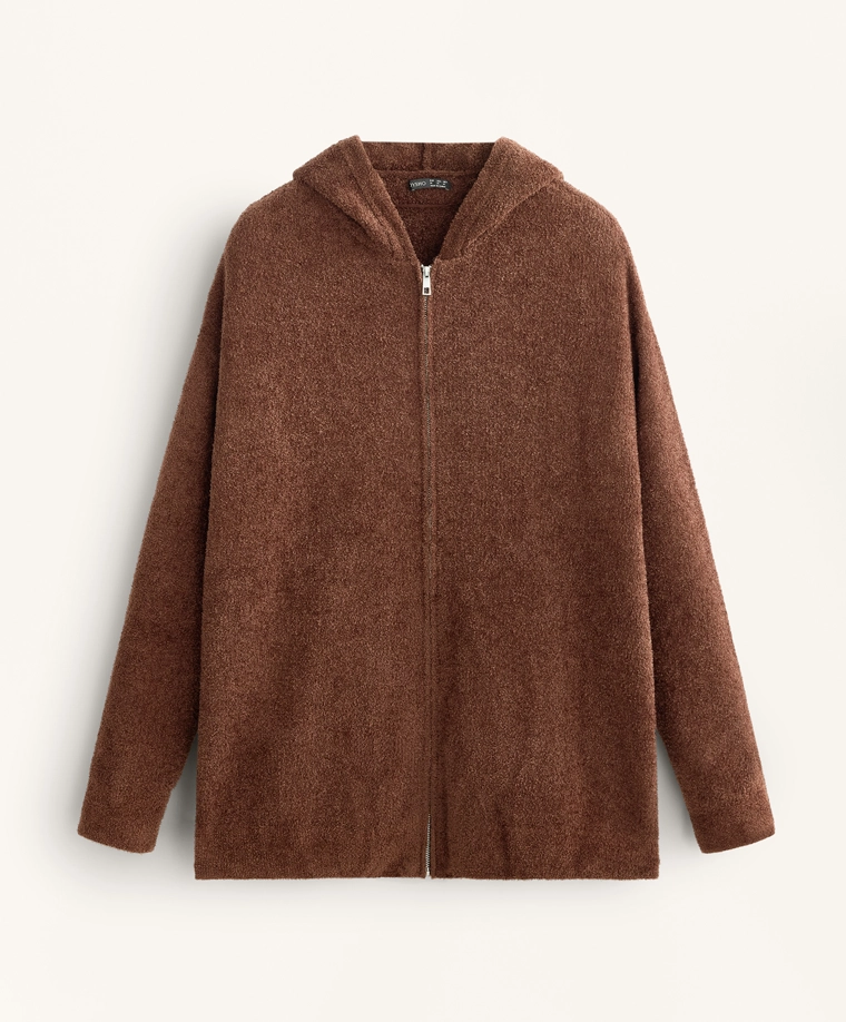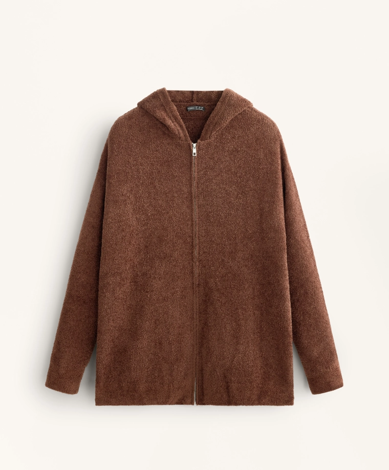 Chunky chenille hooded jacket COGNAC|1784/793