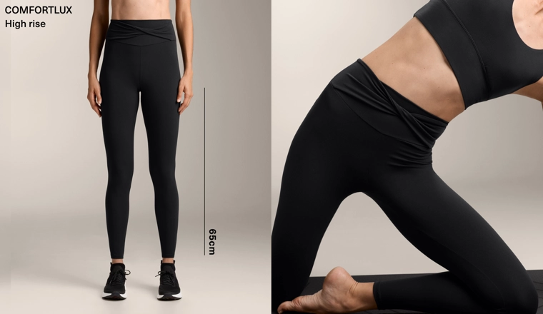 Comfortlux high-rise cross-over waist ankle-length leggings BLACK|3471/226