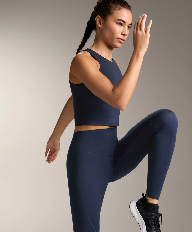 Compressive high rise ankle-length basic leggings BLUE|1222/254