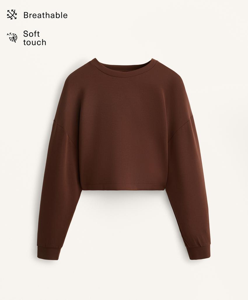 Crop sweatshirt with crossed back and soft-touch modal CHOCOLATE | 3782/791/717