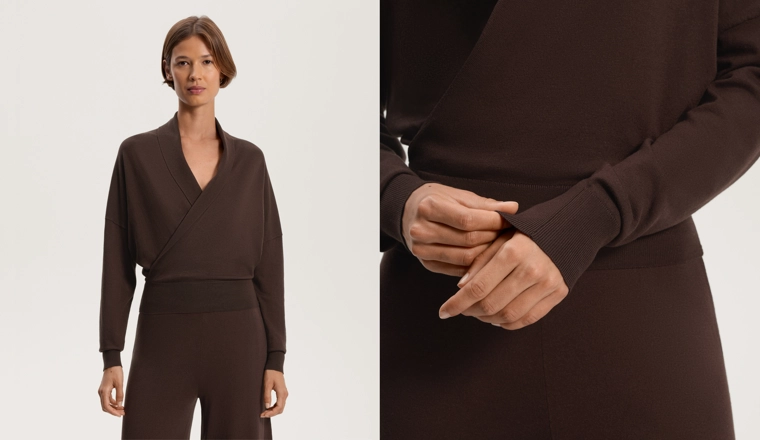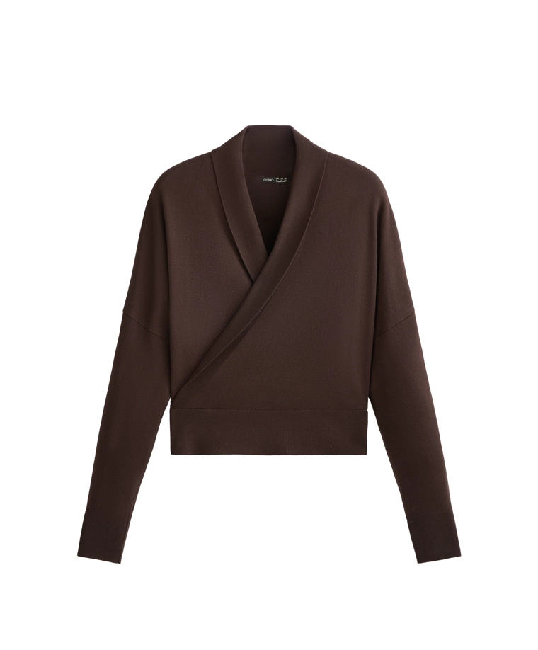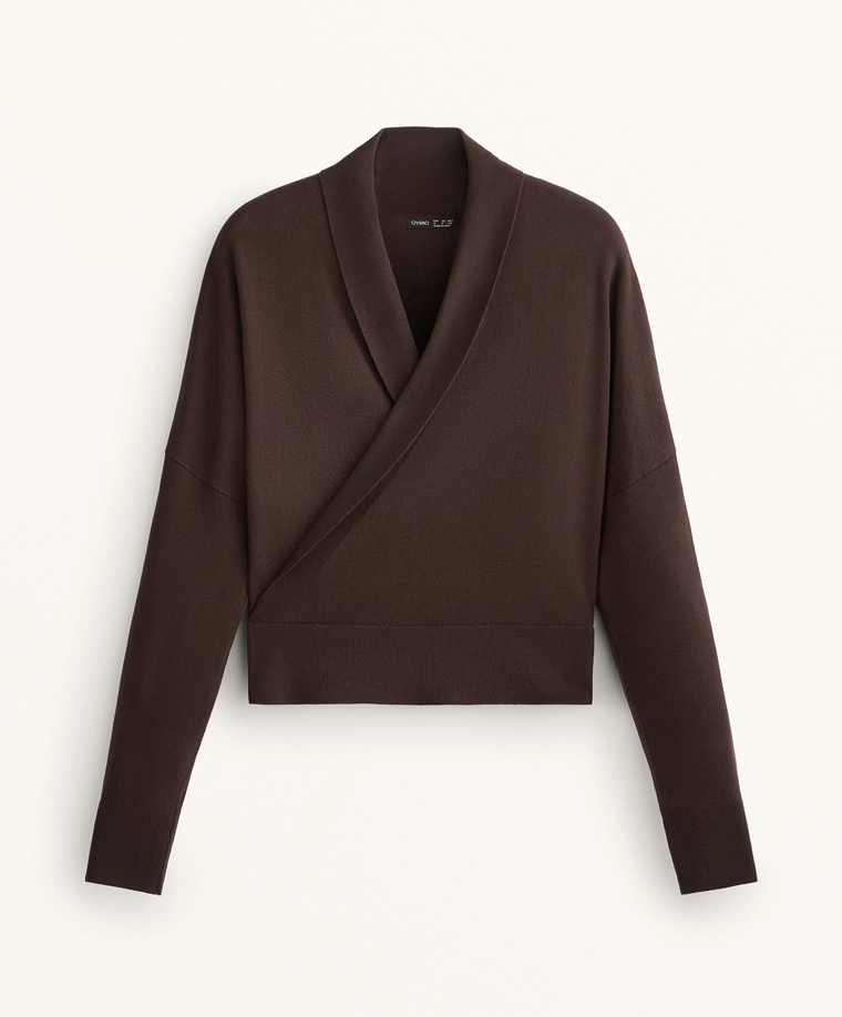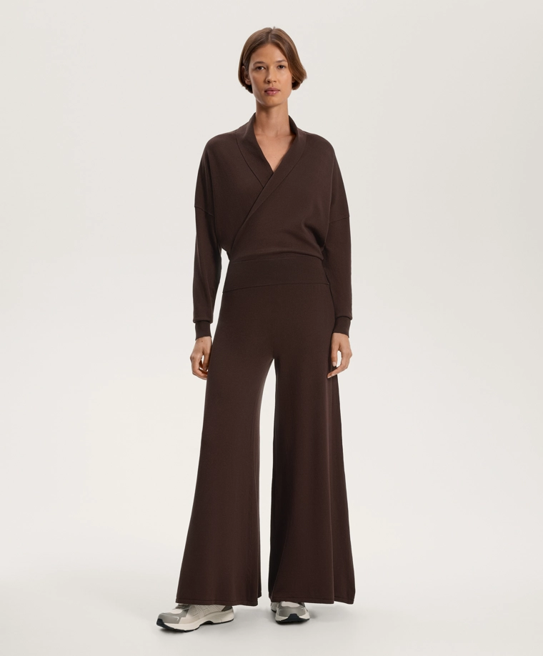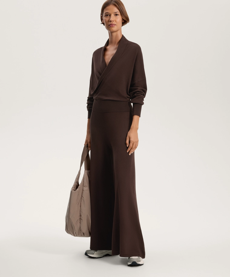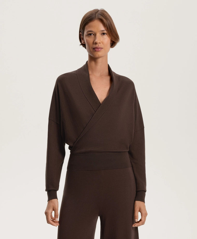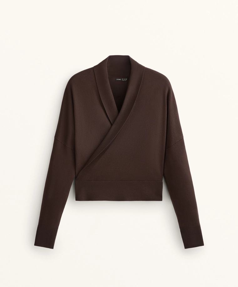 Crossover jumper with fitted waist CHOCOLATE|3168/695