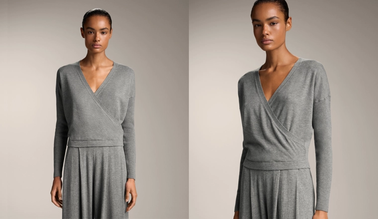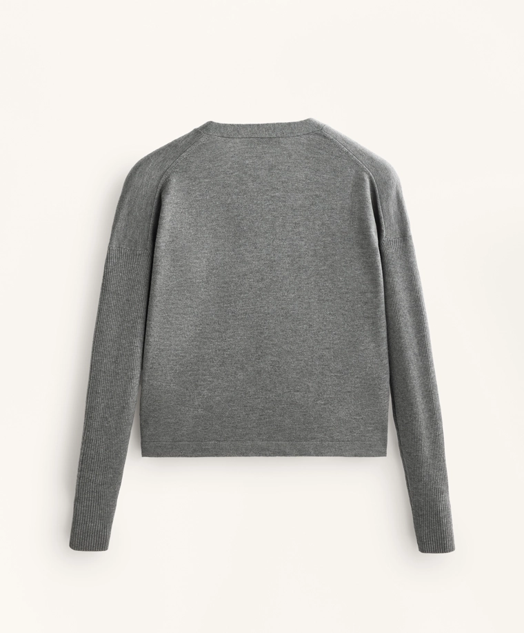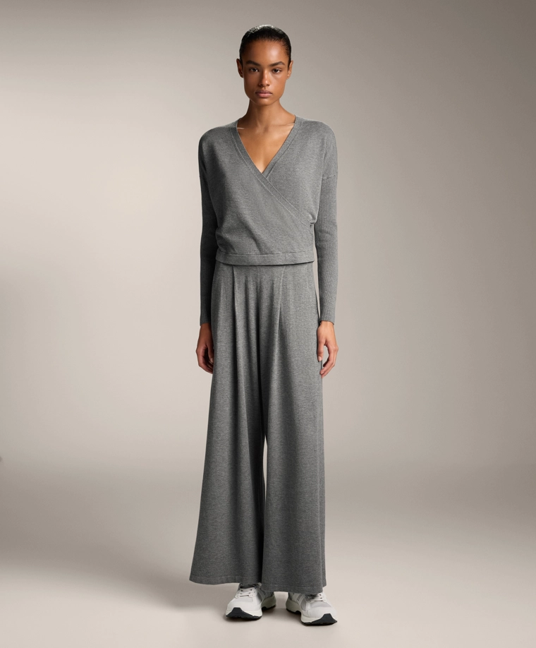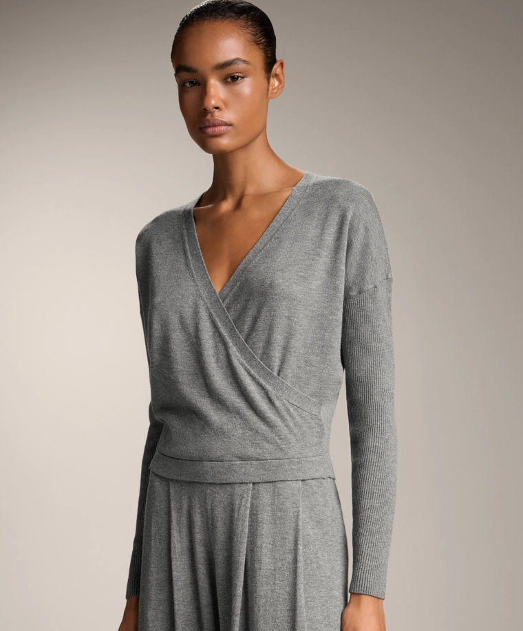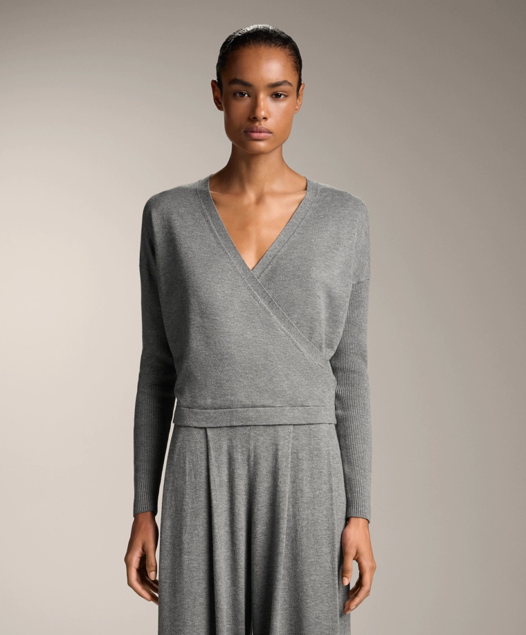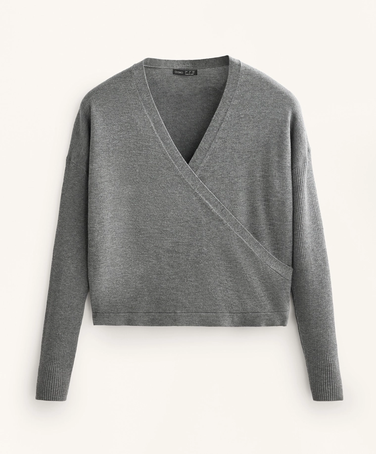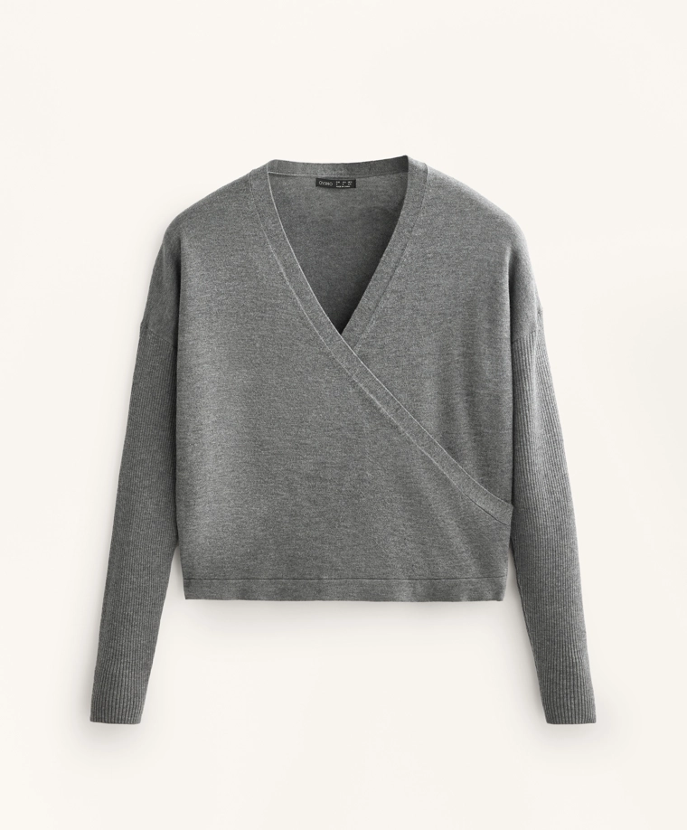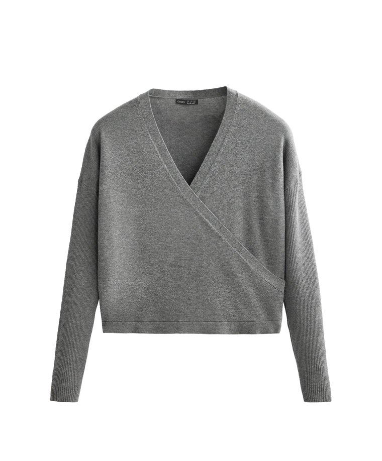 Crossover knit jumper with rib sleeves GREY MELANGE|3661/770