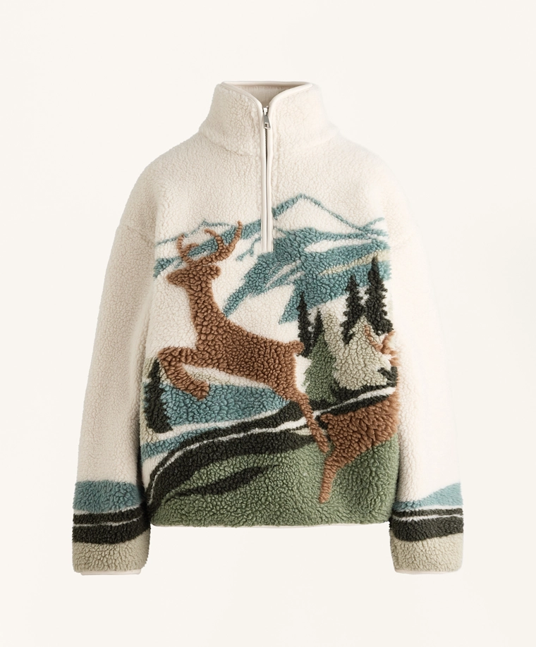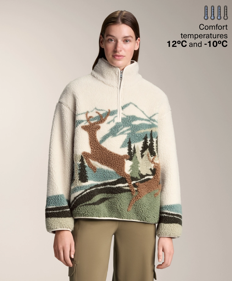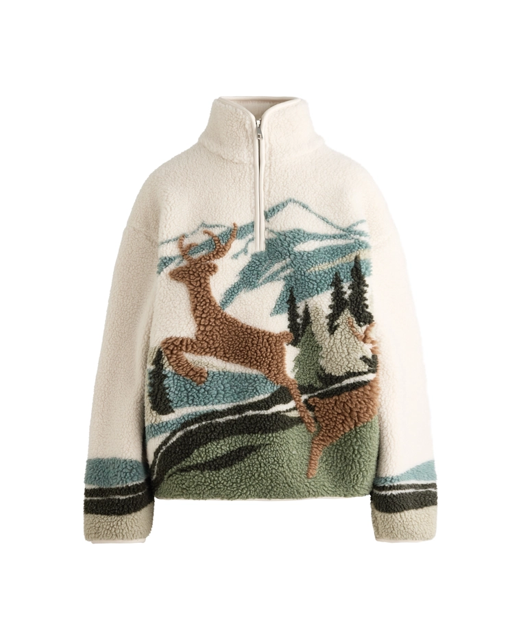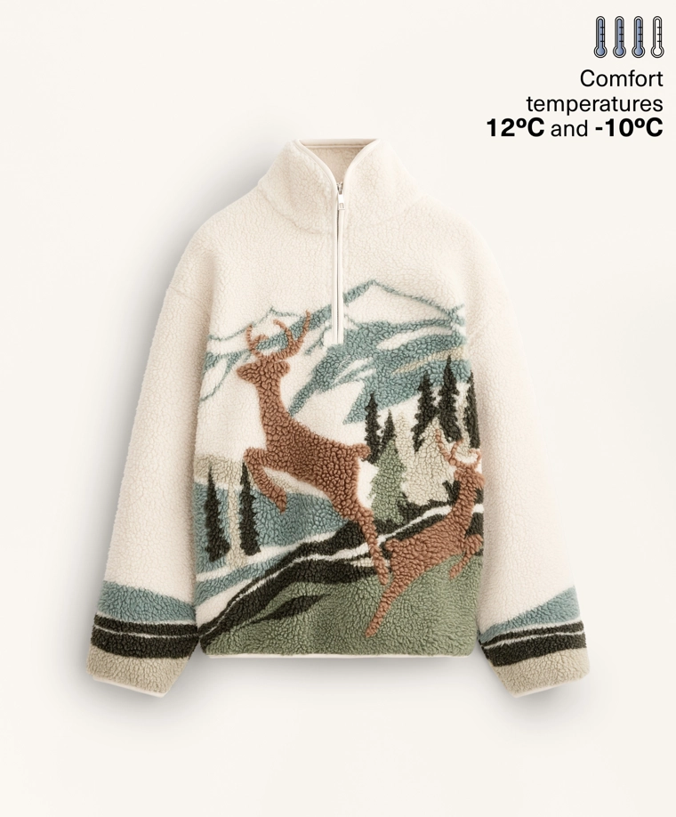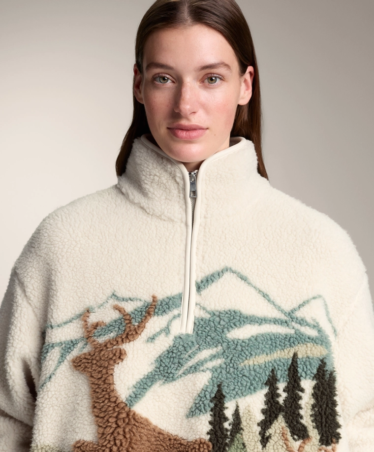 Deer landscape faux-shearling sweatshirt ECRU | 3804/840/712