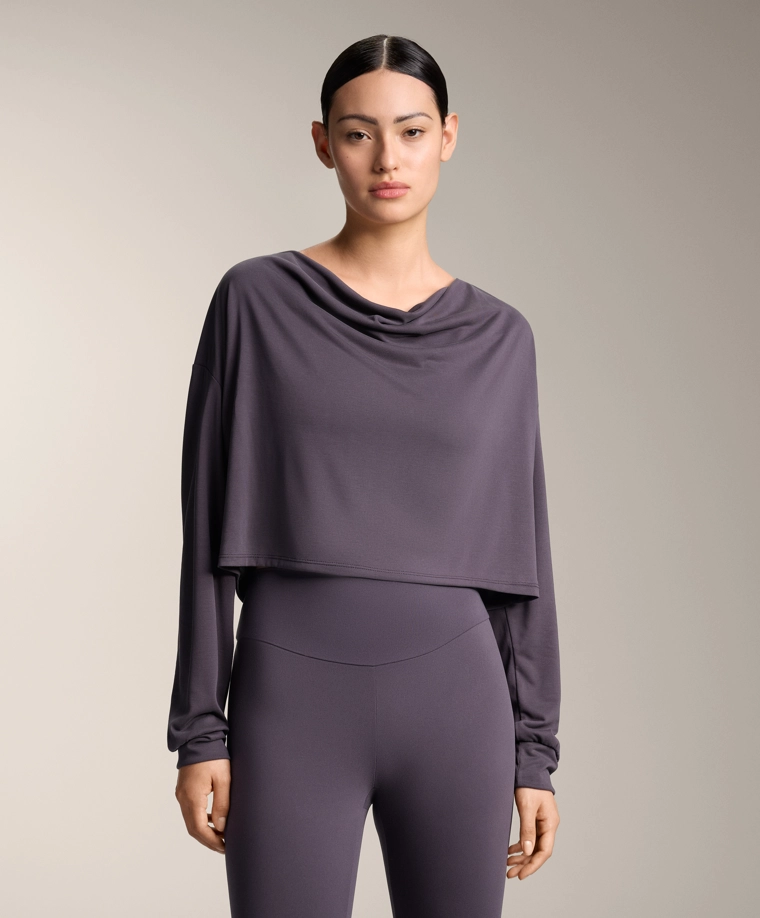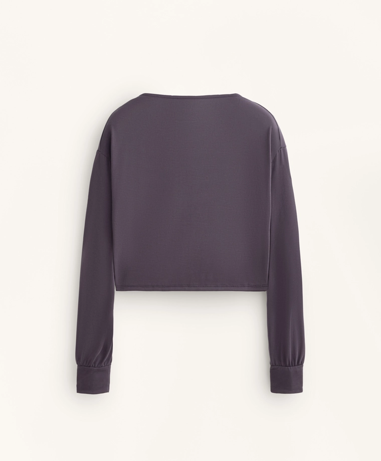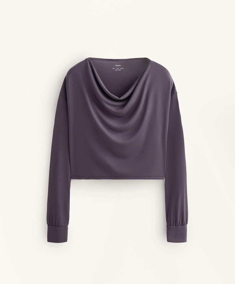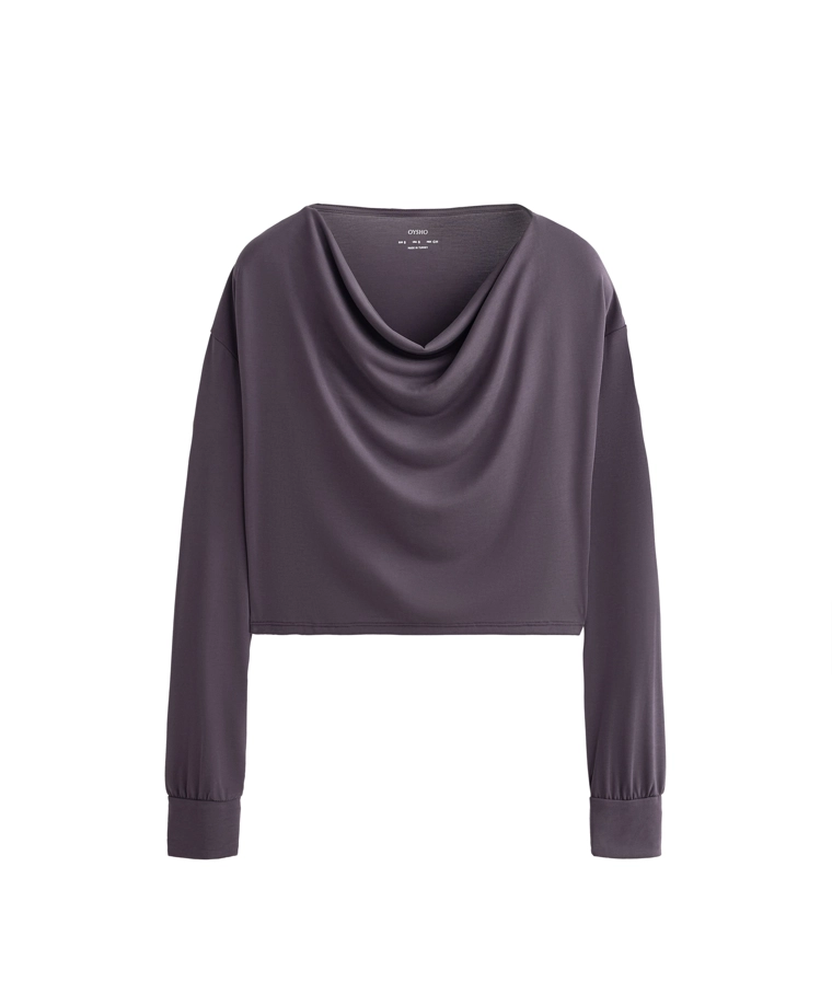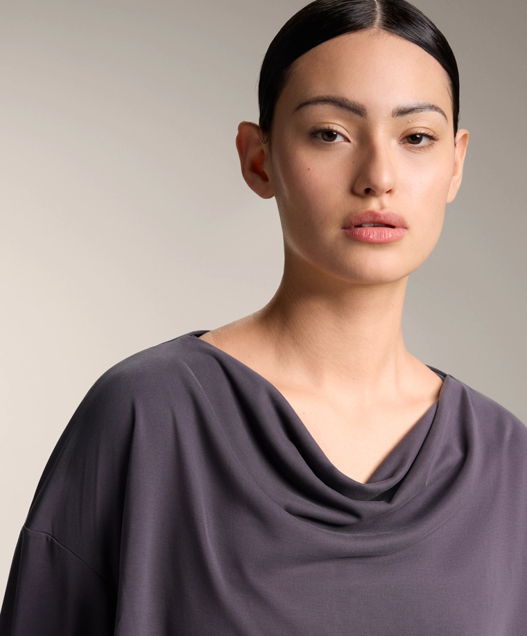 Draped neck modal T-shirt DARK AUBERGINE|0408/314