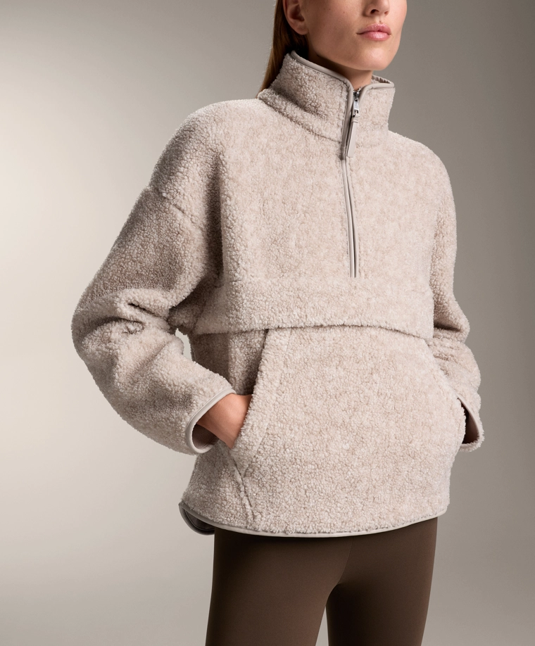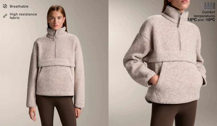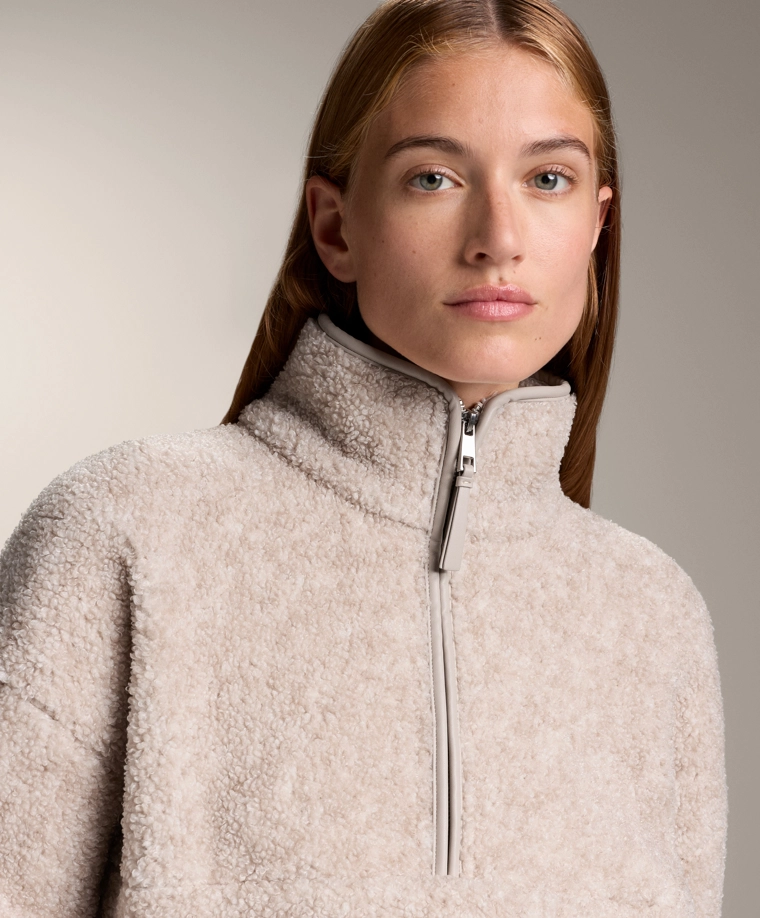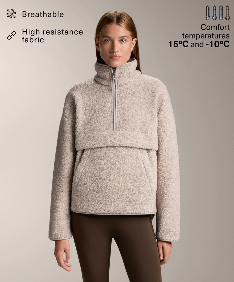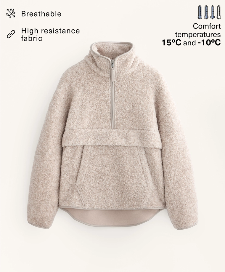 Faux-shearling sweatshirt with front pocket PALE ASPHALT|3875/671