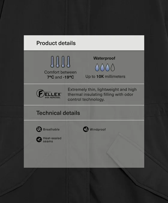 Плащ с водонепроницаемостью 10 000 мм и утеплителем FELLEX® AEROGEL