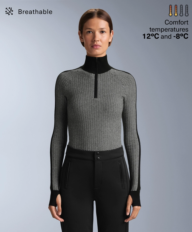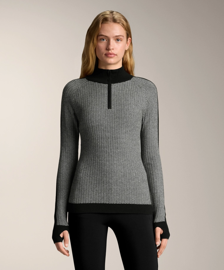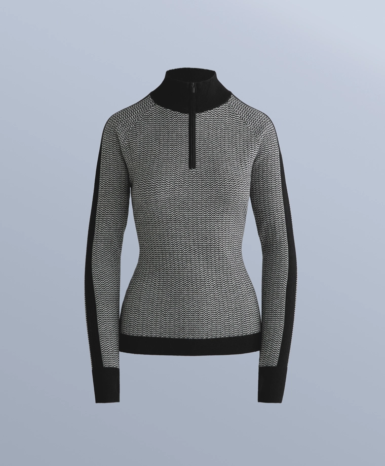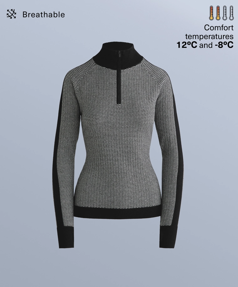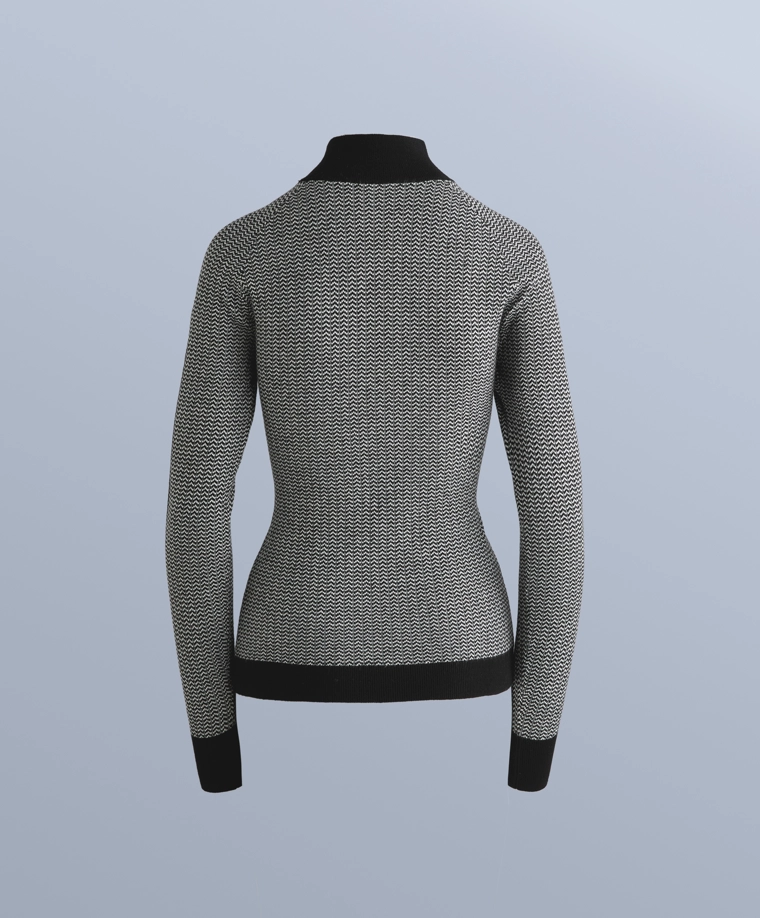 Herringbone jacquard knit thermal base layer top BLACK|3836/795
