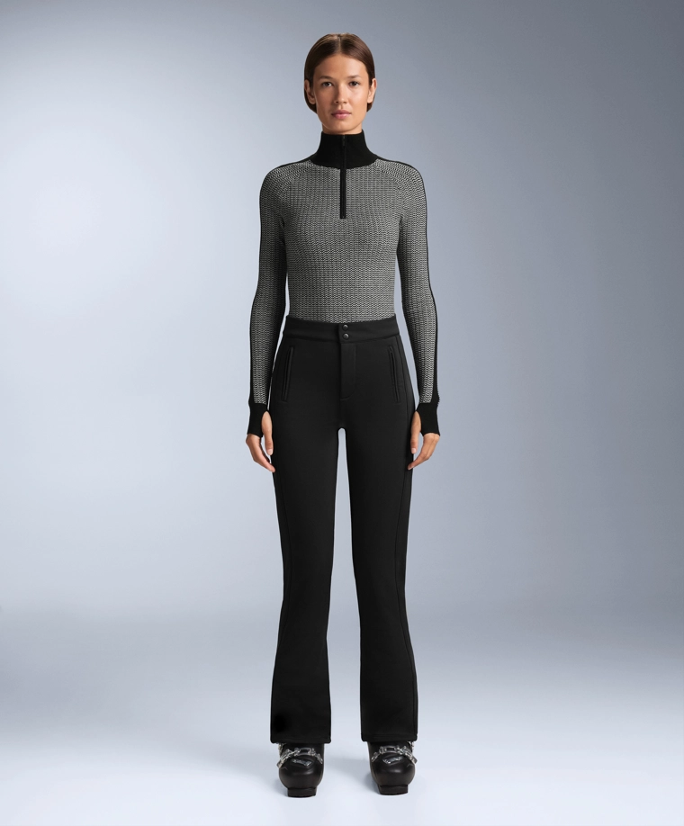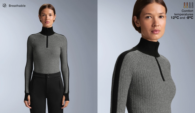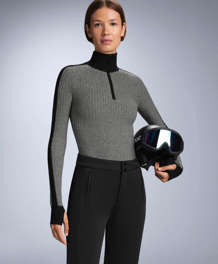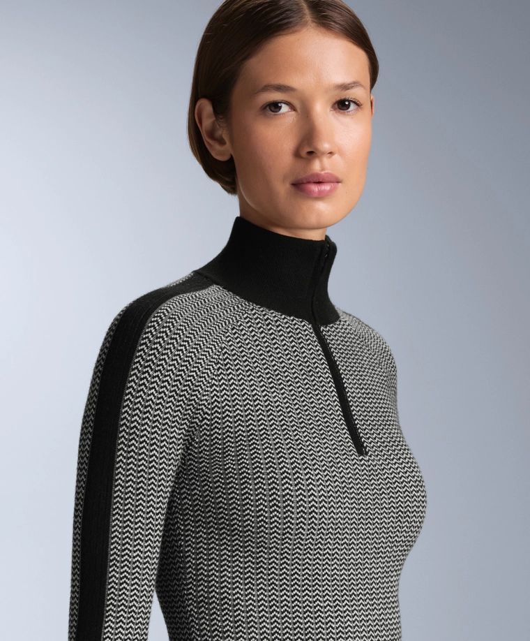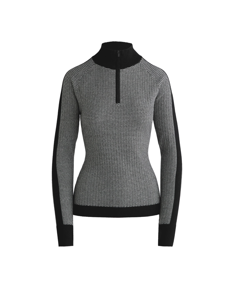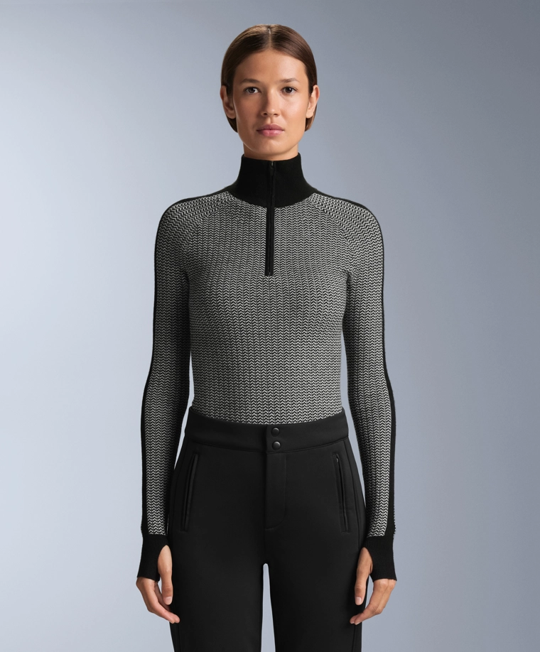 Herringbone jacquard knit thermal base layer top BLACK|3836/795