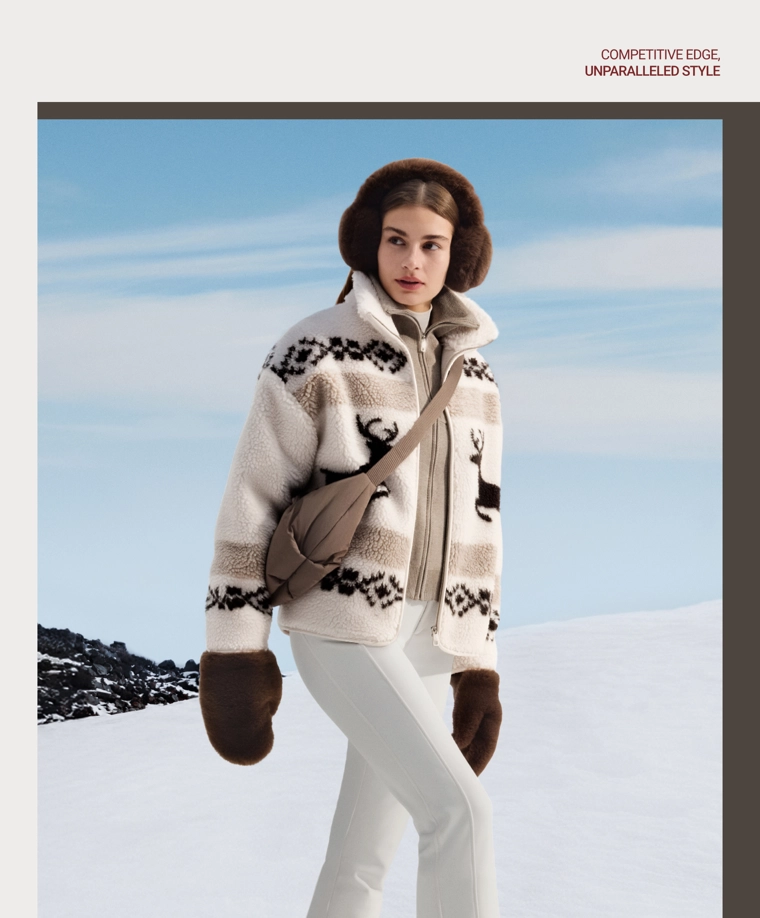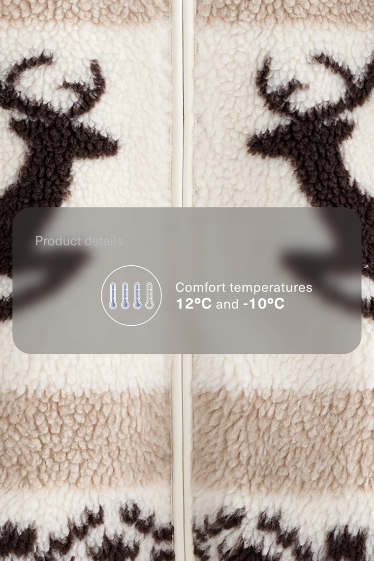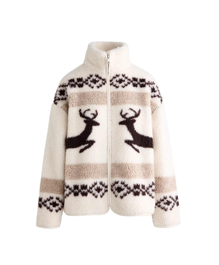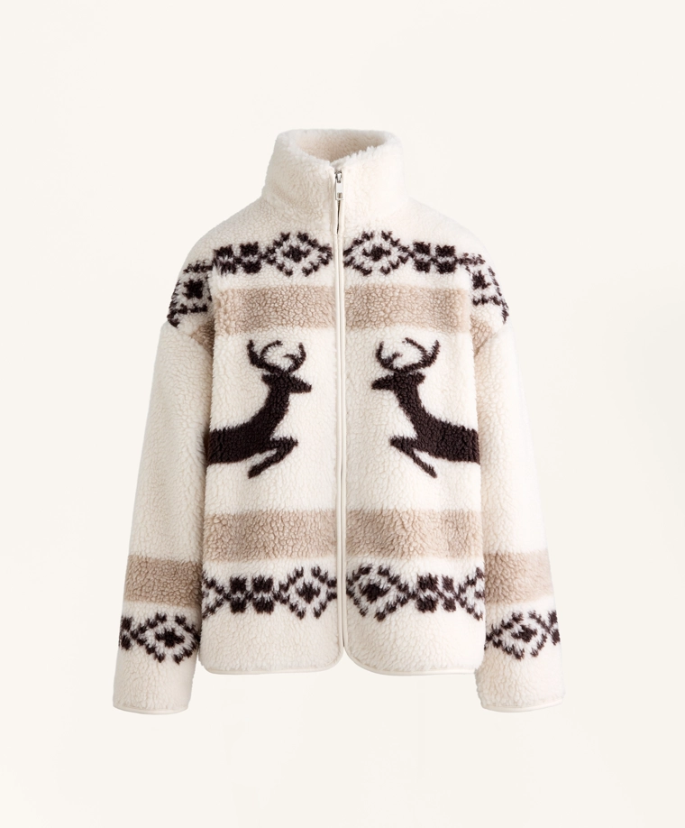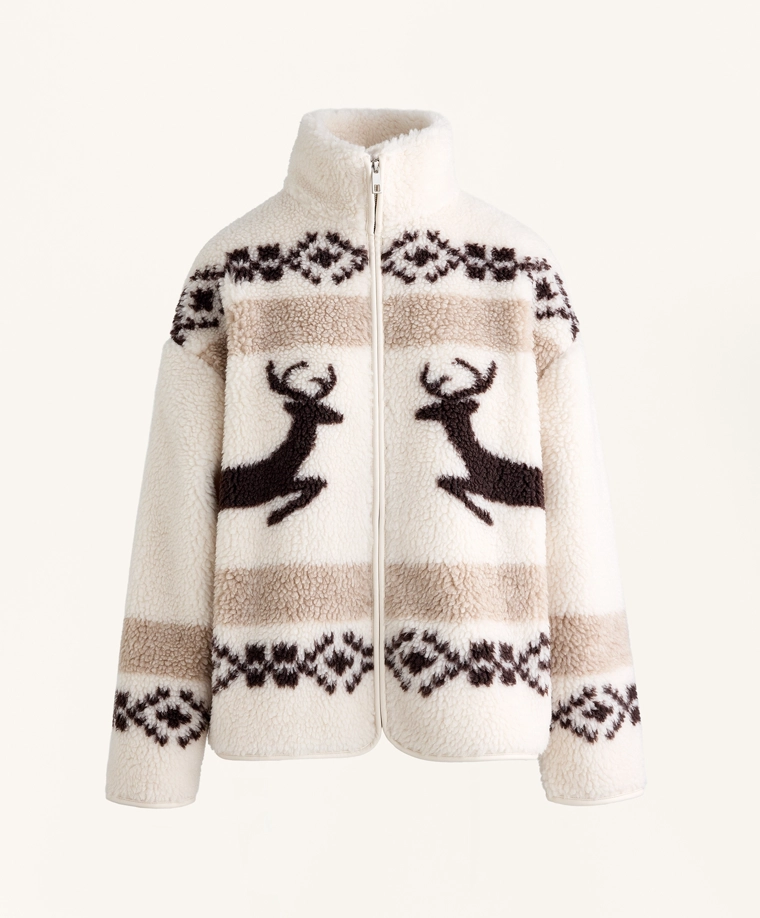 High-neck deer faux-shearling jacket.