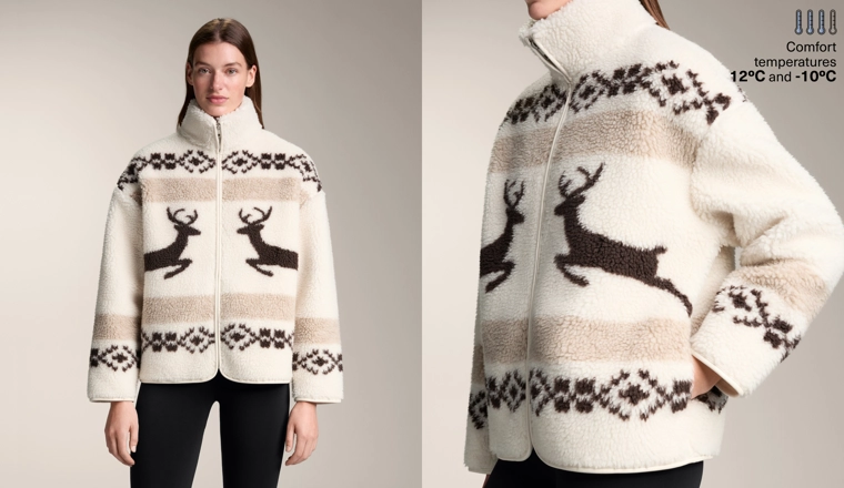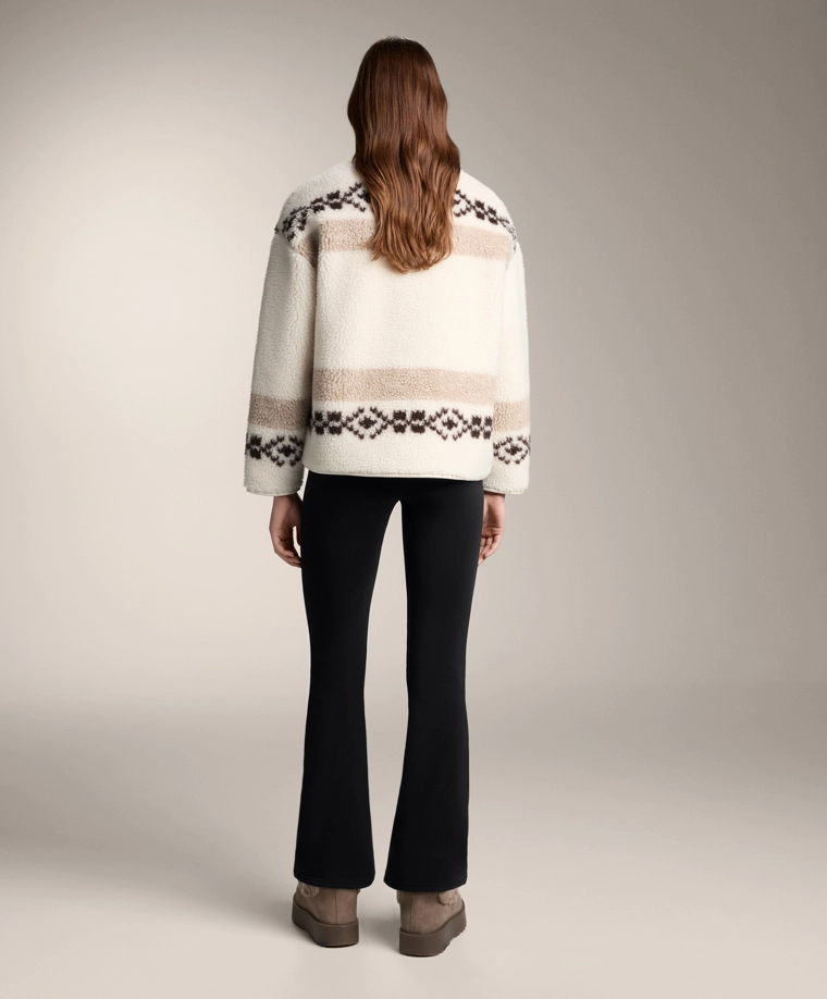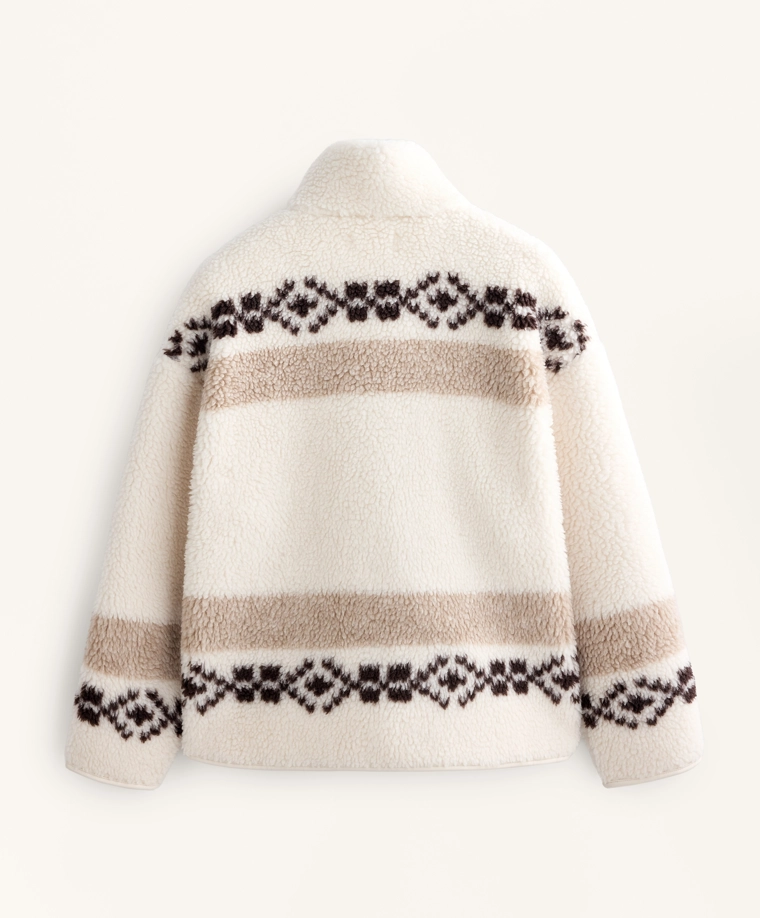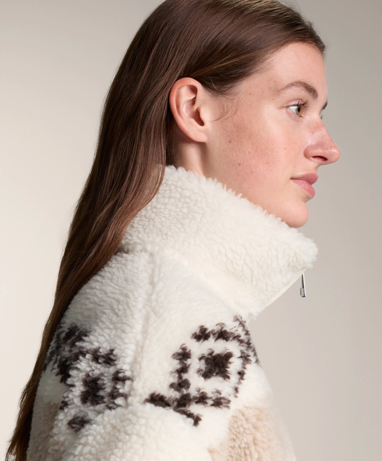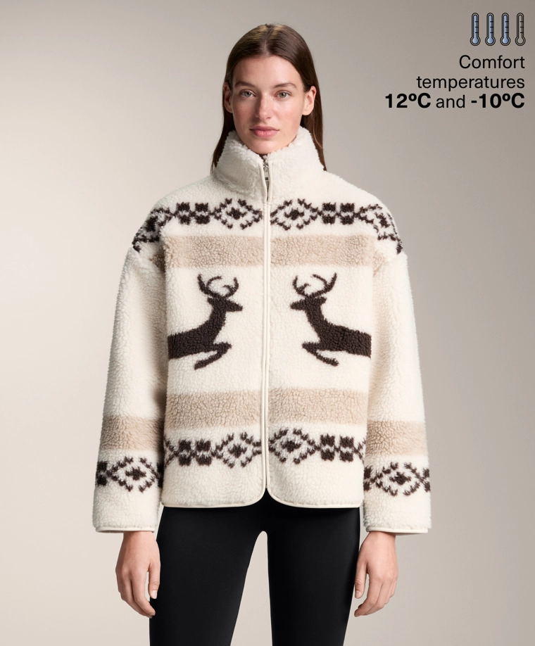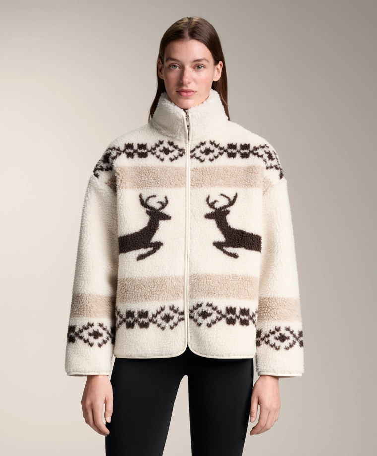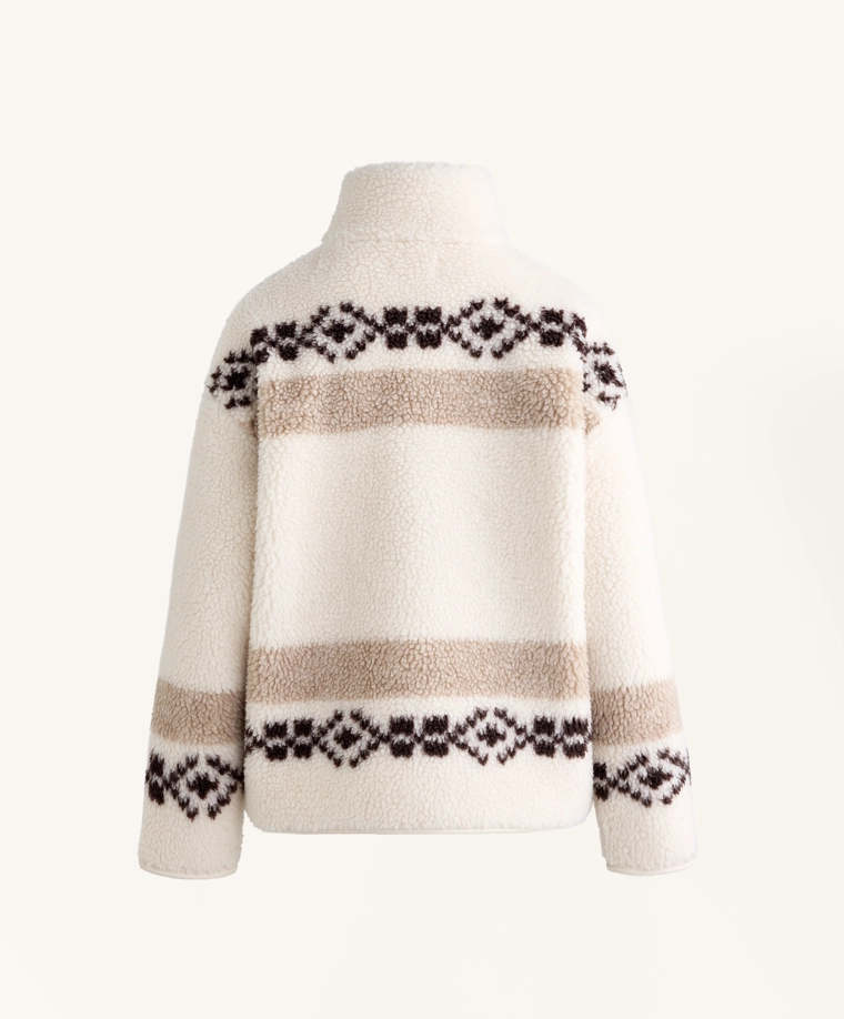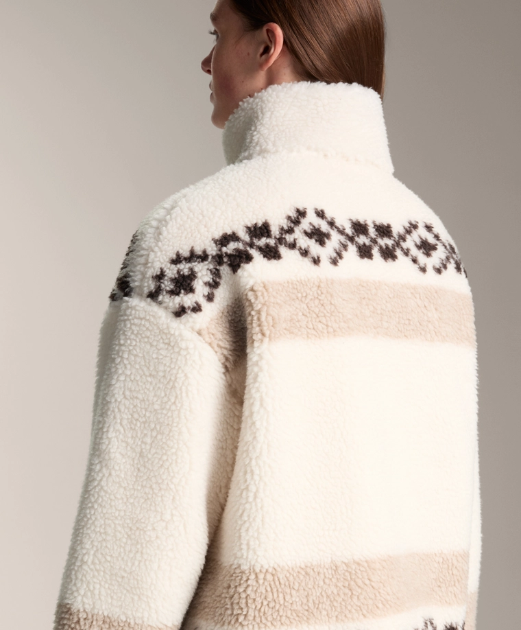 High-neck deer faux-shearling jacket. ECRU|3912/840