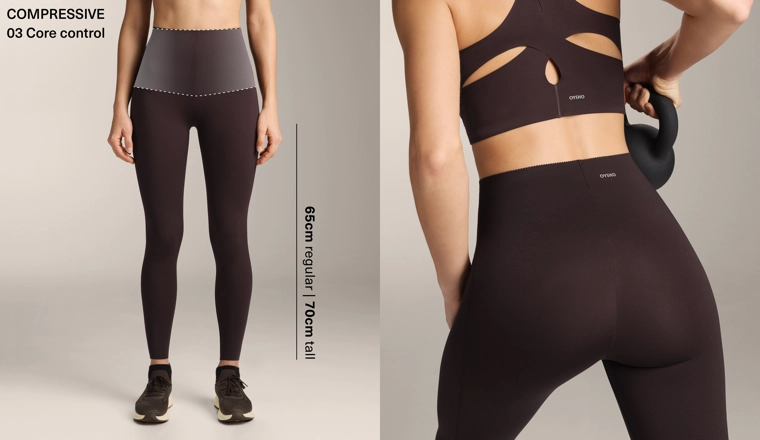 High-rise Compressive core control ankle-length leggings WHISKY|1220/254