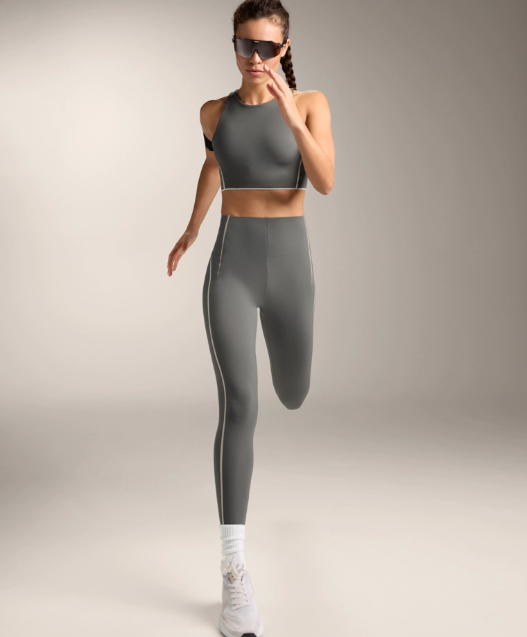 High-rise Compressive core-control retro 65cm ankle-length leggings STEEL GREY|3775/254