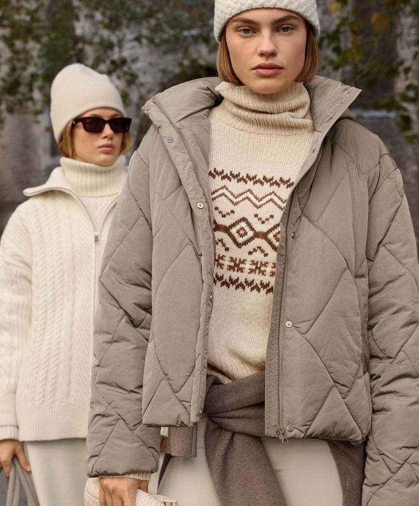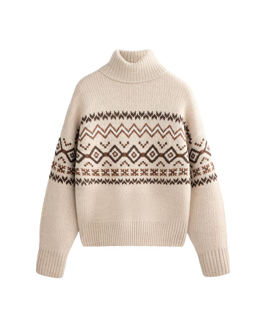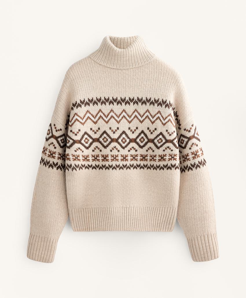 Jacquard knit high-neck jumper 10% wool STONE | 3668/772/806