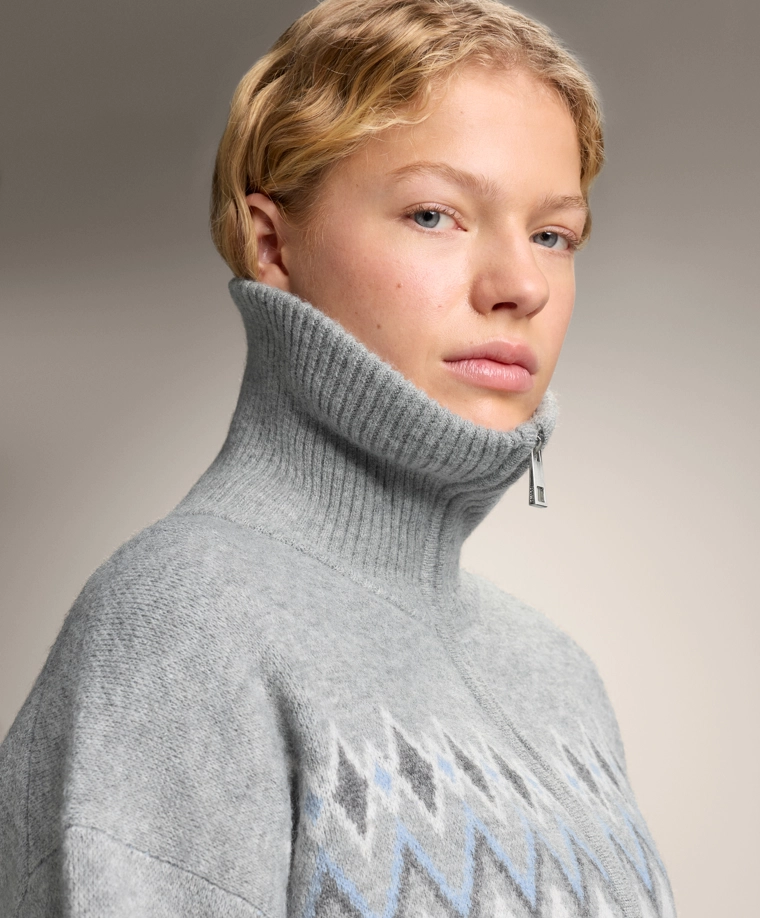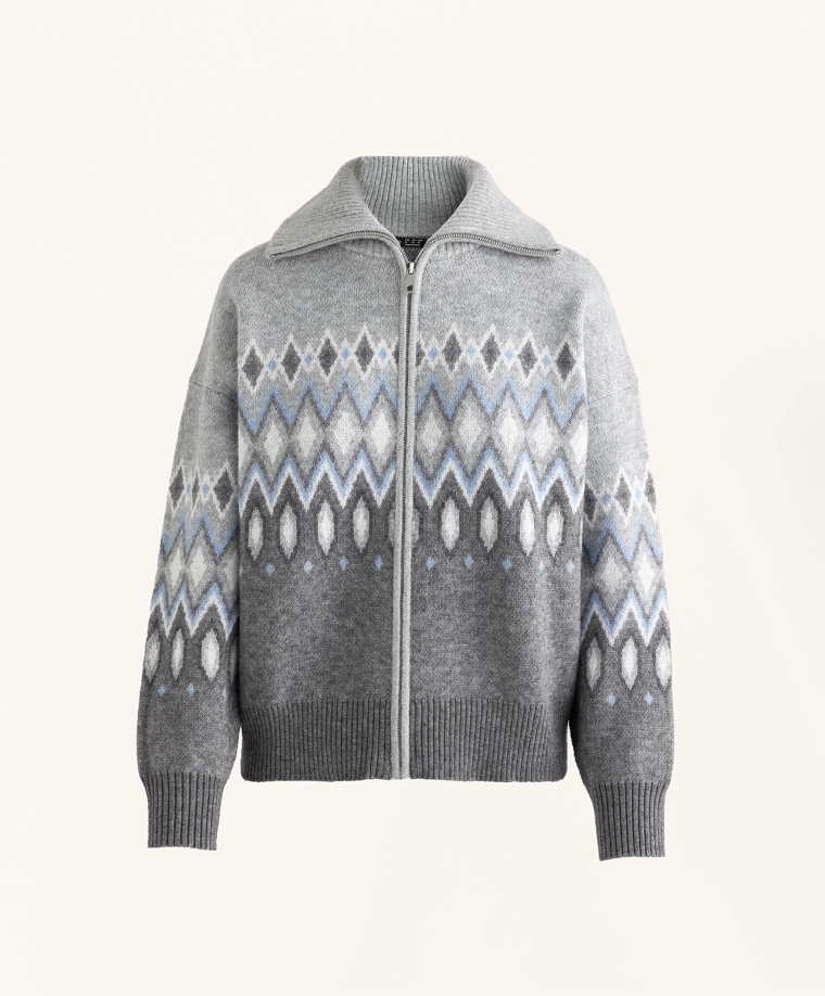 Jacquard print knit jacket with 10% wool GREY MELANGE|1662/772