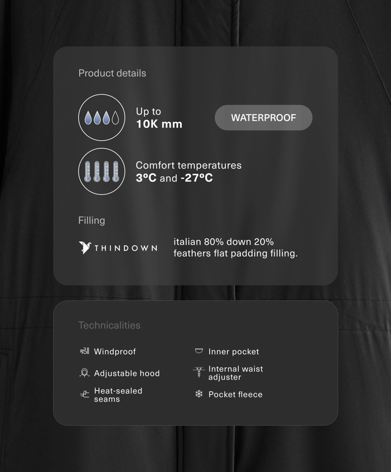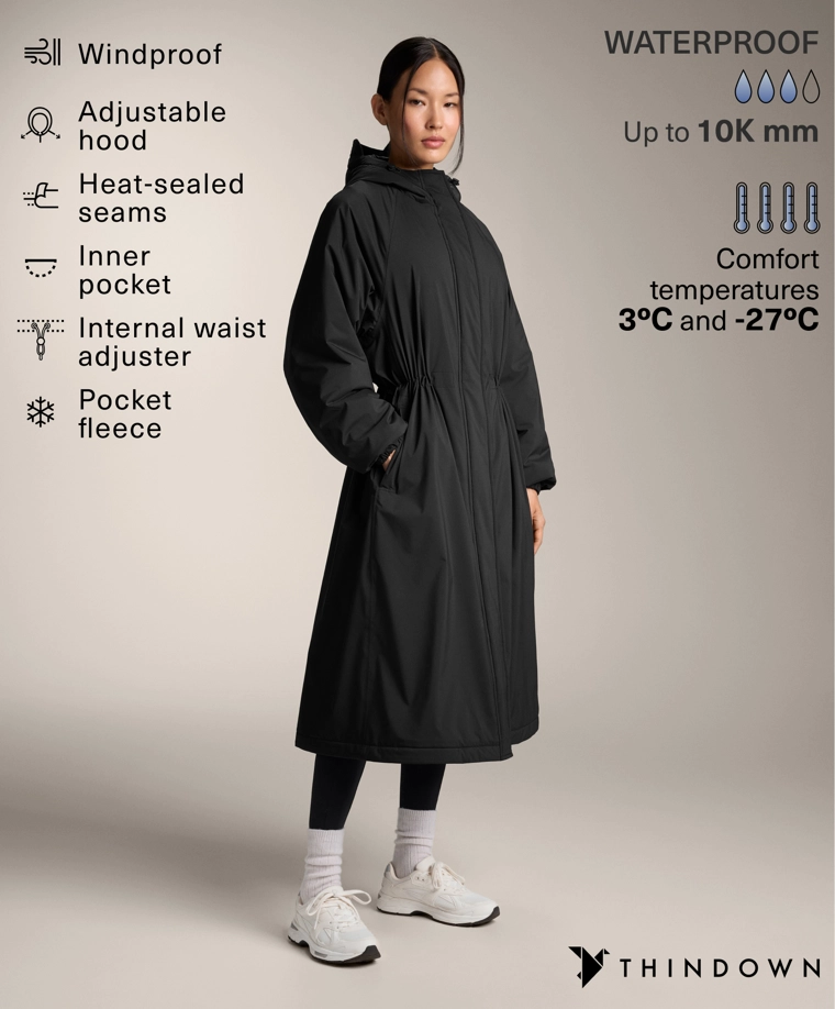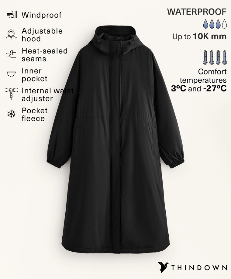 10k Thindown® waterproof extra-light long padded jacket BLACK|3041/945