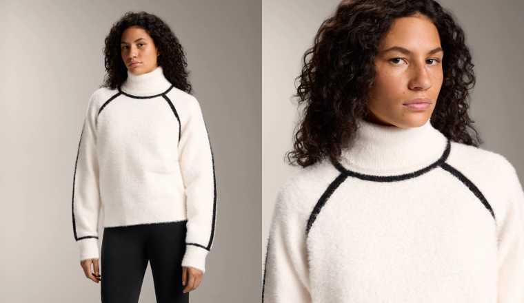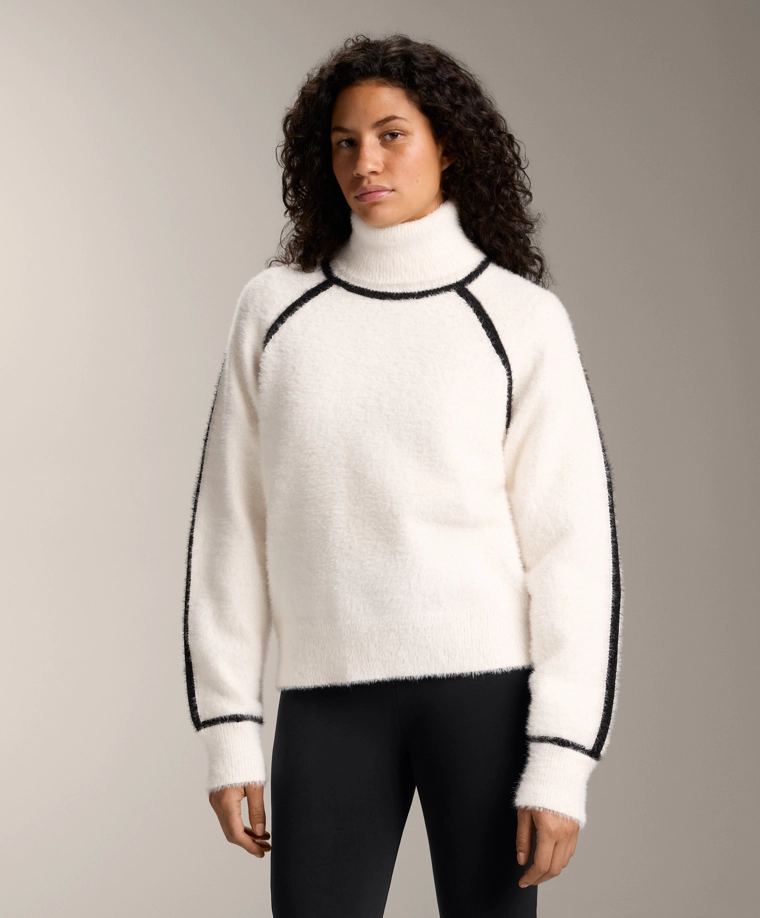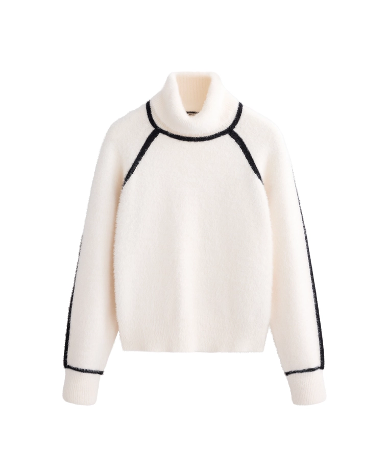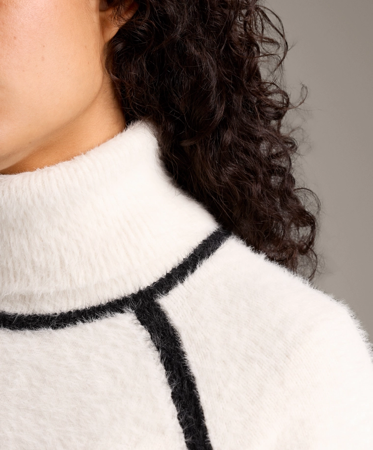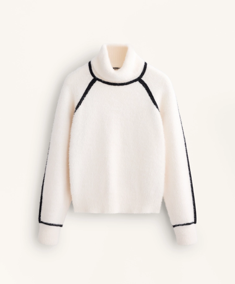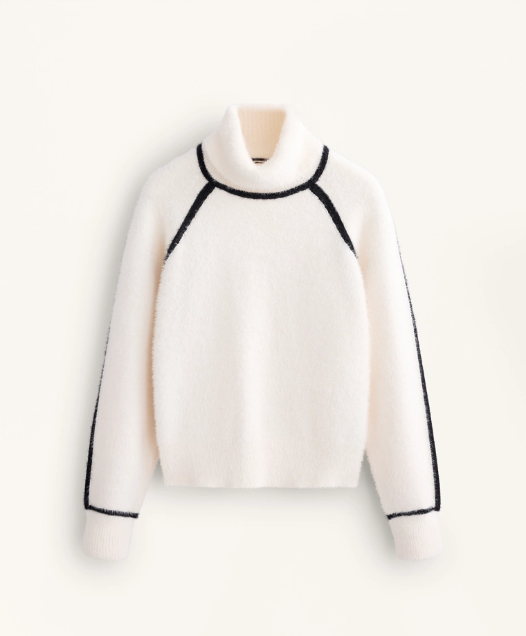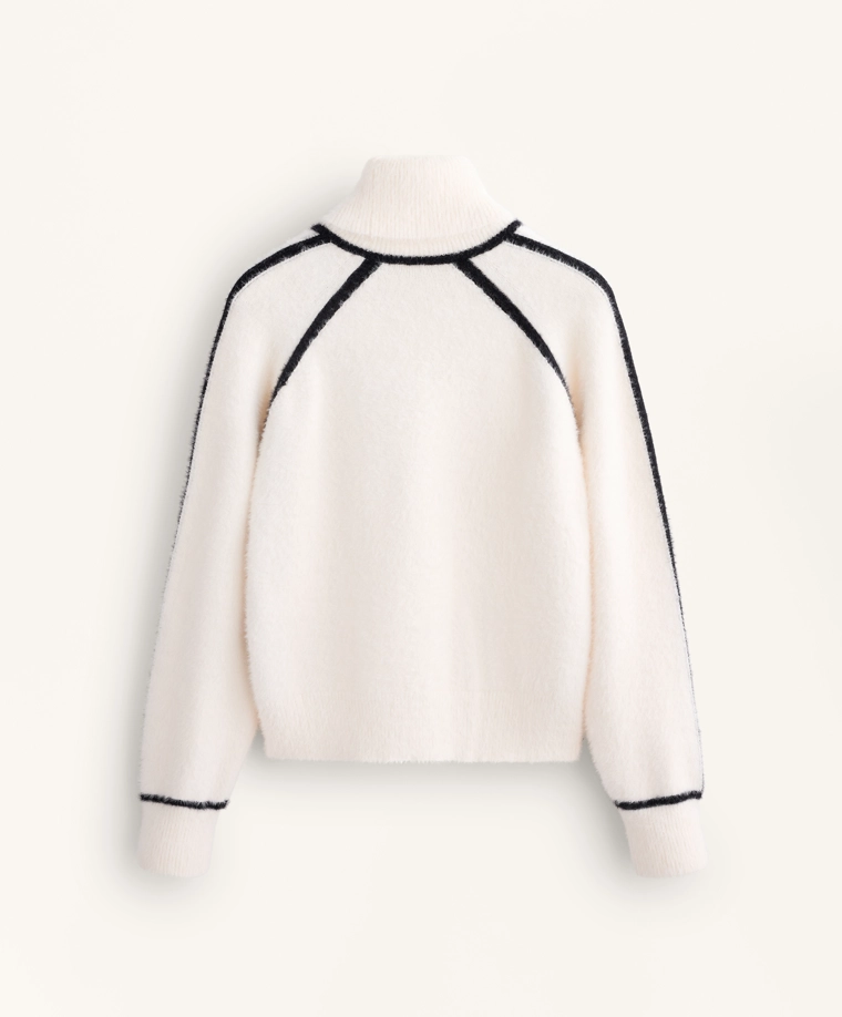 Knit jumper with piping and raised neck ECRU | 3841/772/712