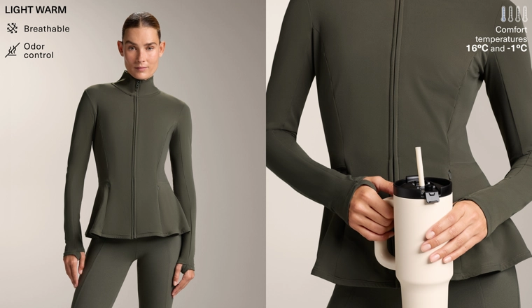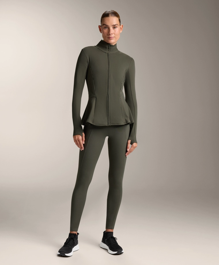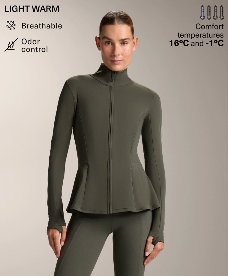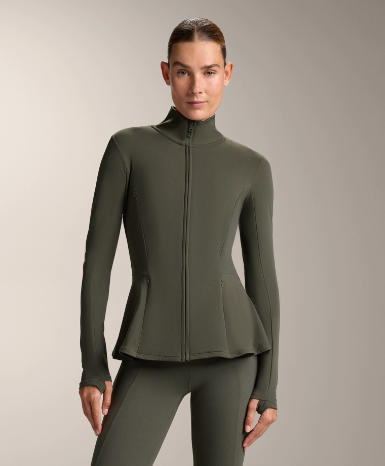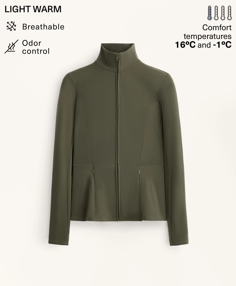 Light warm peplum technical jacket DARK KHAKI|3483/332