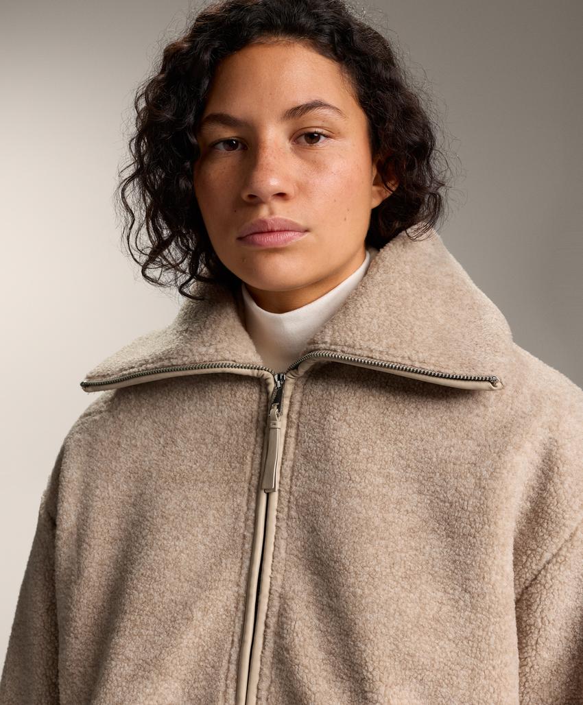 Long faux-shearling jacket SAND MELANGE | 3904/781/754