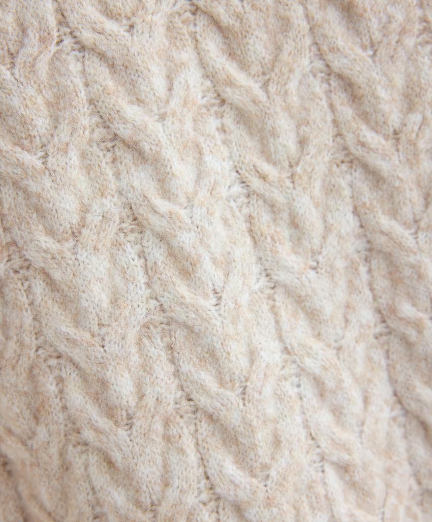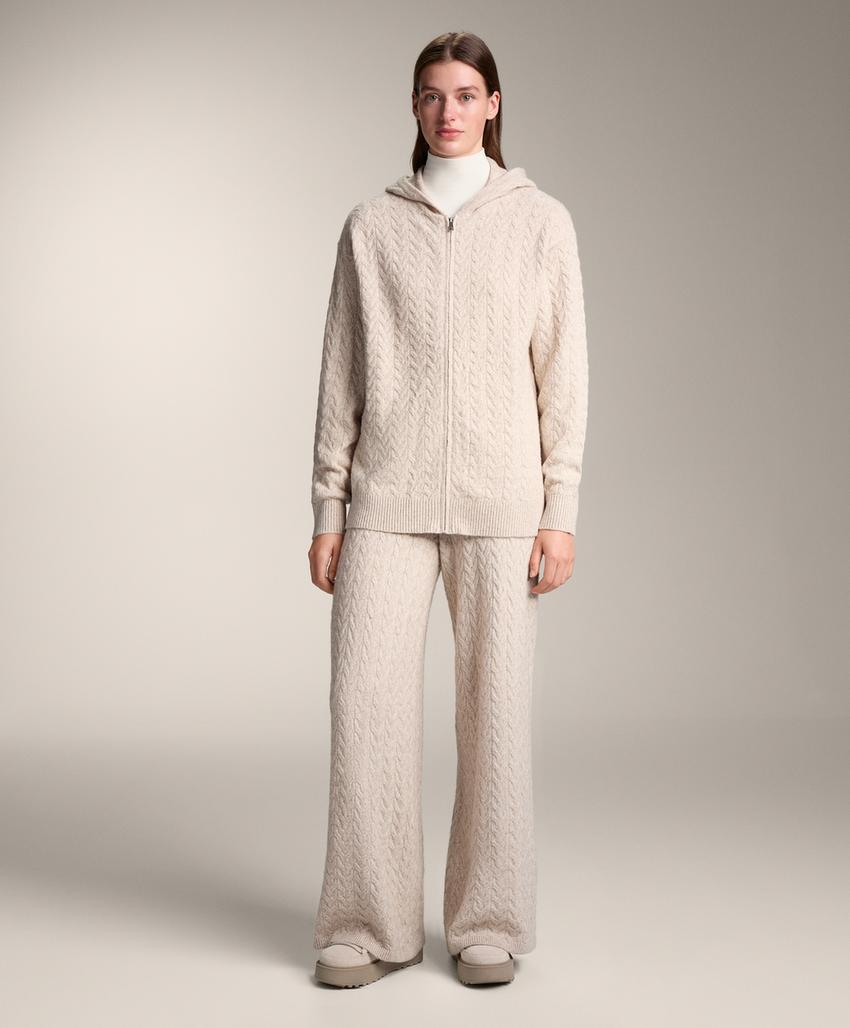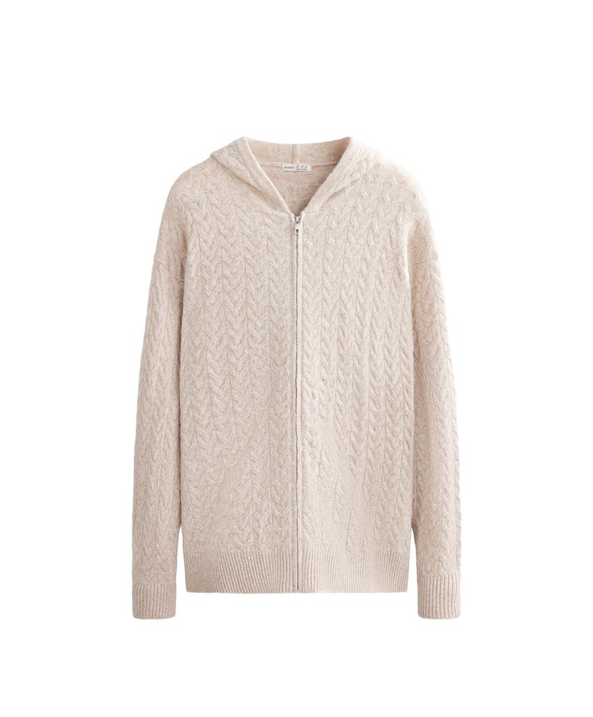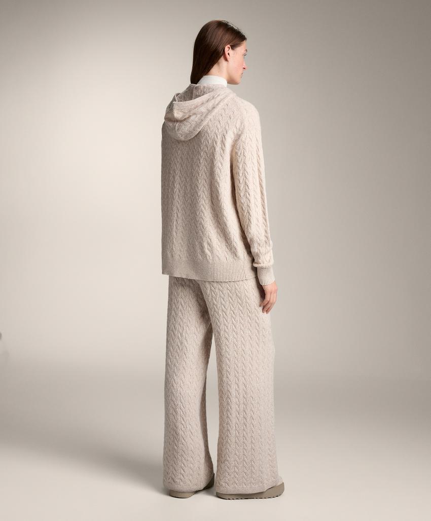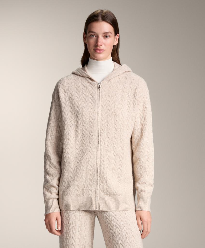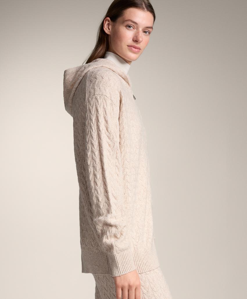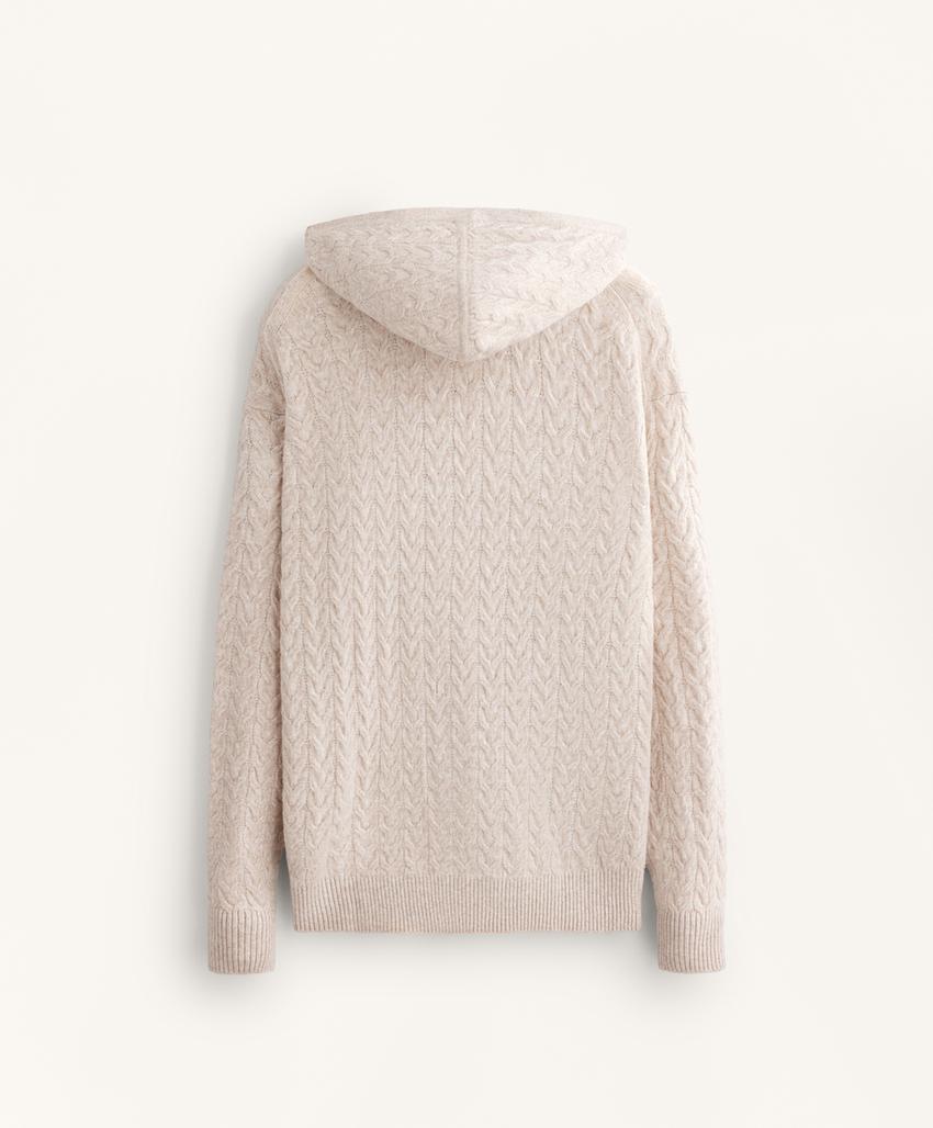 Long hooded cable knit jacket PALE MINK | 4419/773/771