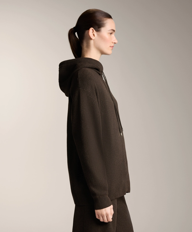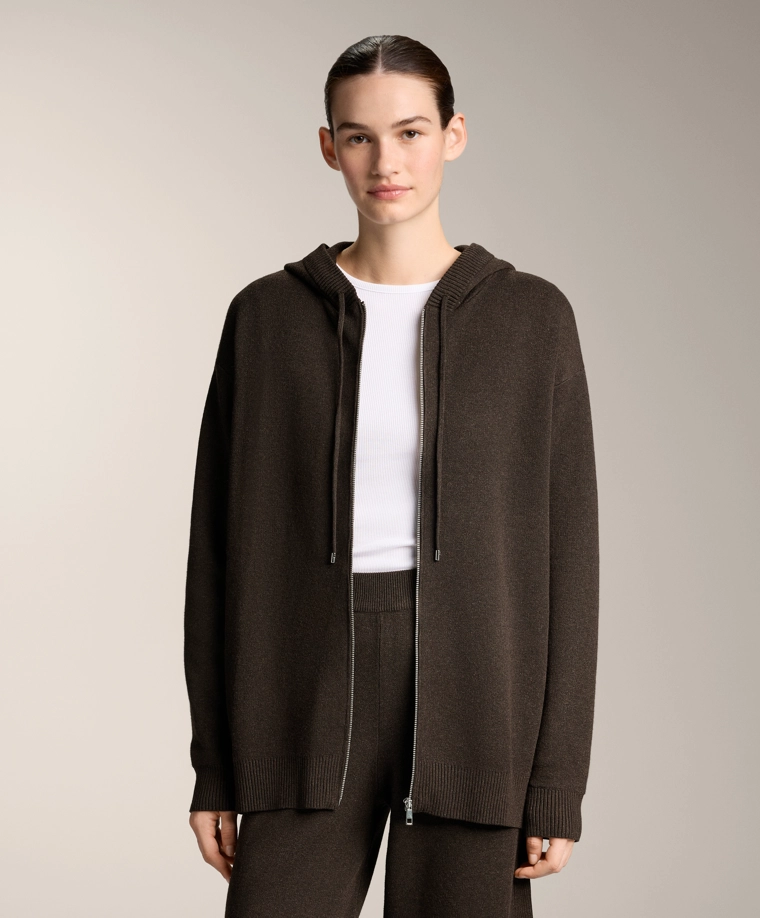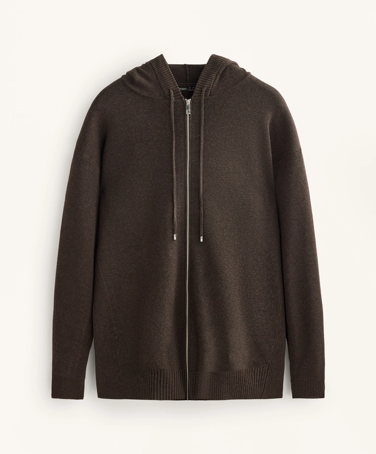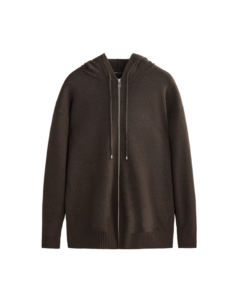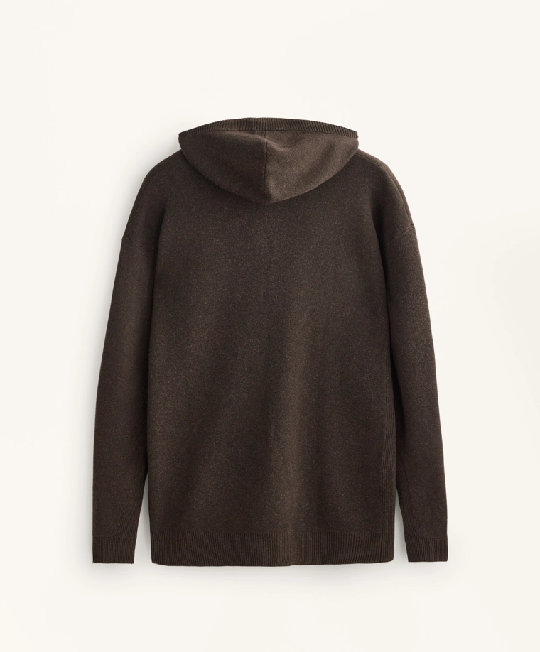 Long knit cardigan with hood BROWN|3897/880